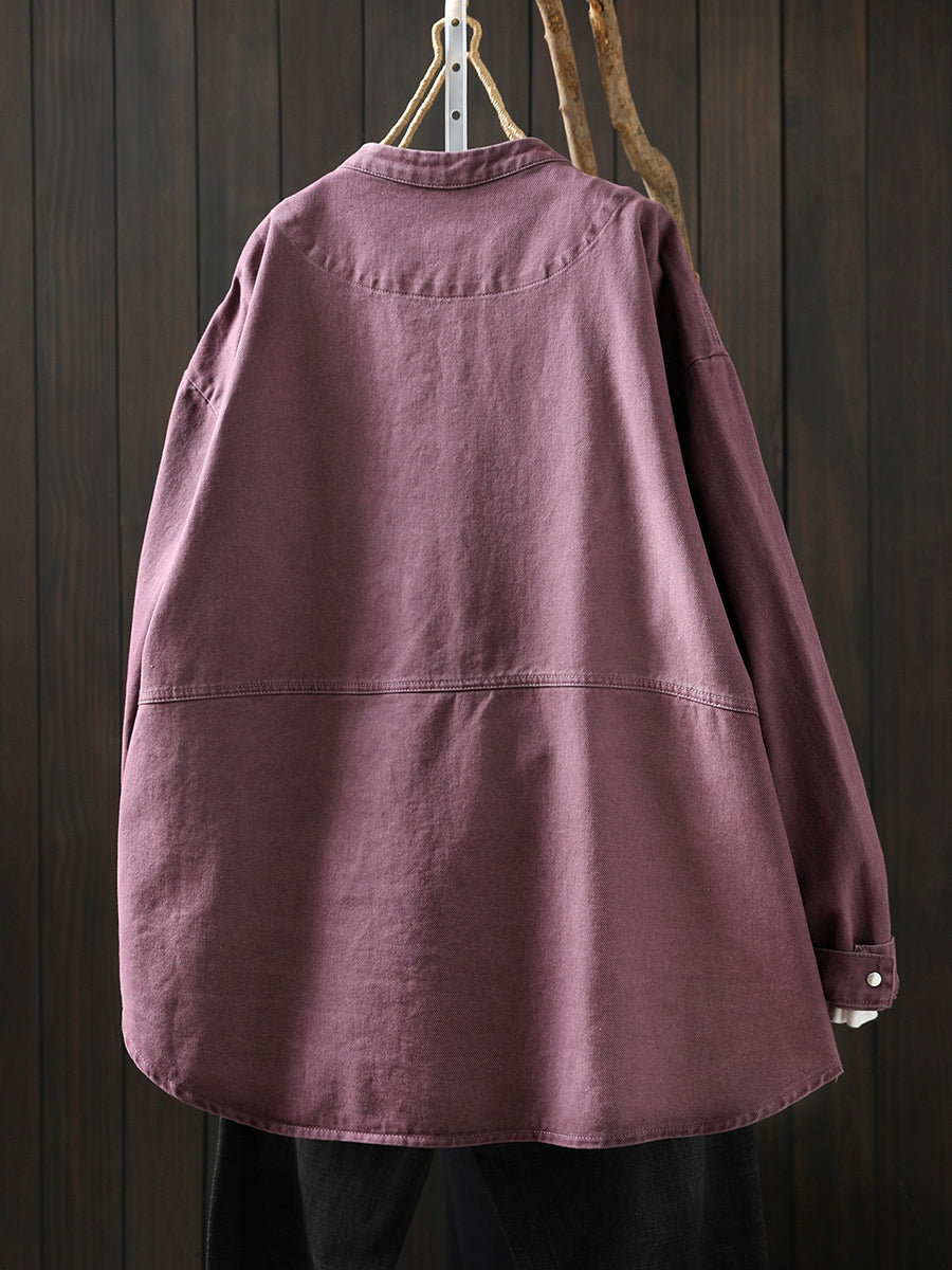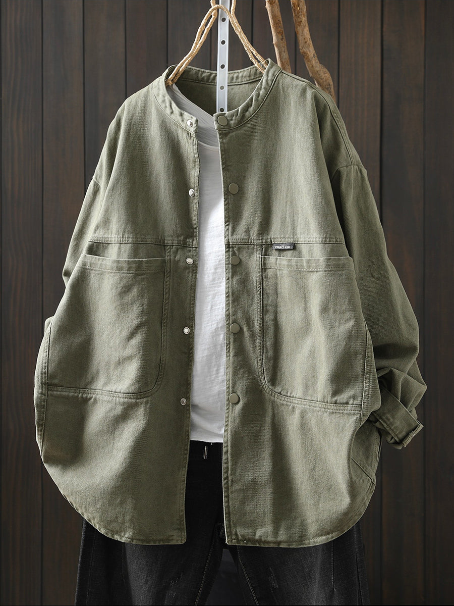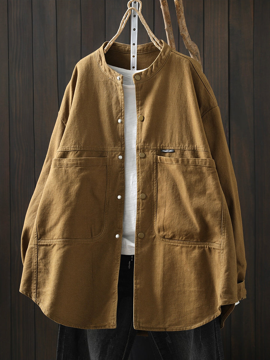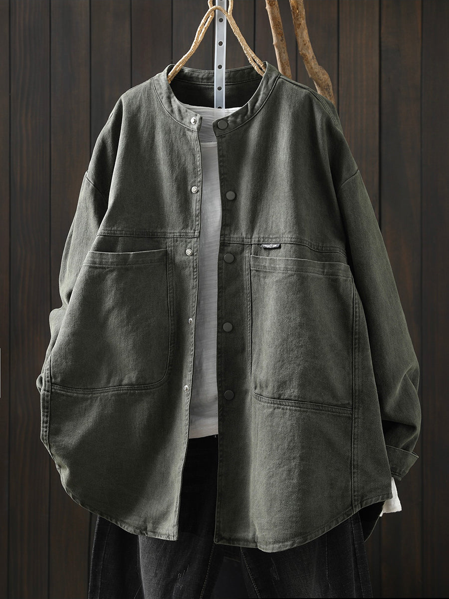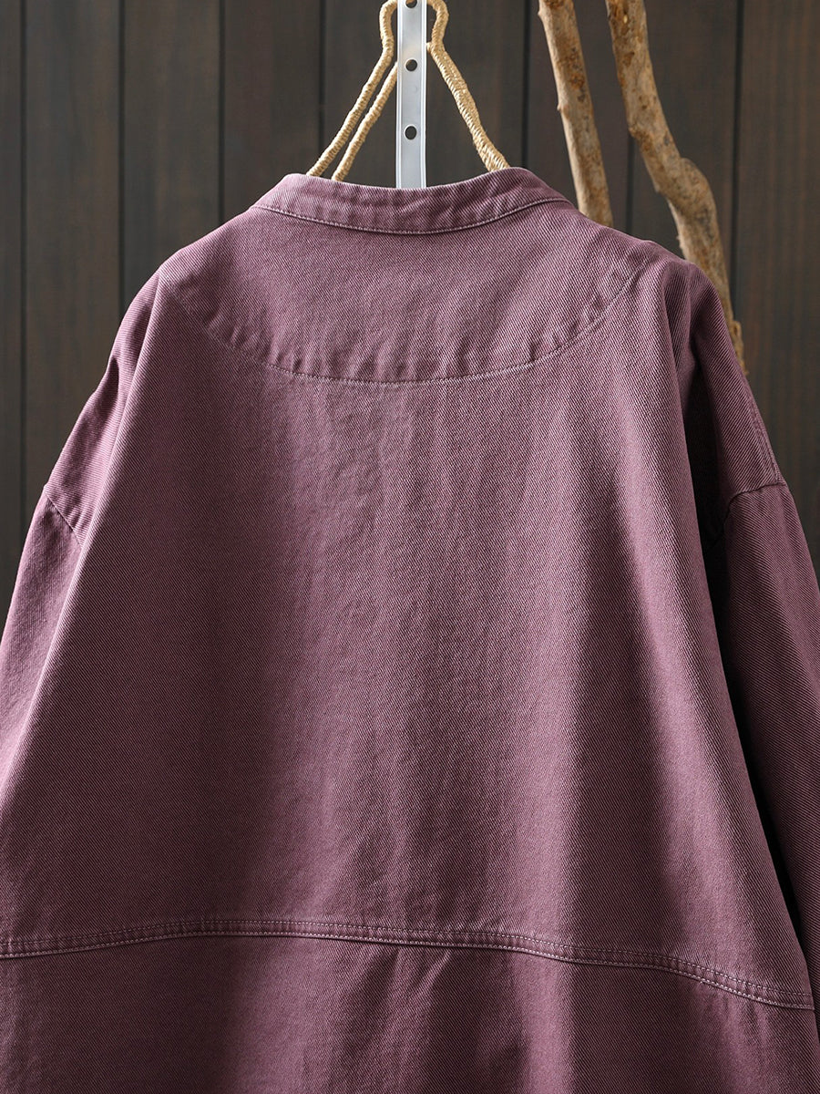 Veste en coton uni couleur unie, style rétro printemps pour femme