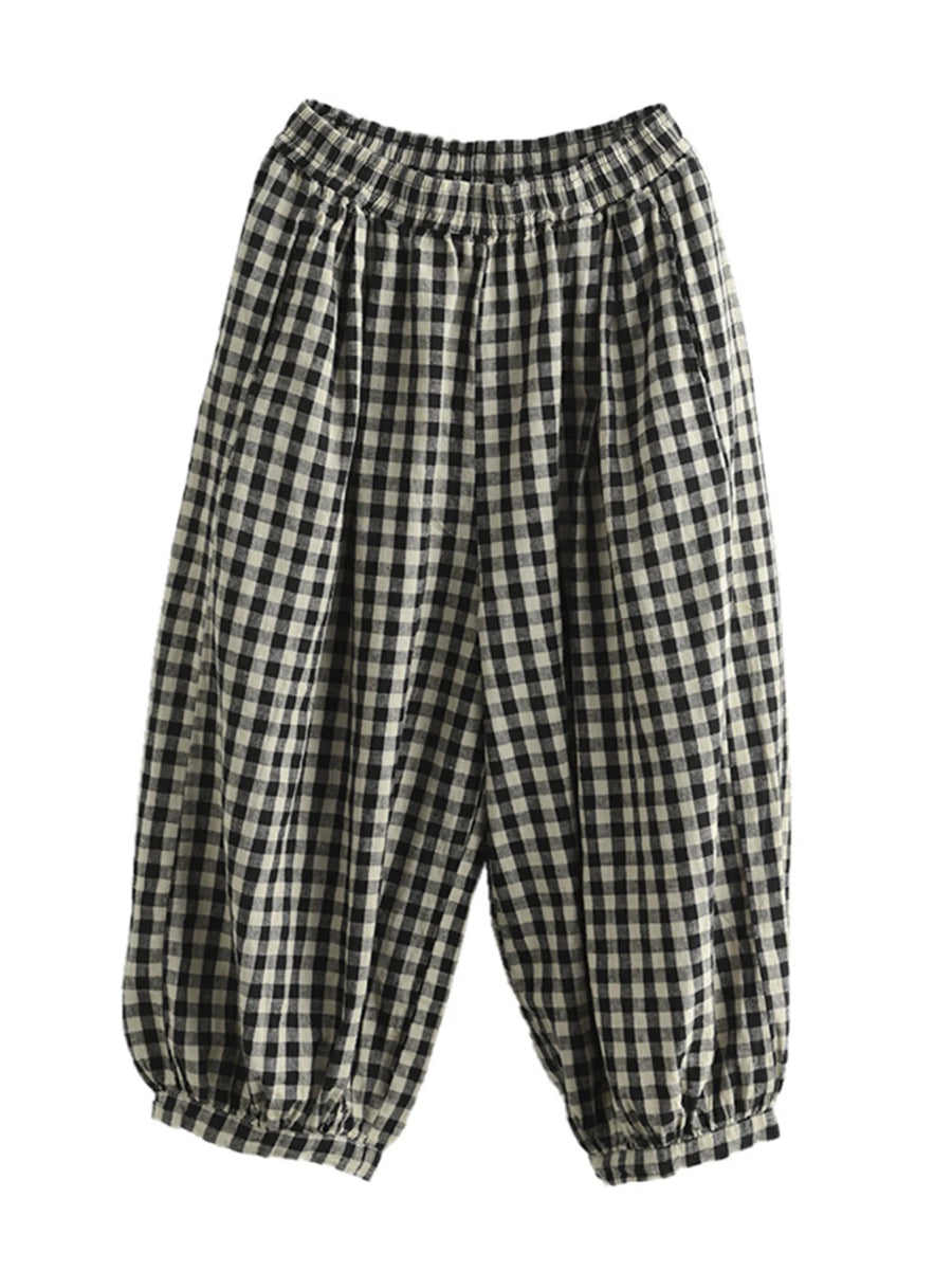 Bloomer à carreaux vintage décontracté pour femme, printemps, style bohème.