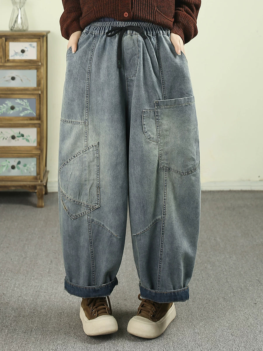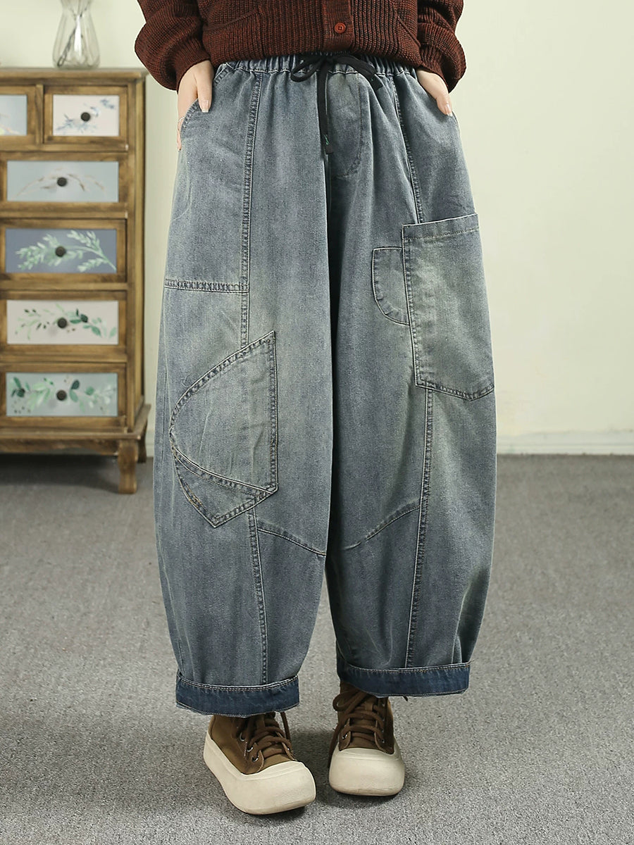 Pantalon harem vintage en denim à empiècements pour femme, printemps