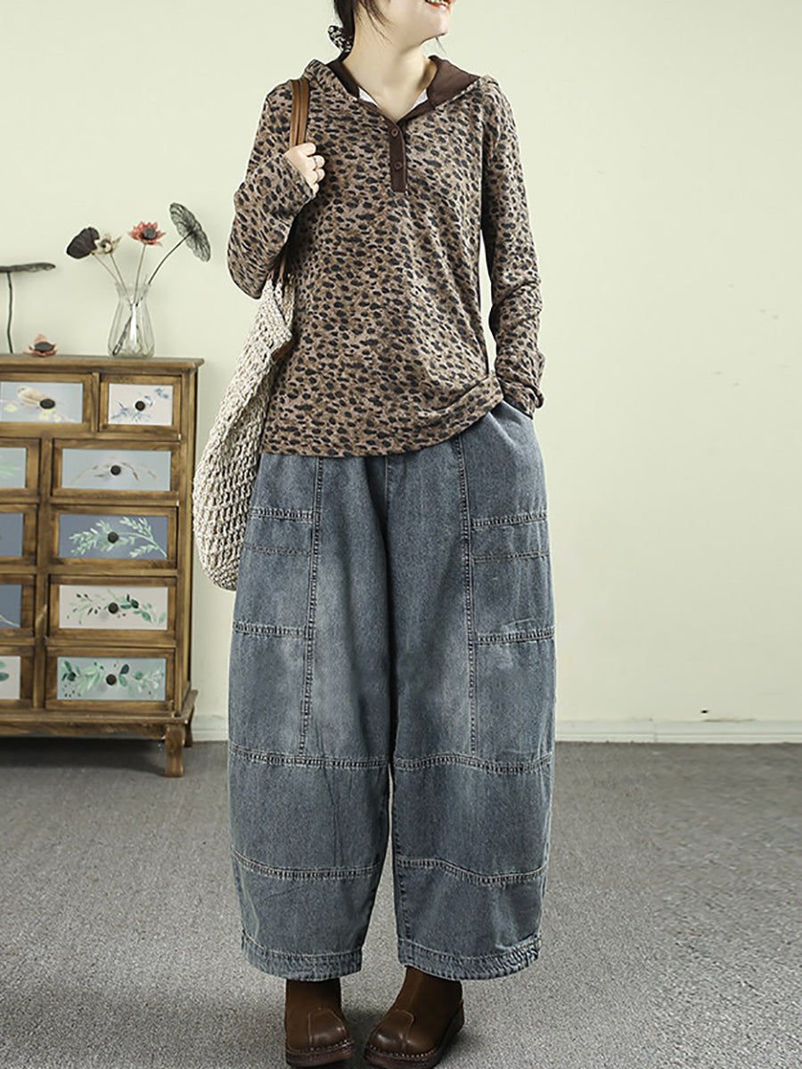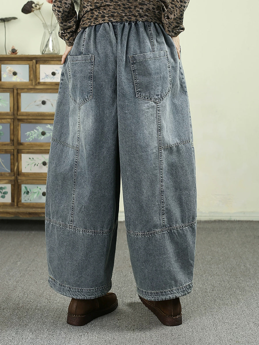 Pantalon large en denim vintage à empiècements pour femme, idéal pour le printemps