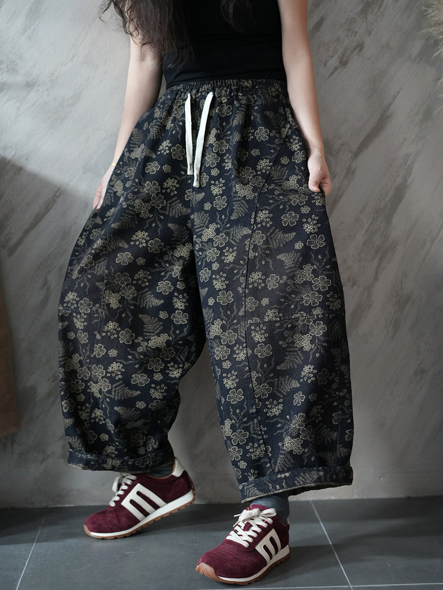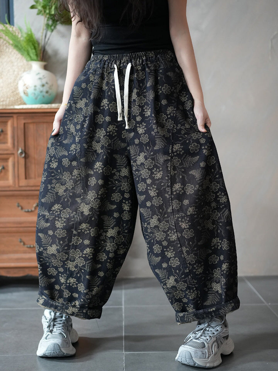 Pantalon harem en denim fleuri vintage printemps pour femme