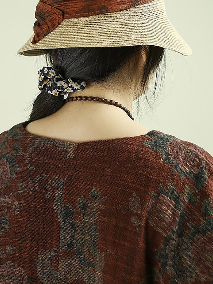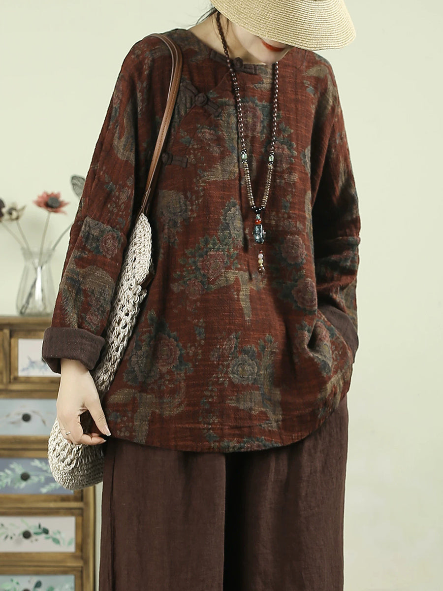 Chemisier vintage printanier à fleurs pour femme, col rond, 100 % lin