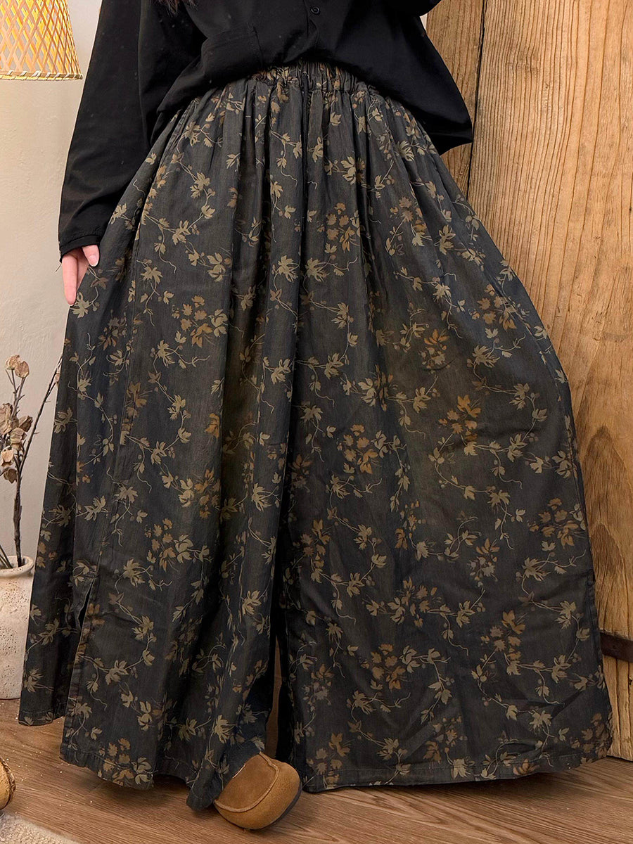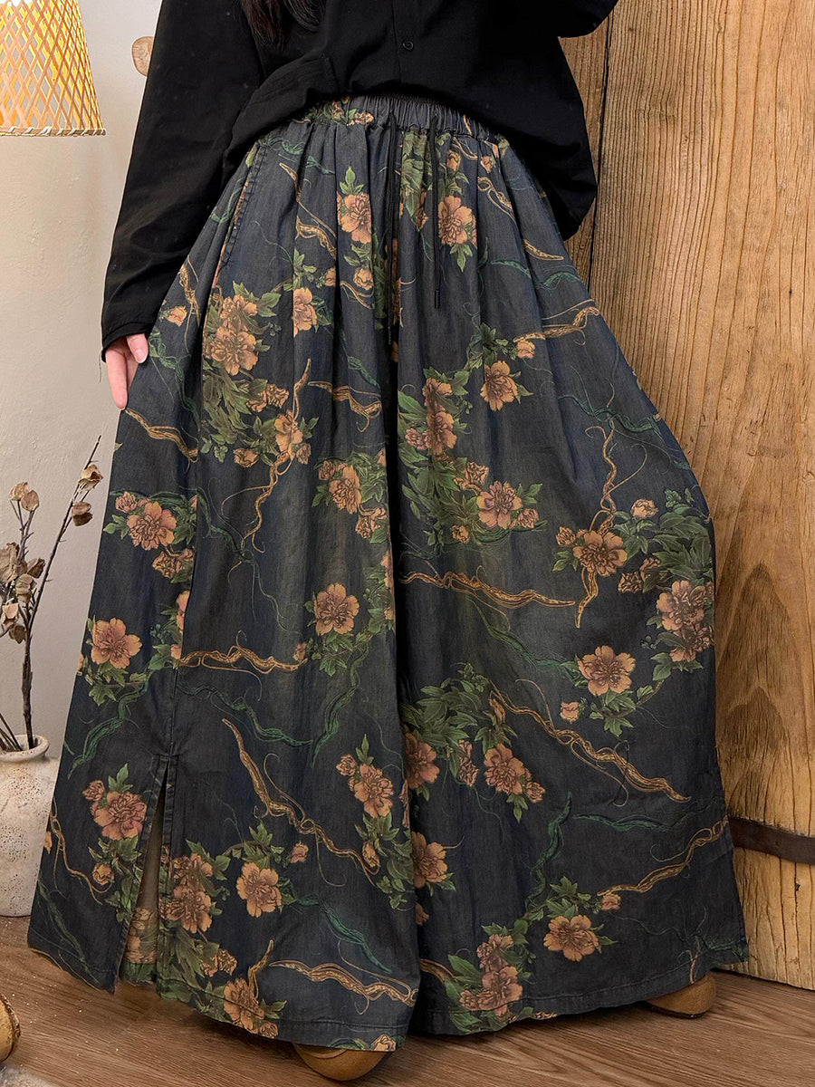 Pantalon large fleuri vintage printemps pour femme