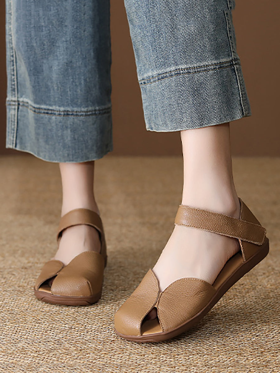 Sandales d'été décontractées pour femmes en cuir véritable tressé