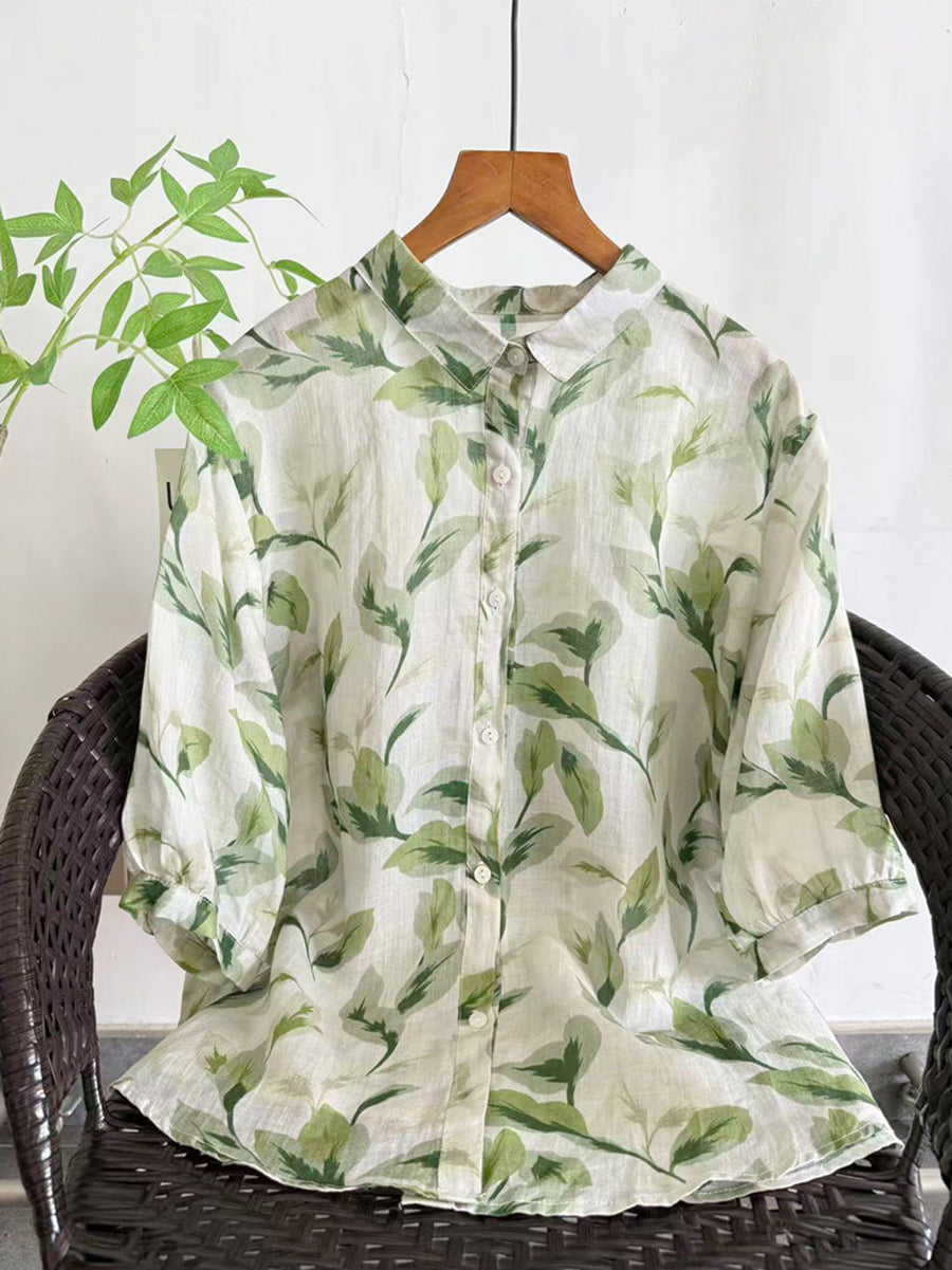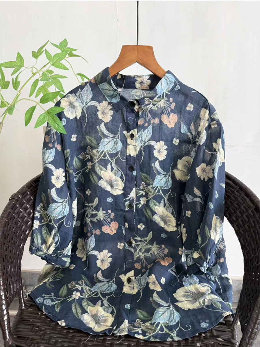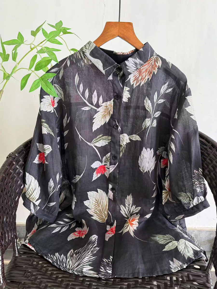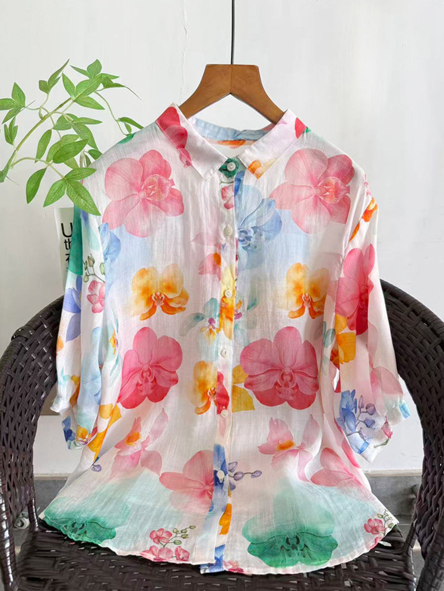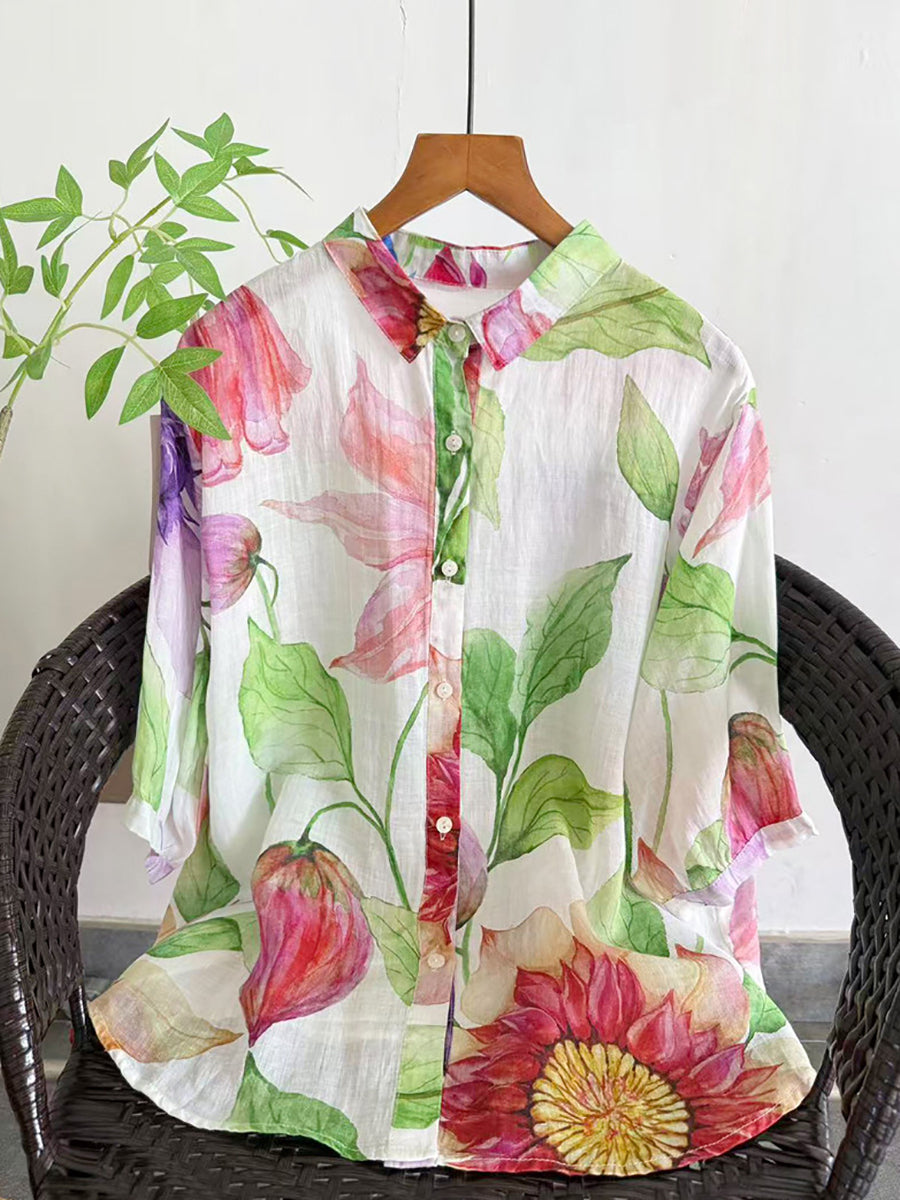 Blouse d'été à fleurs artistiques pour femme, 100 % ramie
