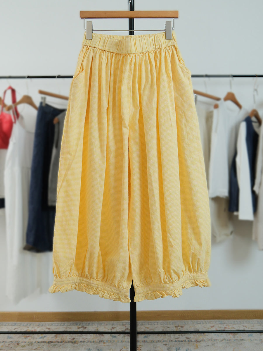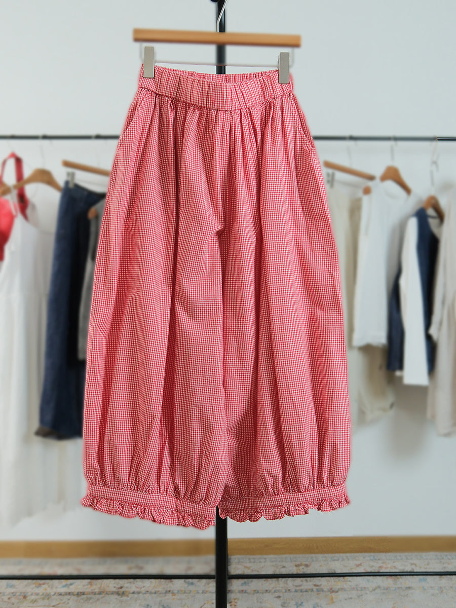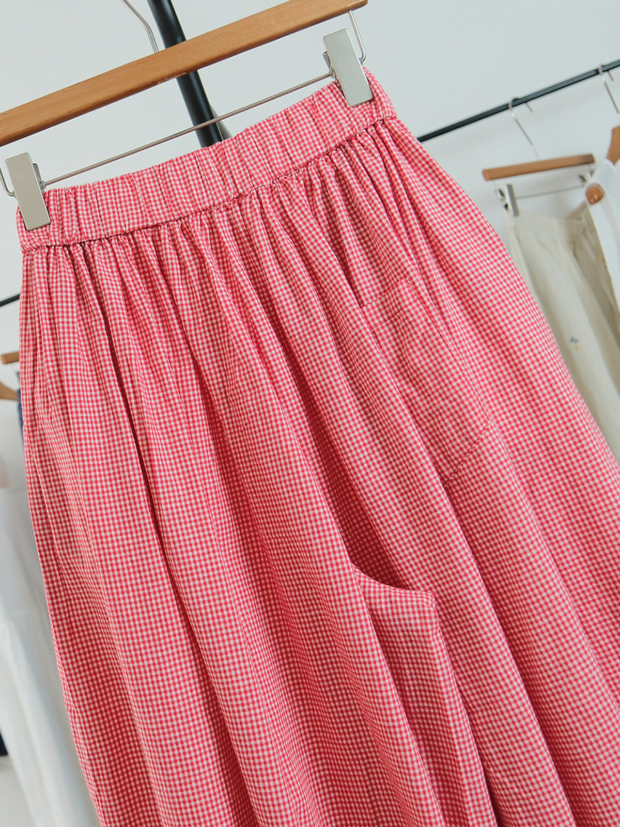 Pantalon large à carreaux artistiques d'été pour femme