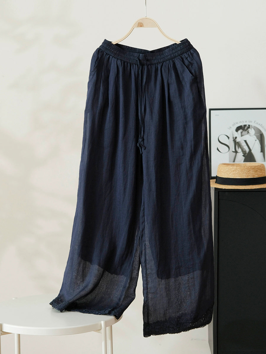 Pantalon large d'été pour femme, couleur pure, 100 % ramie