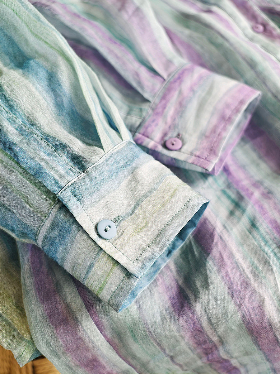 Blouse d'été à rayures artistiques pour femme, 100 % ramie