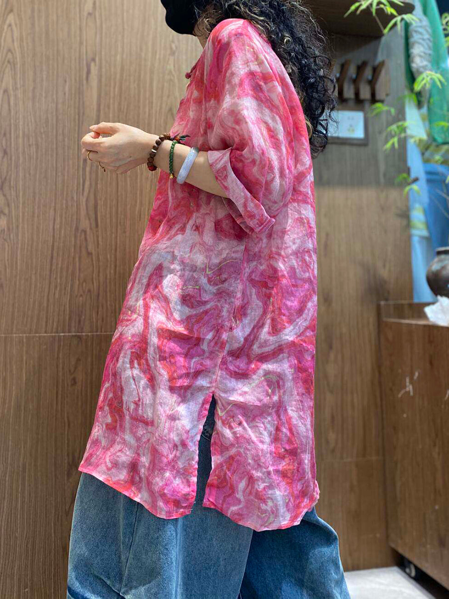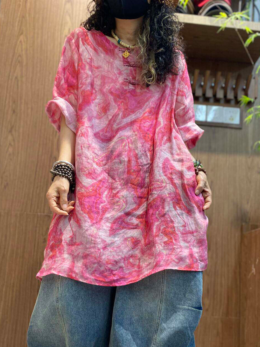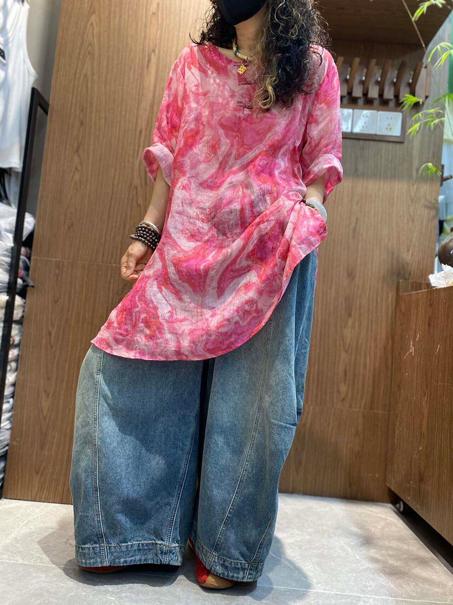 Blouse d'été artistique en ramie tie-dye pour femme