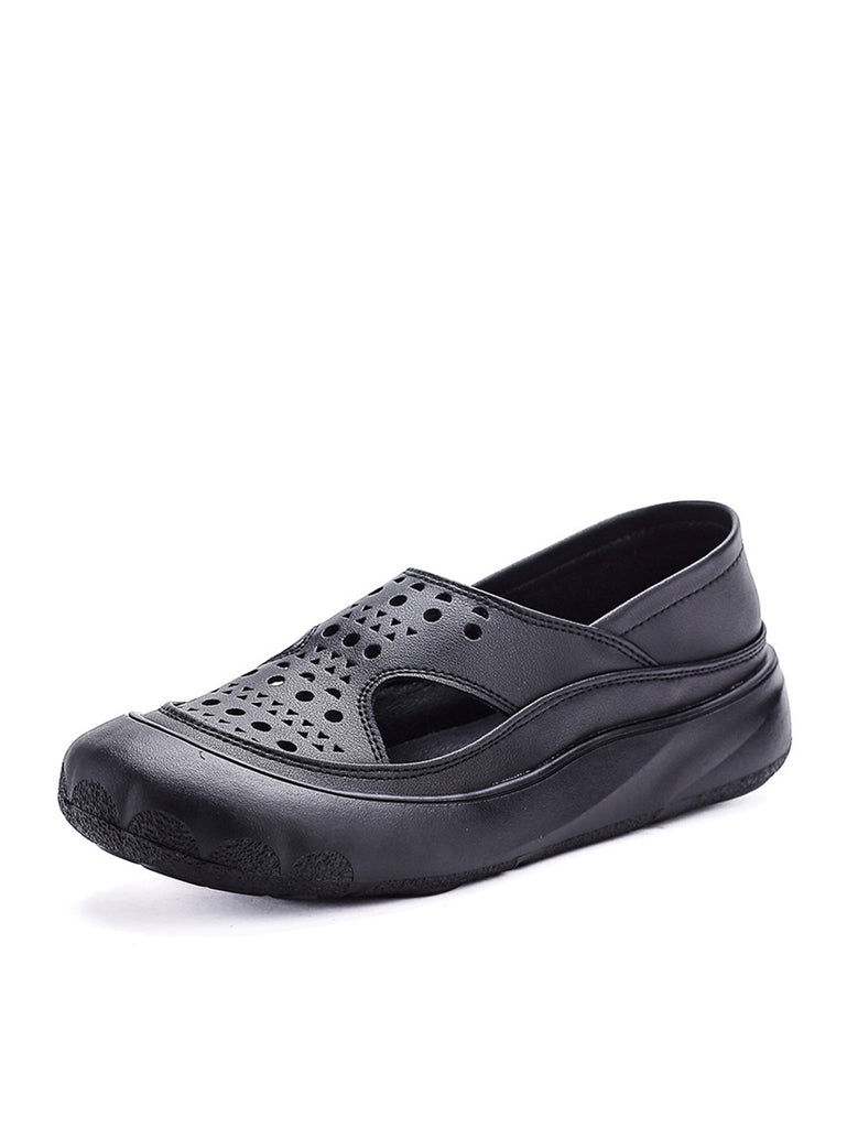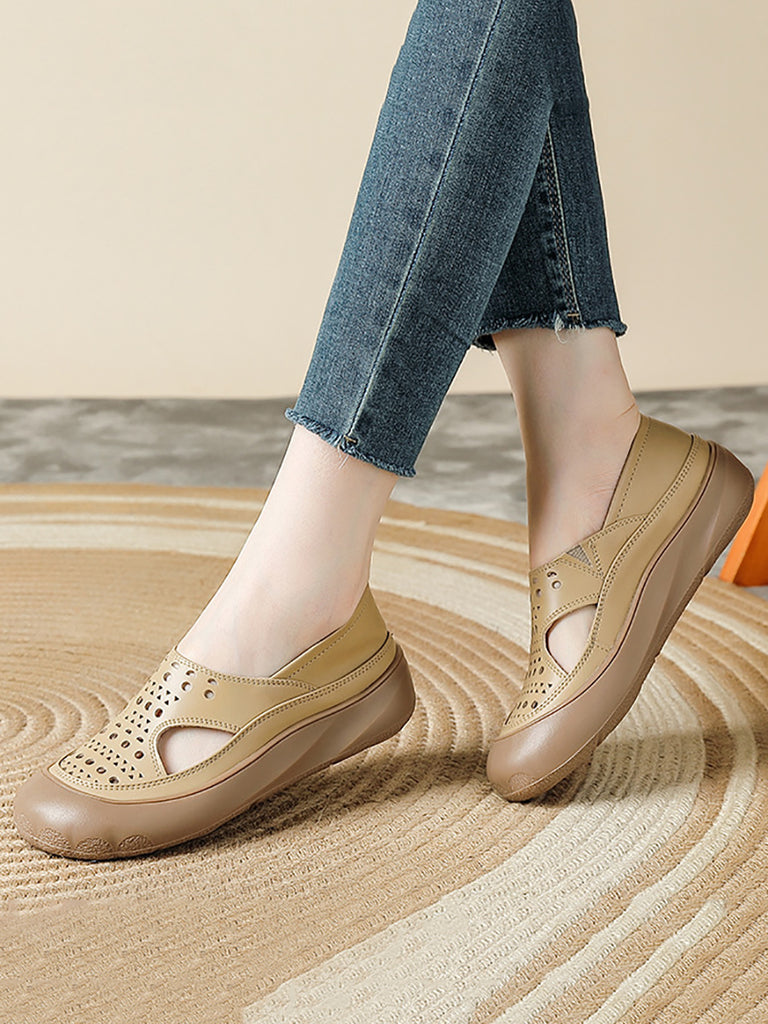 Sandales plates décontractées d'été en cuir véritable pour femmes