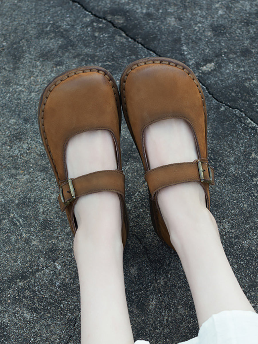 Chaussures plates décontractées d'été pour femmes en cuir véritable