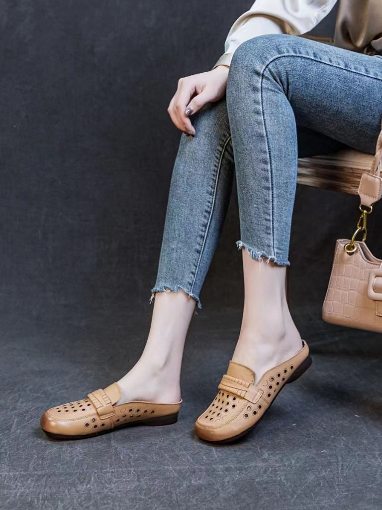 Chaussures d'été décontractées en cuir véritable ajourées pour femmes
