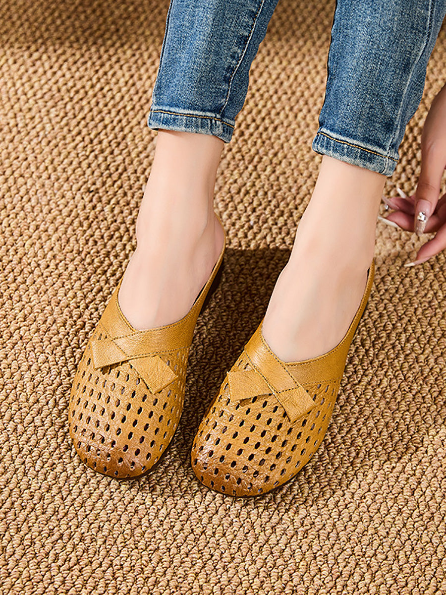 Chaussons d'été décontractés en cuir véritable à talons bas pour femmes