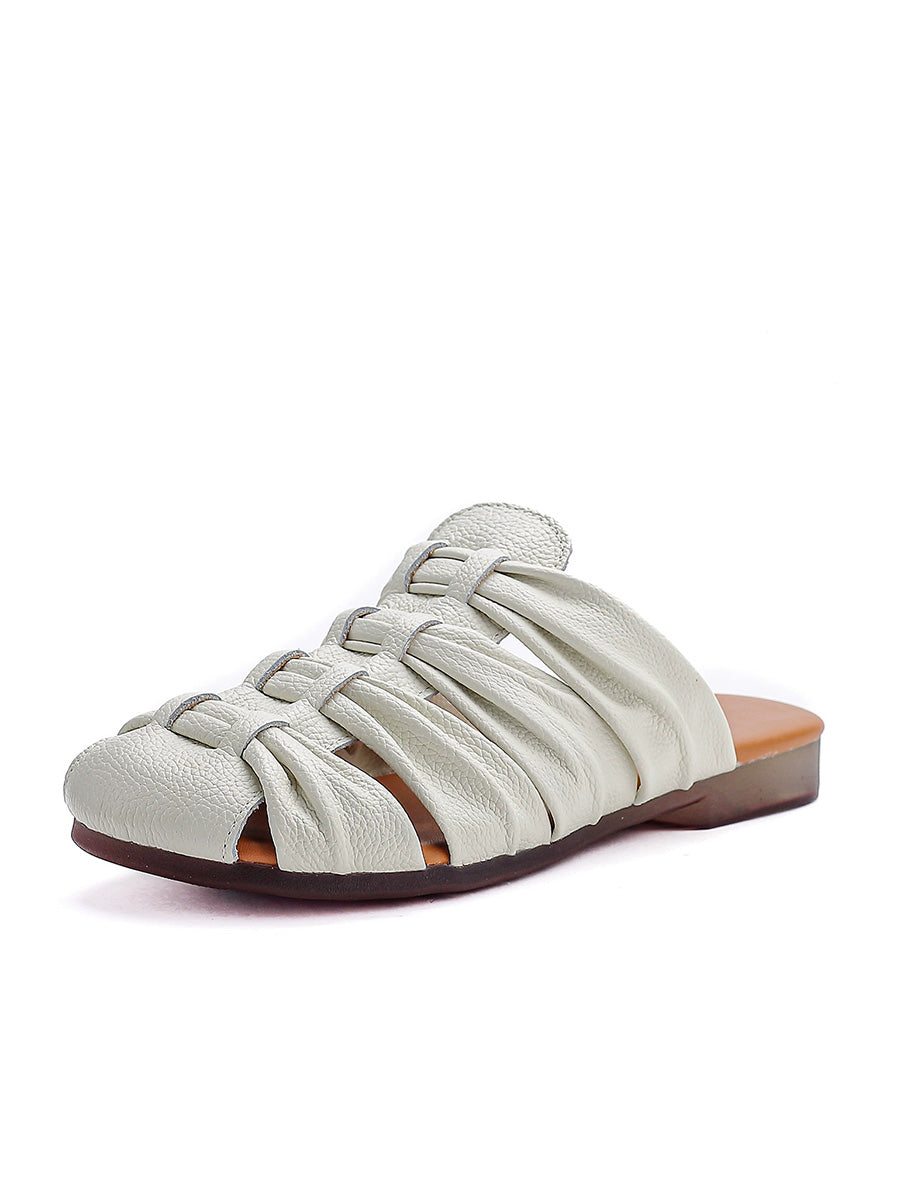 Pantoufles d'été décontractées pour femmes en cuir véritable