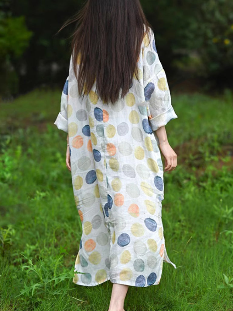 Robe d'été ethnique à pois colorés 100 % ramie pour femme