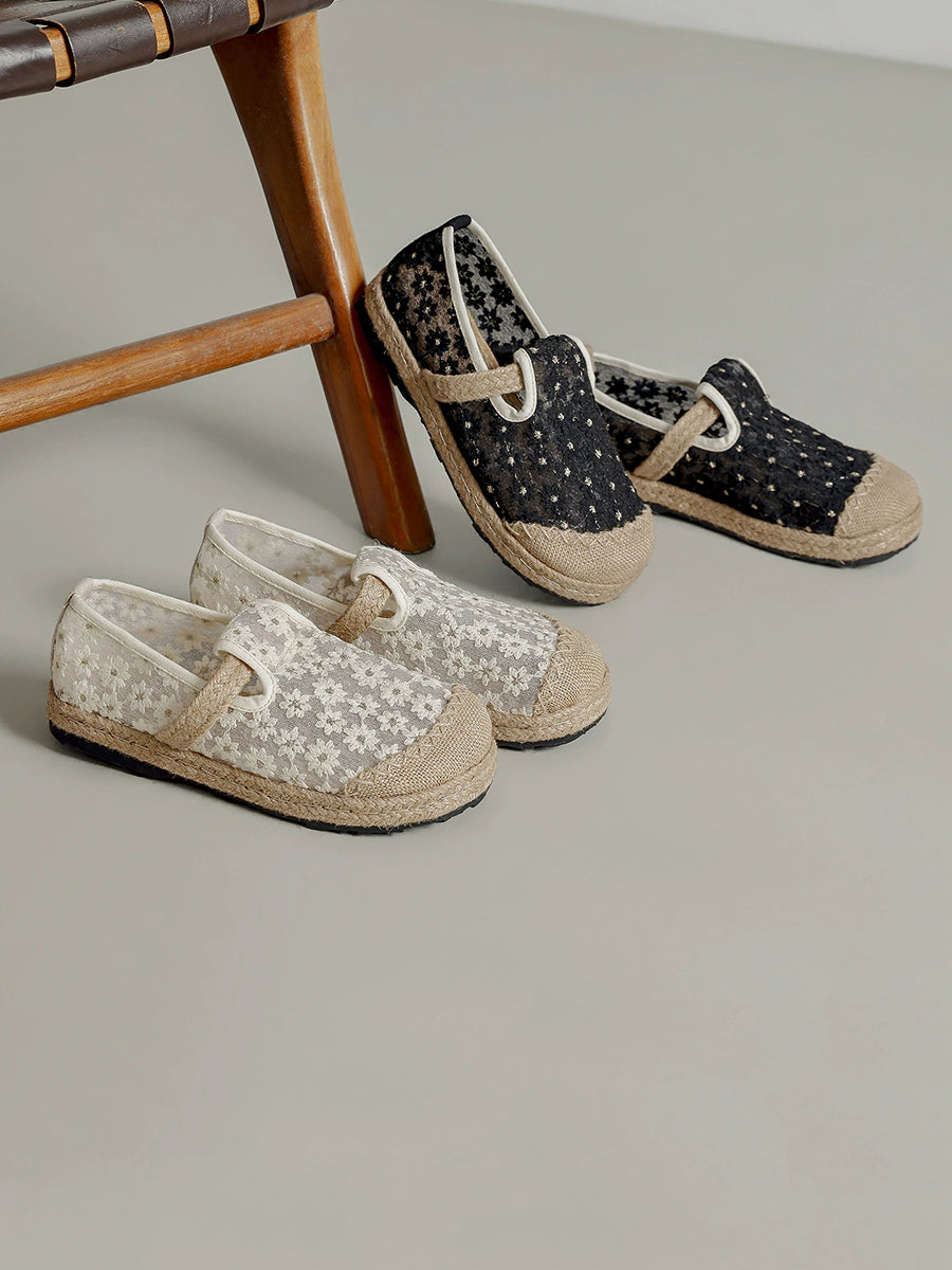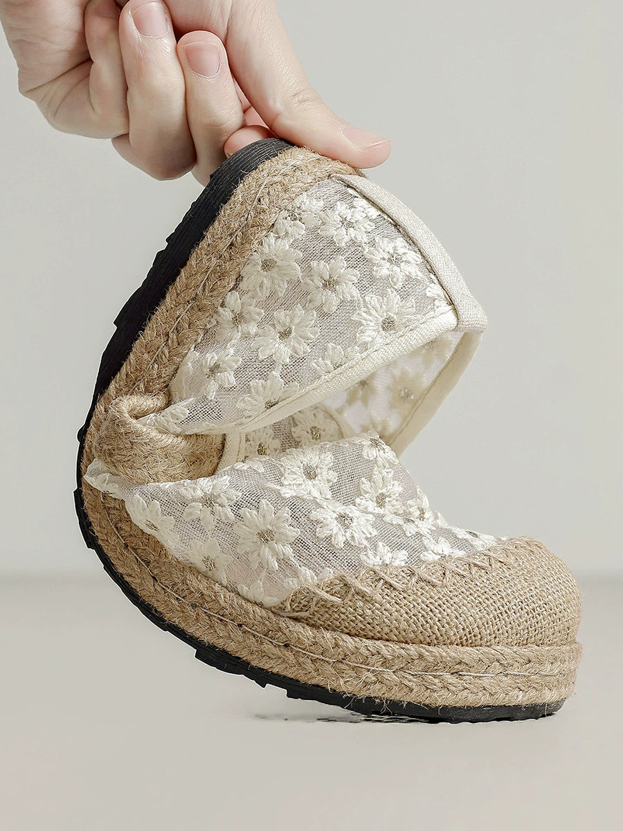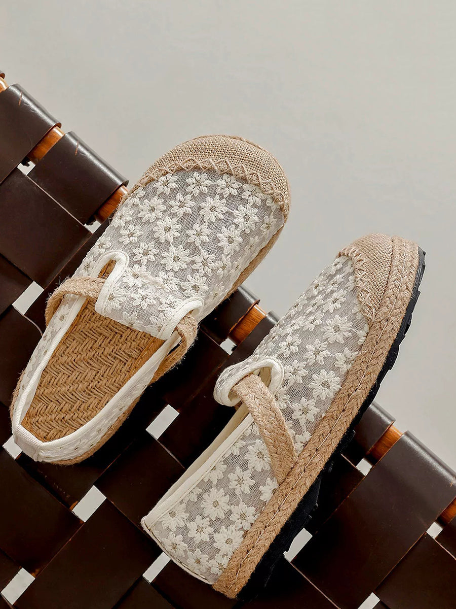 Chaussures plates d'été pour femmes, broderie ethnique florale