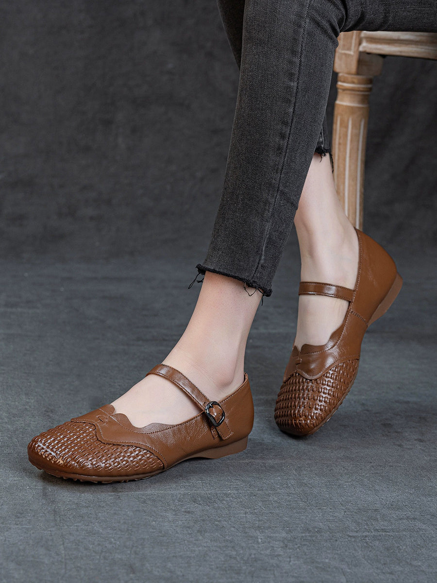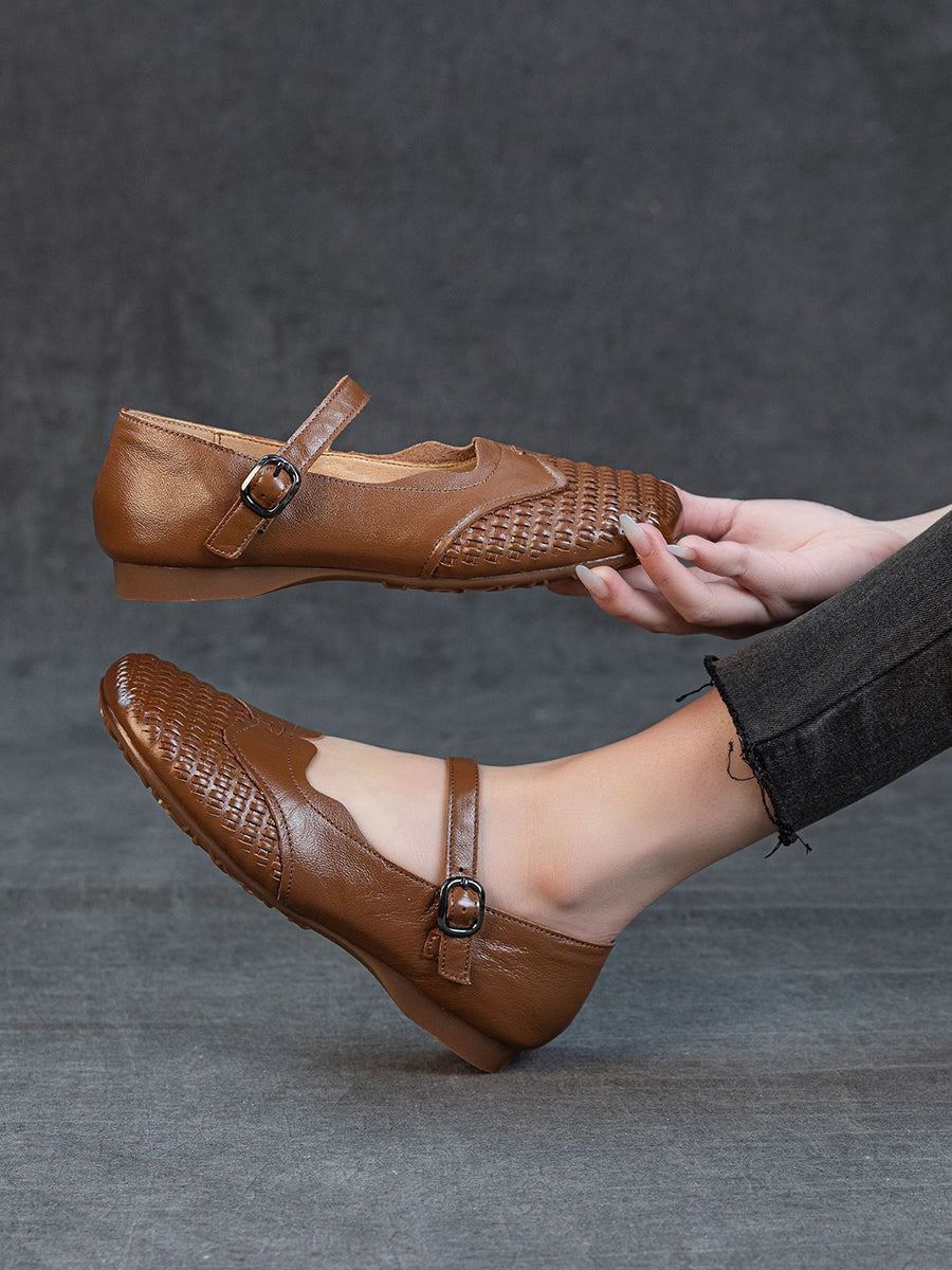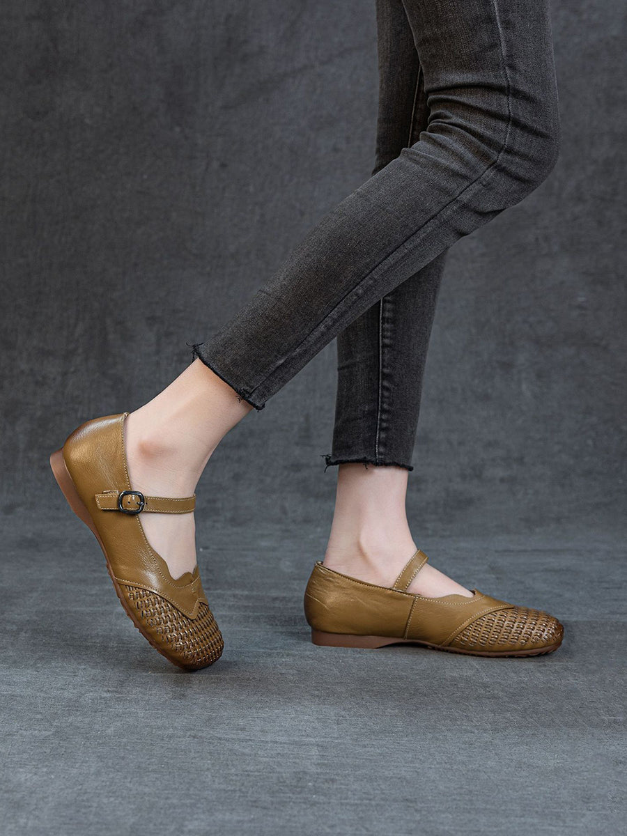 Chaussures plates d'été pour femmes en cuir véritable