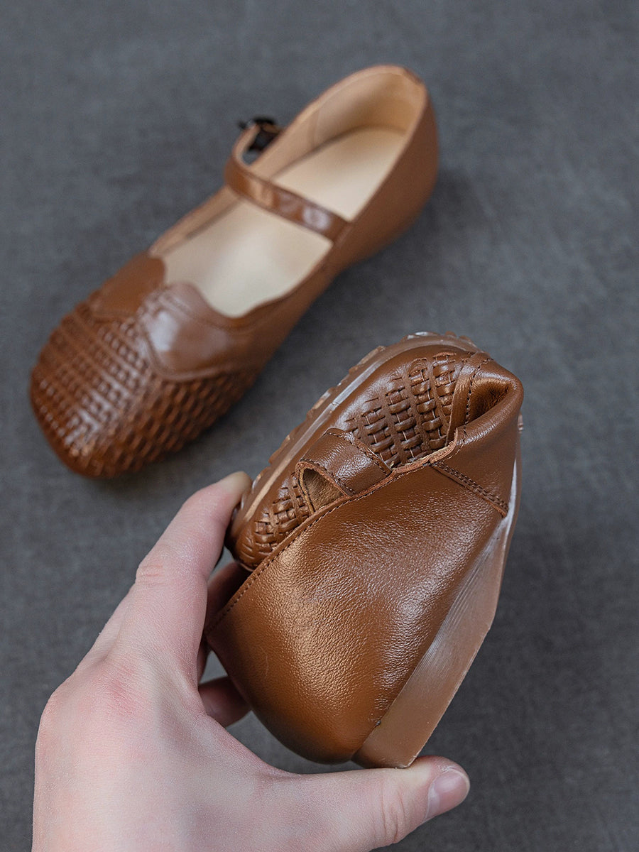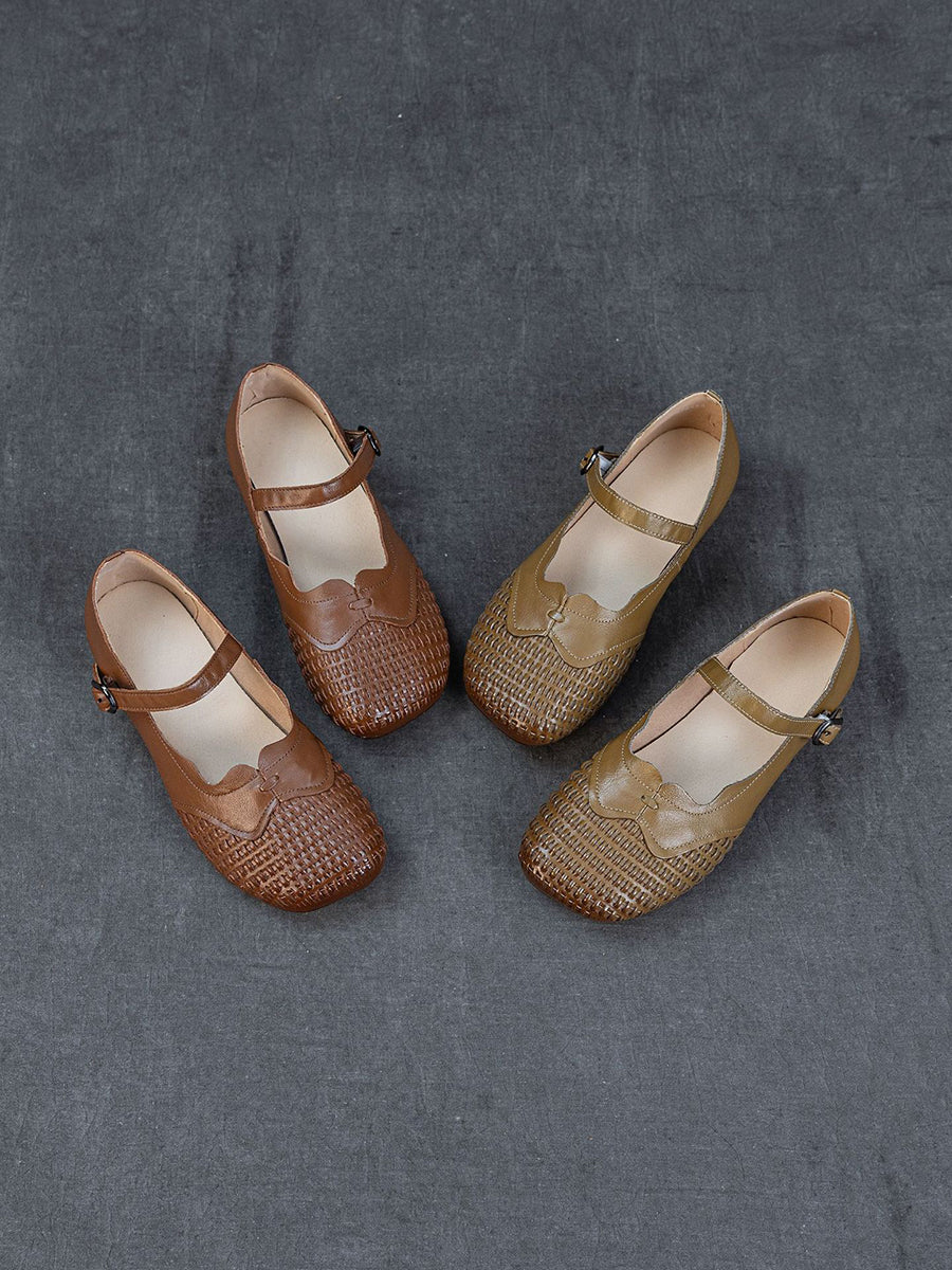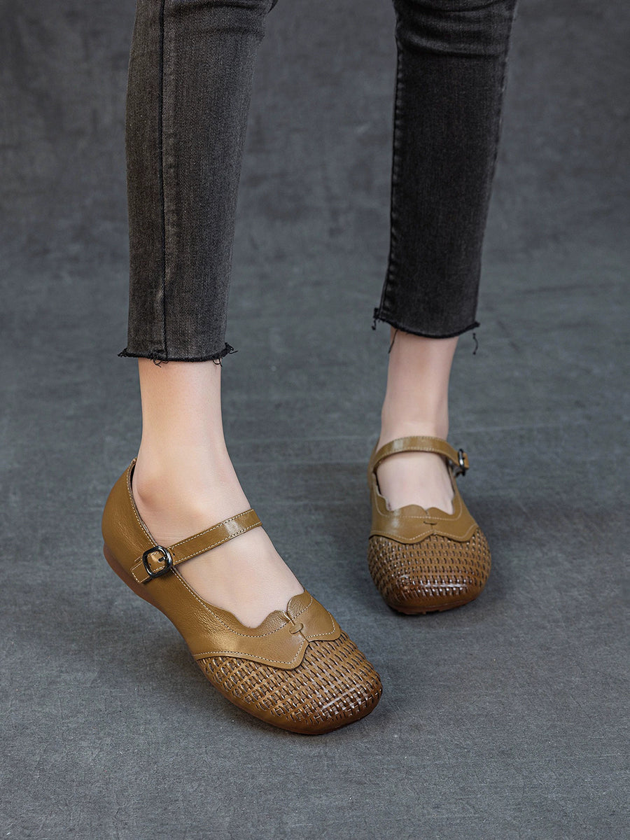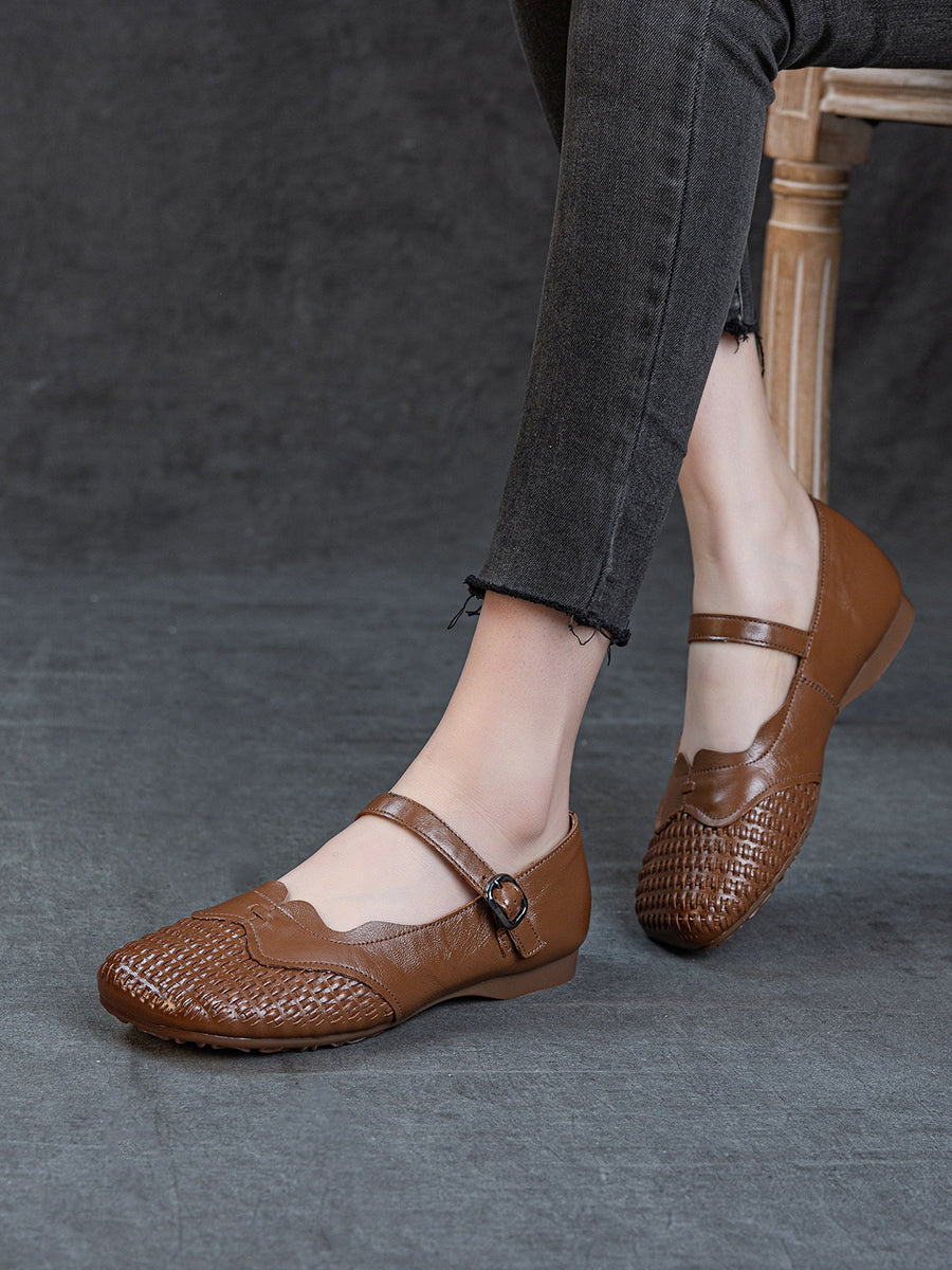 Chaussures plates d'été pour femmes en cuir véritable