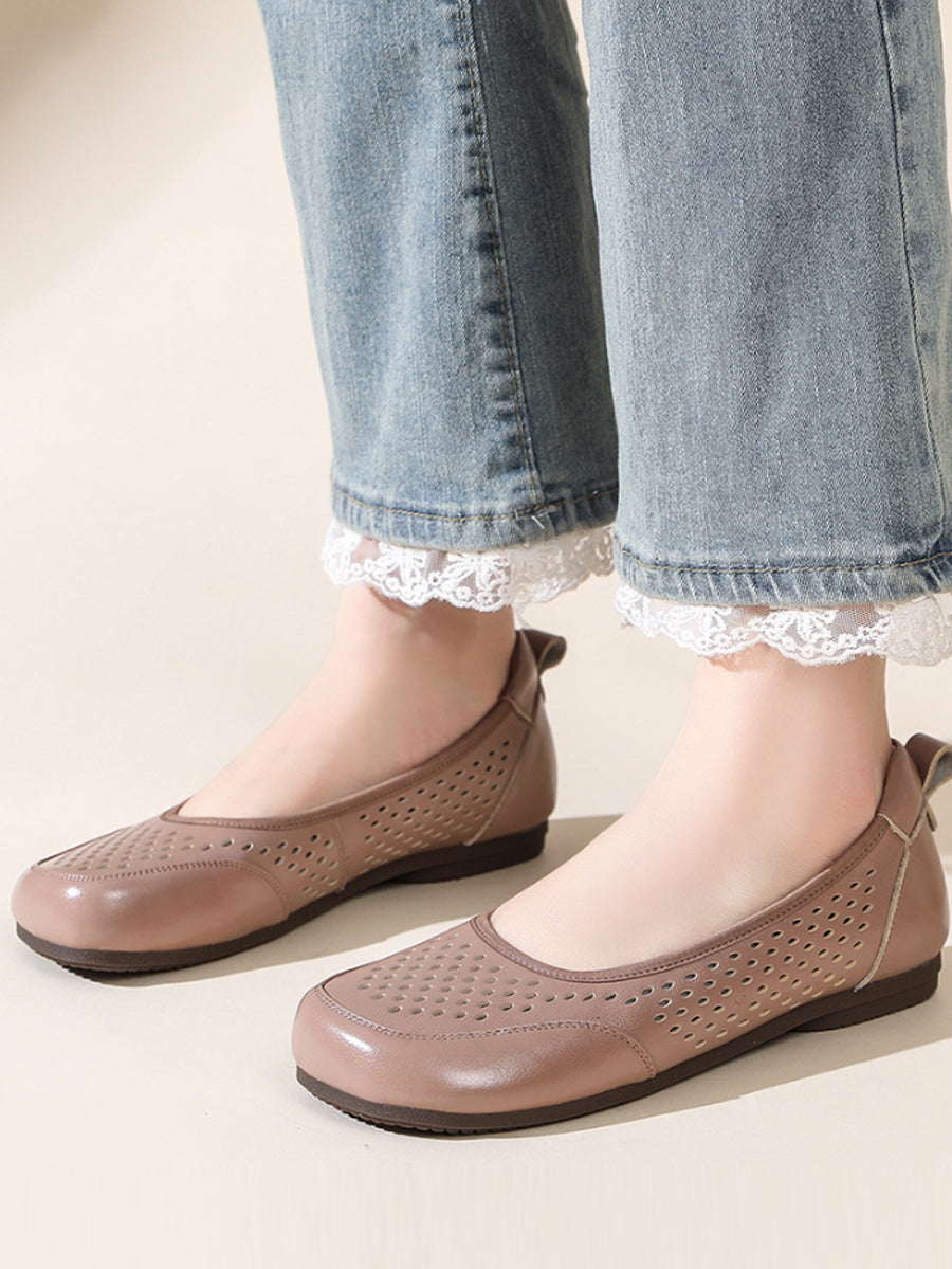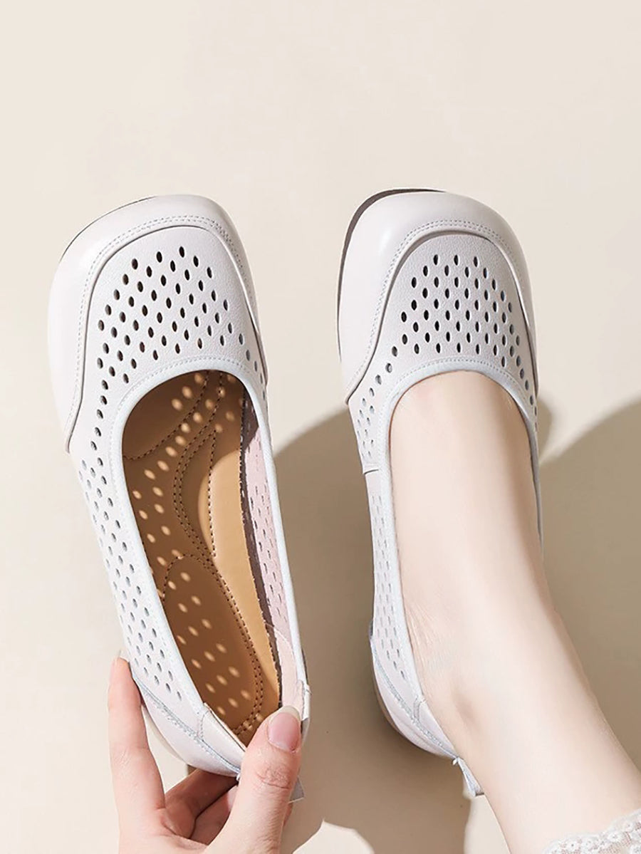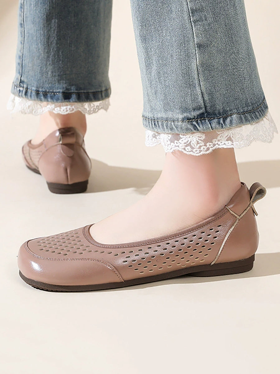 Sandales d'été pour femmes en cuir véritable ajouré