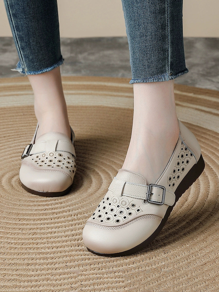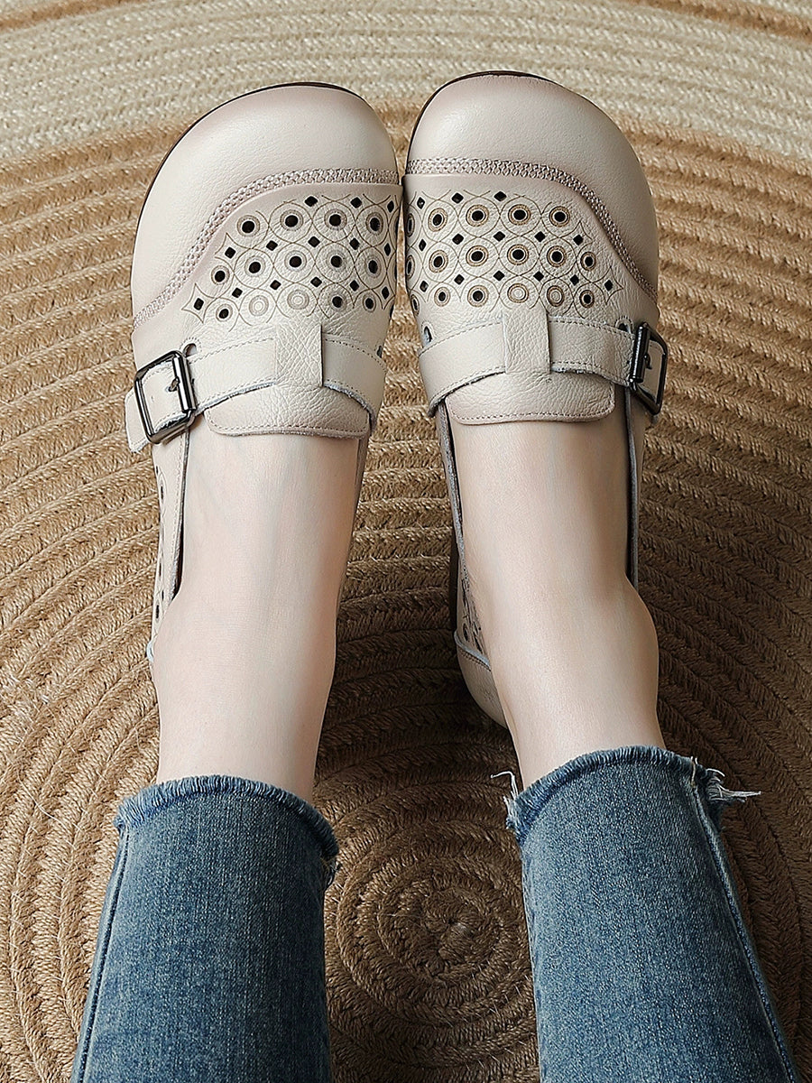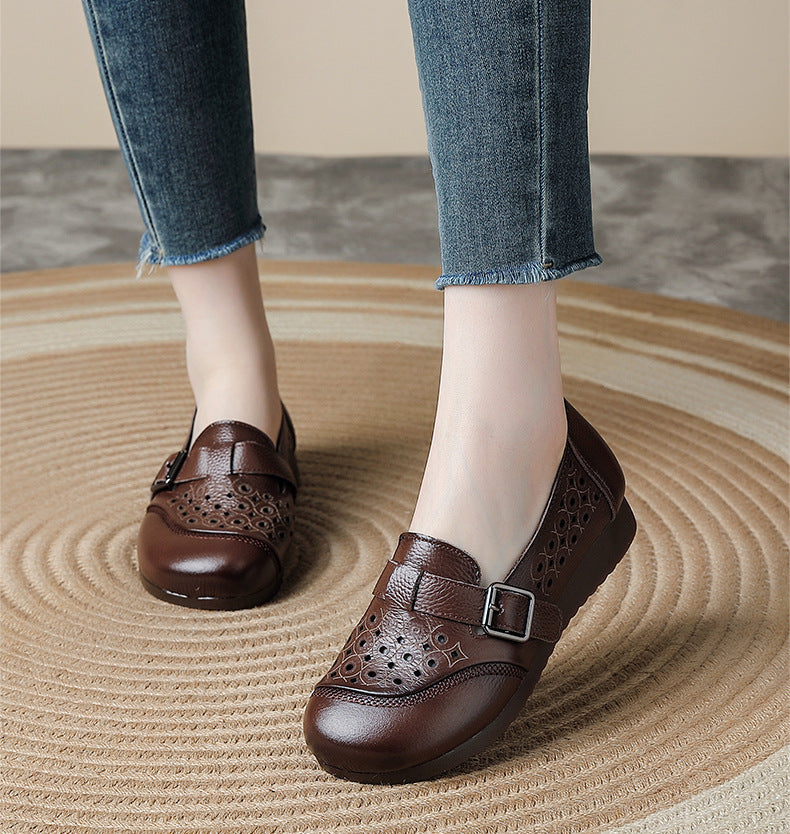 Chaussures d'été pour femmes en cuir véritable à petits talons