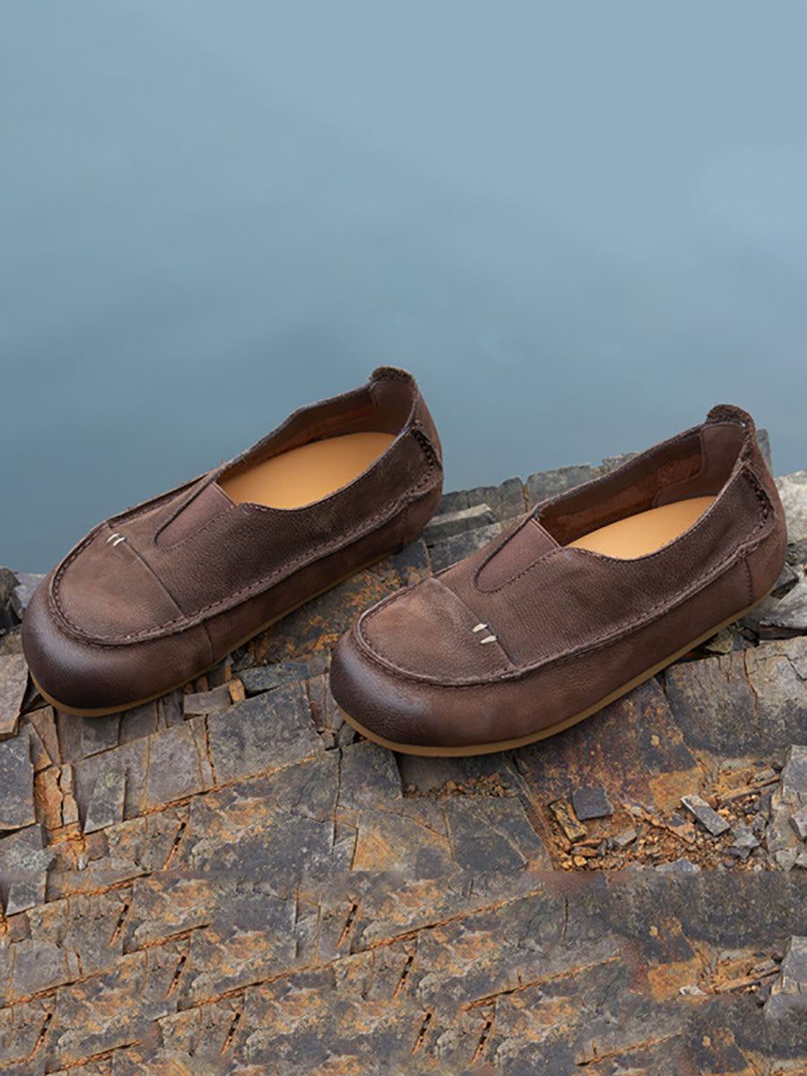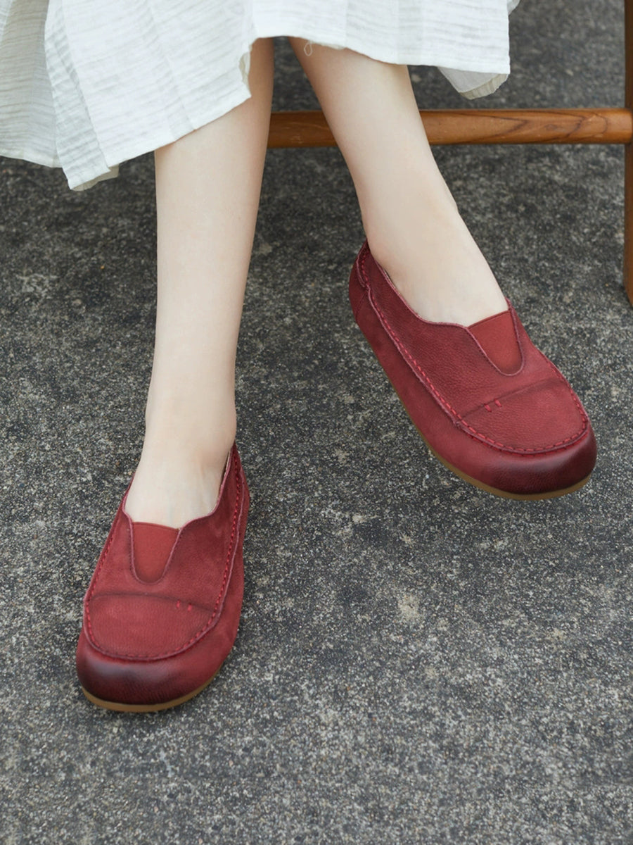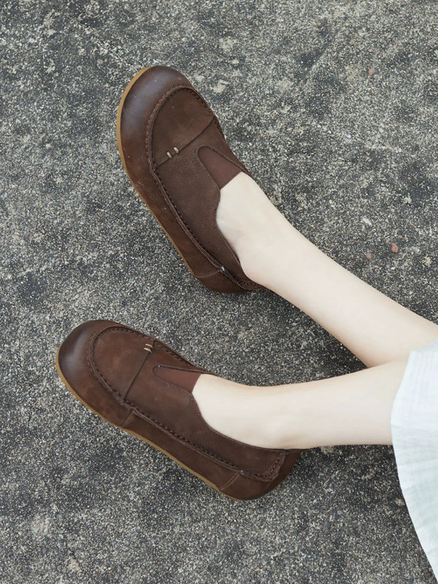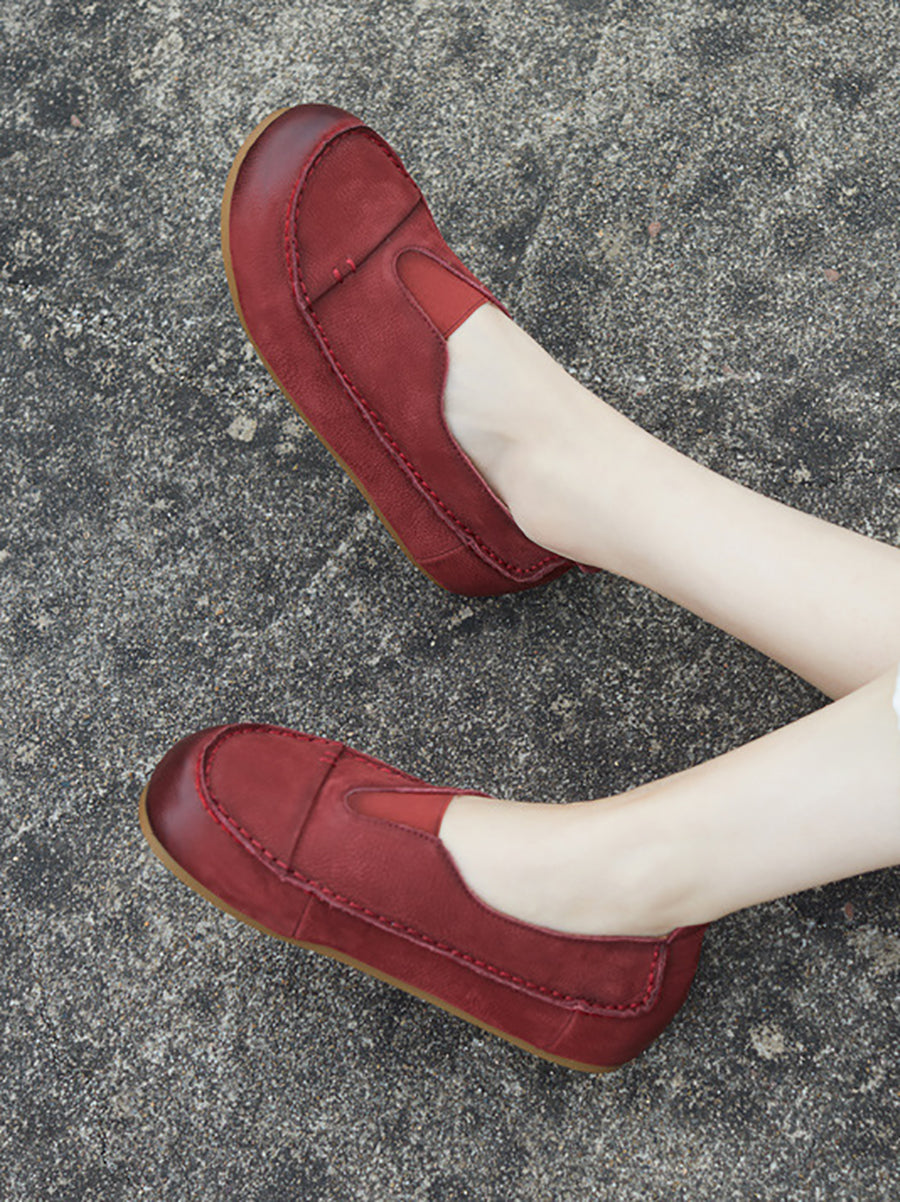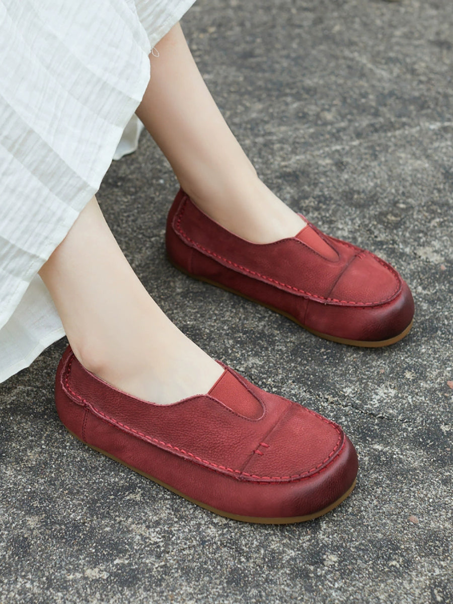 Chaussures plates d'été pour femmes en cuir véritable tressé