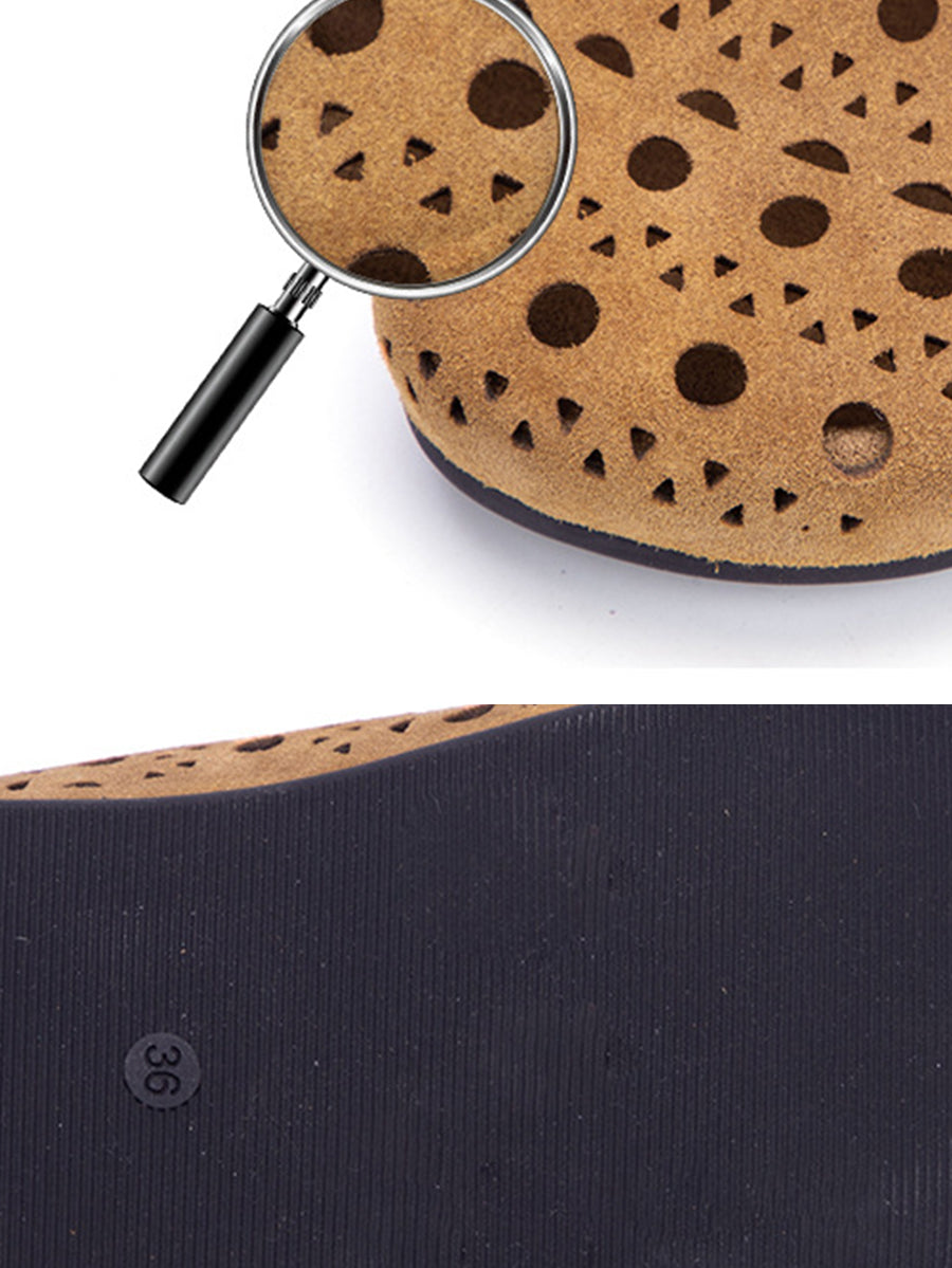 Pantoufles d'été ajourées en cuir véritable pour femmes