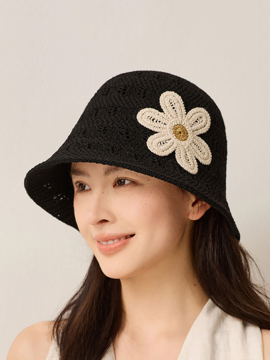 Bob d'été tricoté à fleurs pour femme
