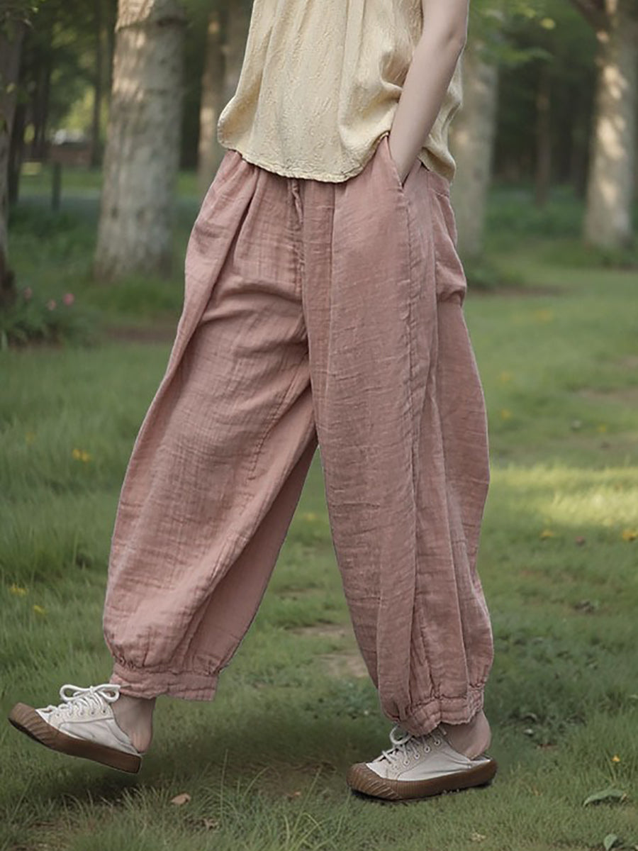 Pantalon sarouel d'été pour femme, couleur pure, 100 % coton
