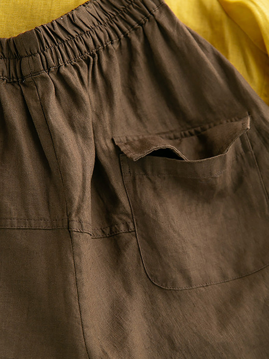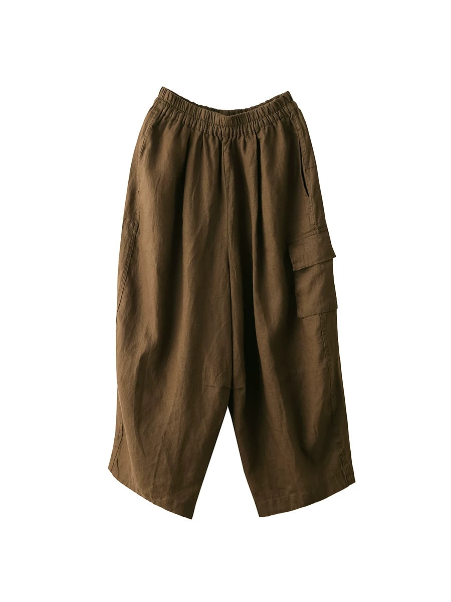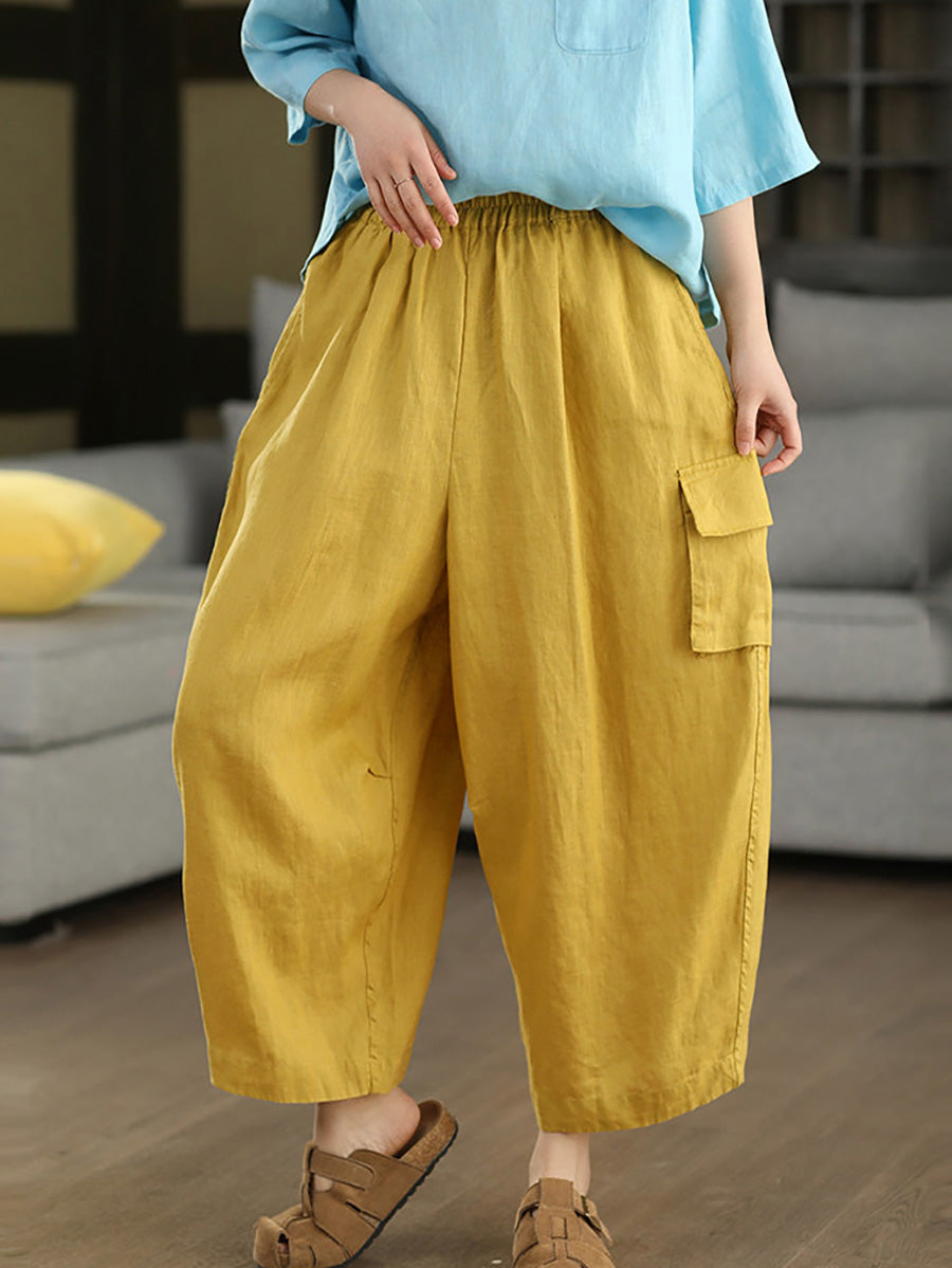 Pantalon harem d'été pour femme, couleur unie, 100 % lin