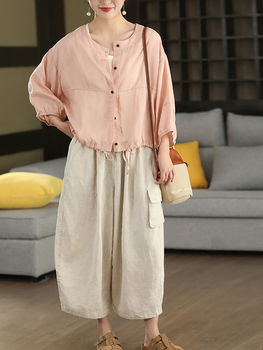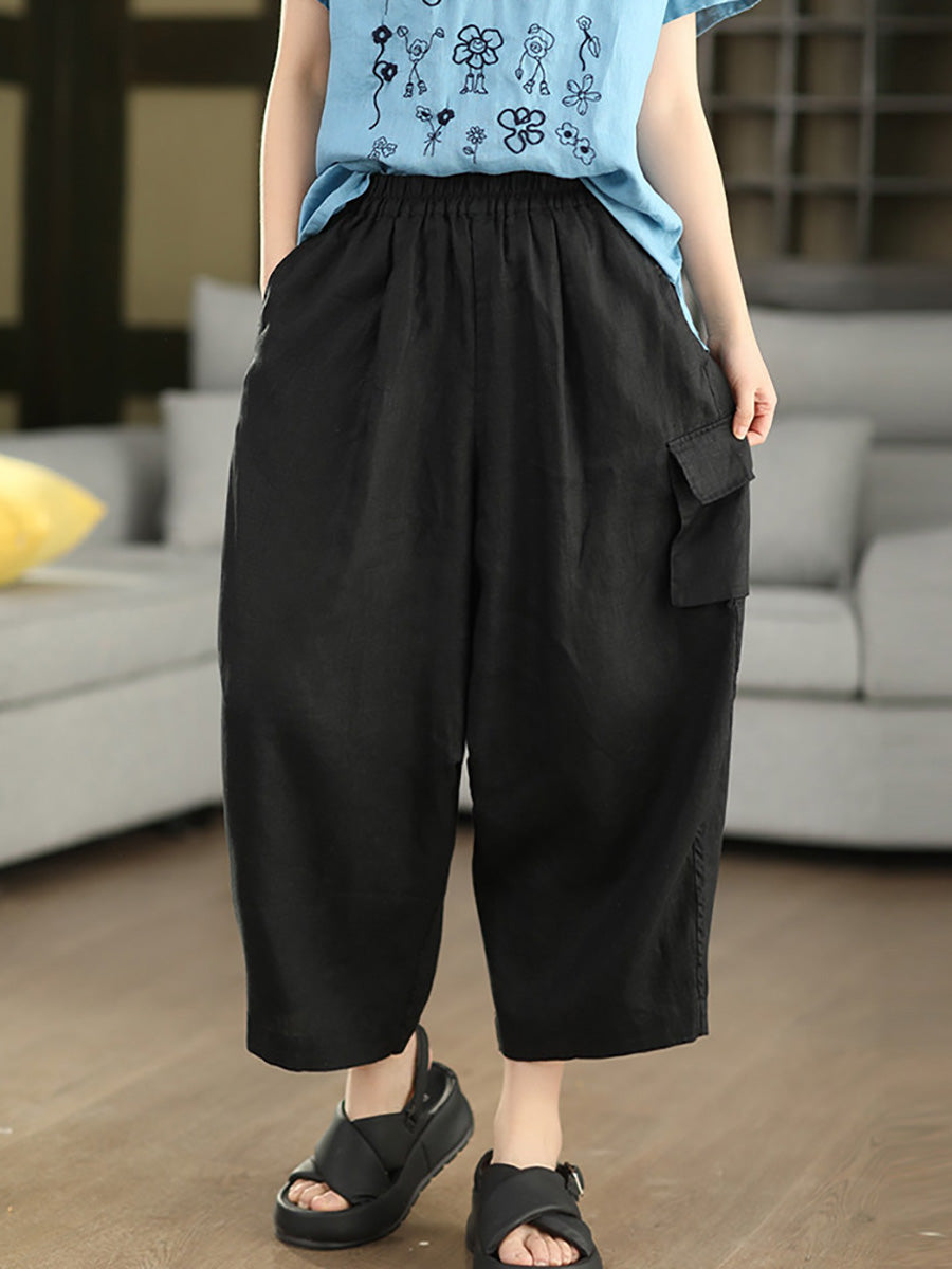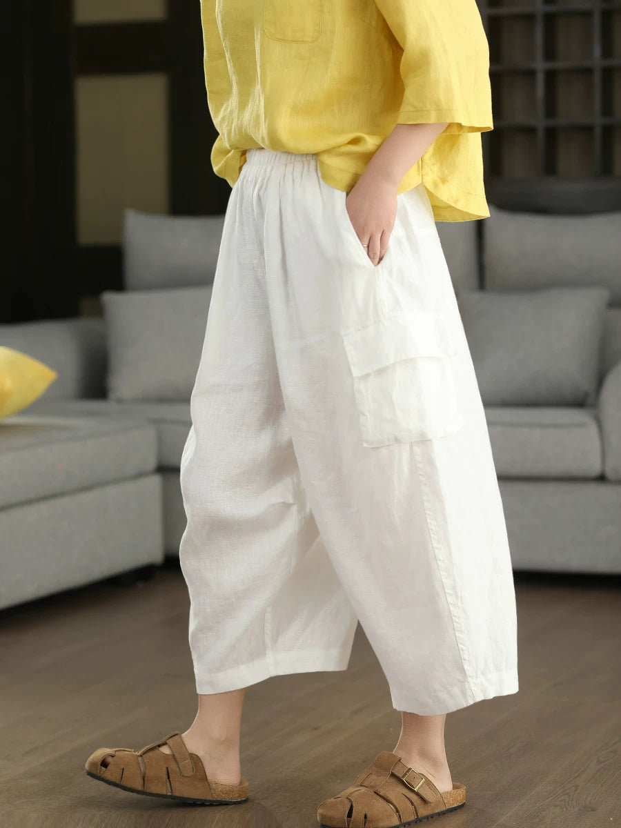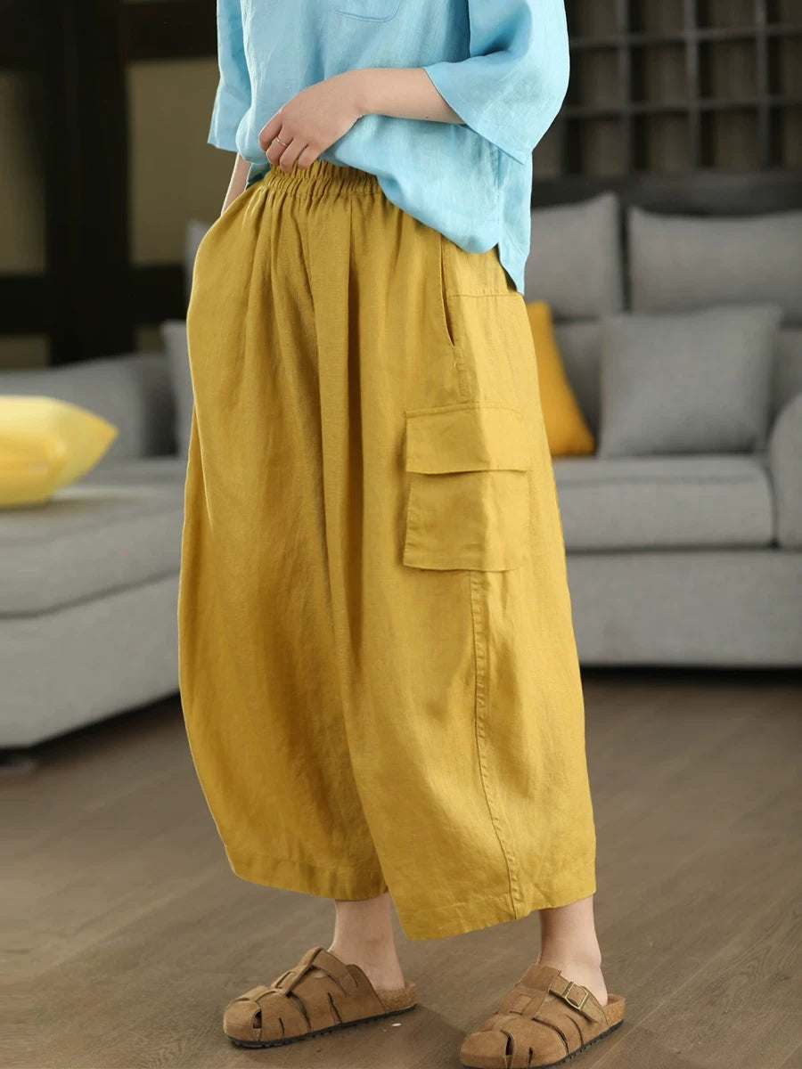 Pantalon harem d'été pour femme, couleur unie, 100 % lin