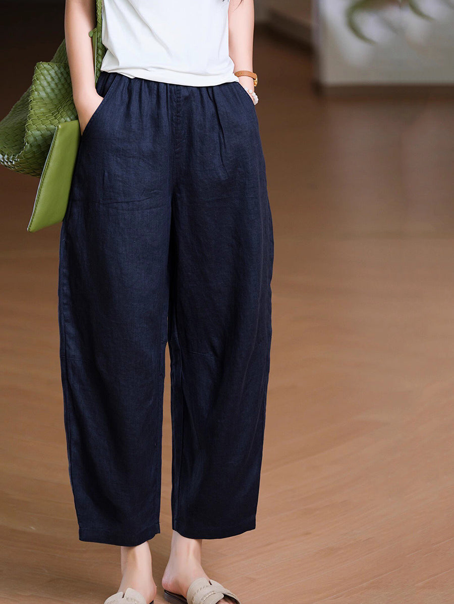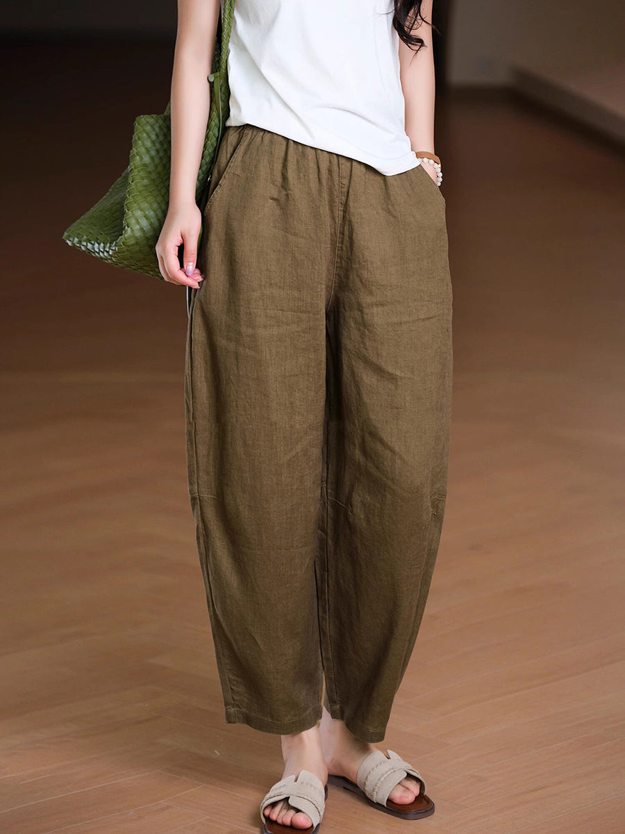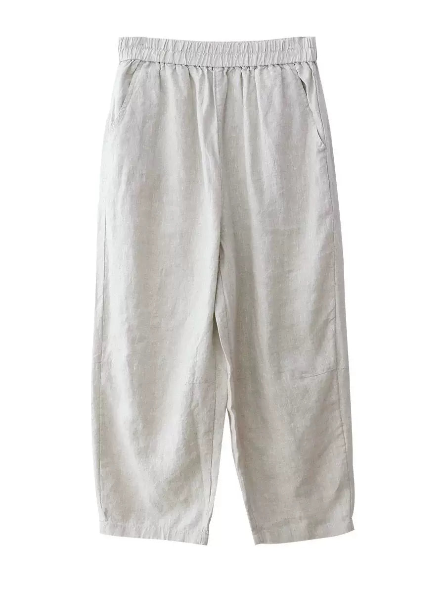 Pantalon harem d'été pour femme, couleur unie, 100 % lin