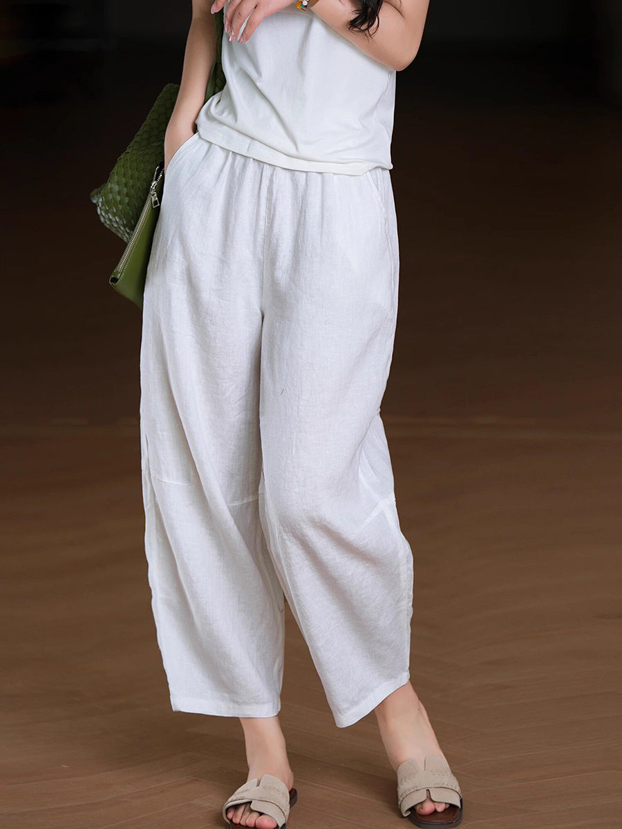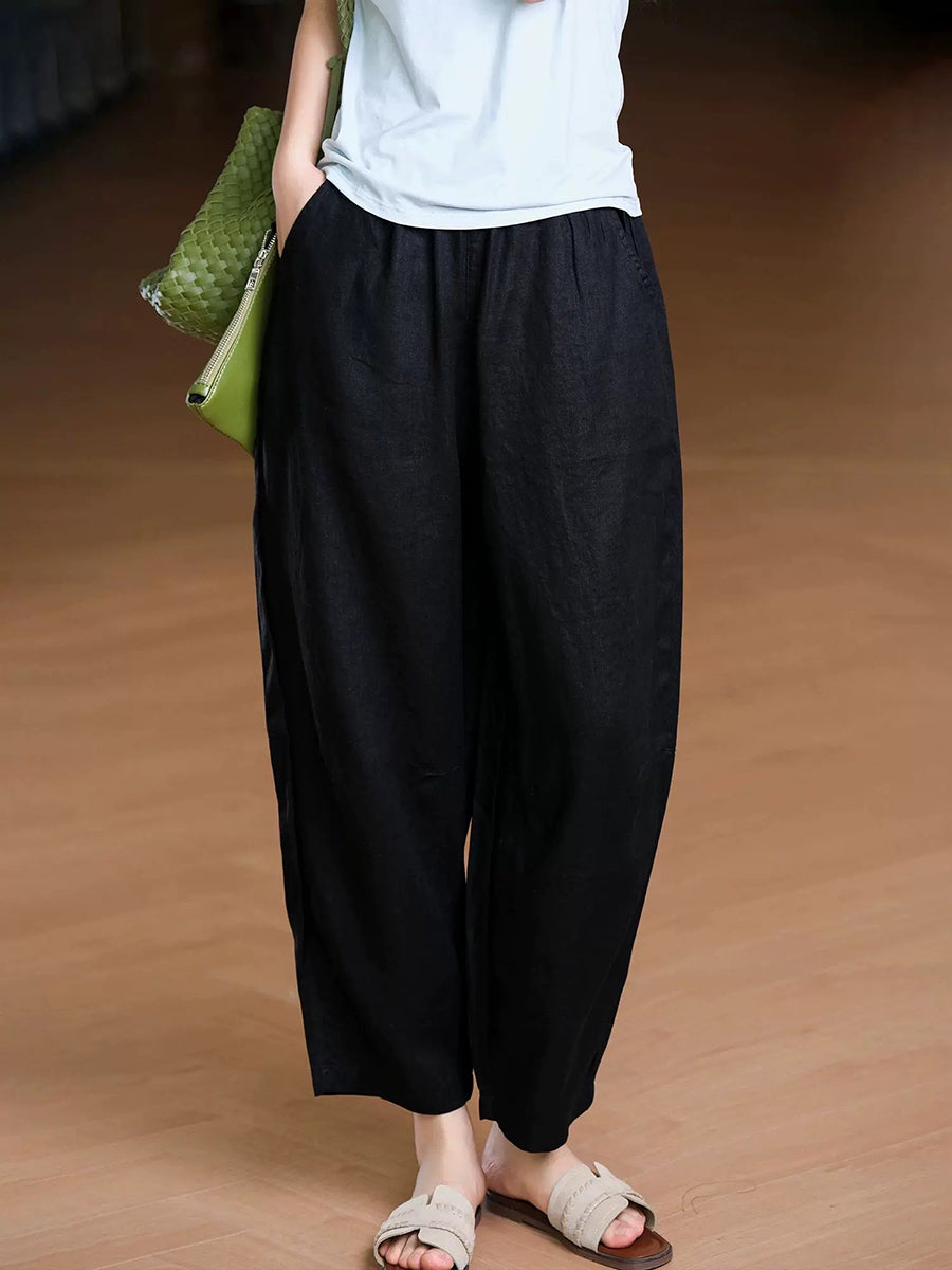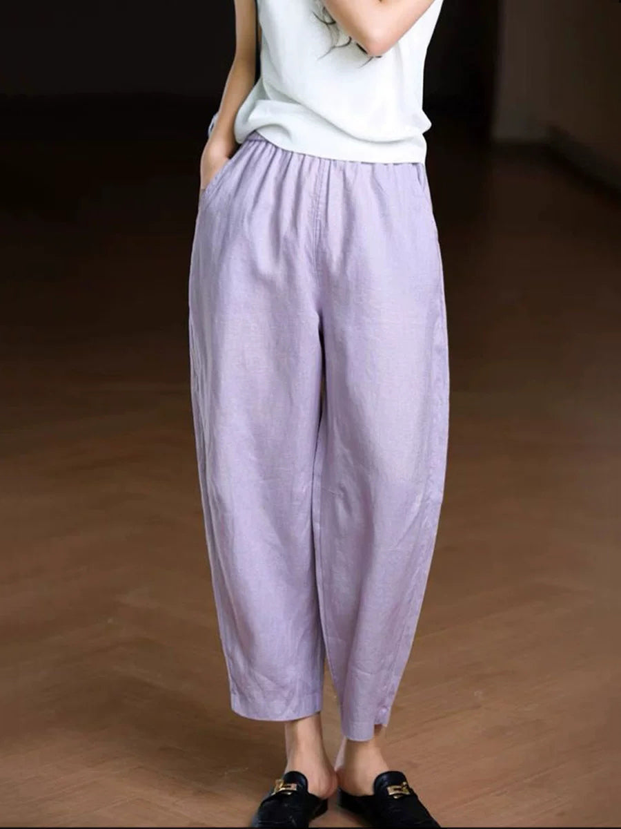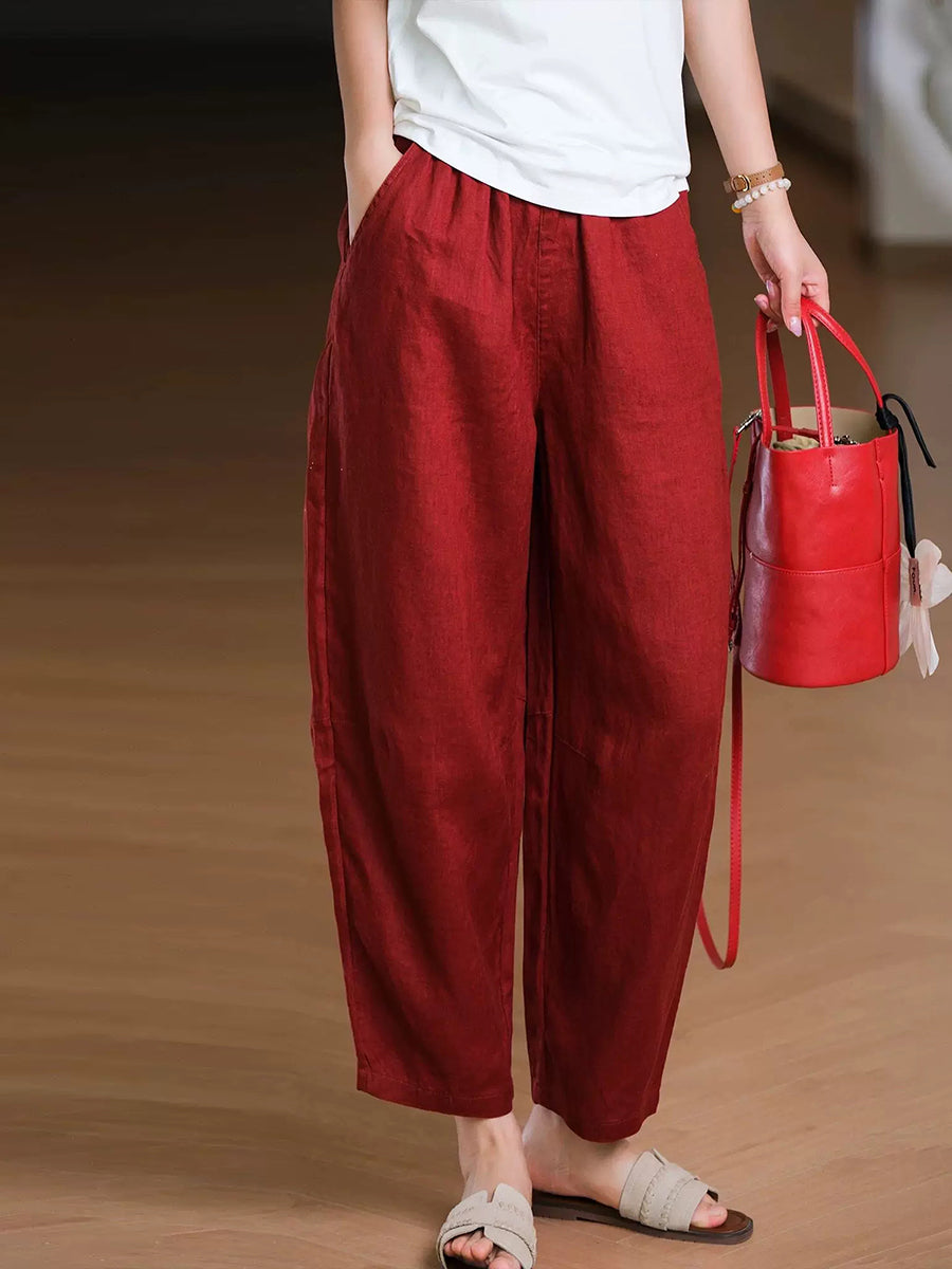 Pantalon harem d'été pour femme, couleur unie, 100 % lin