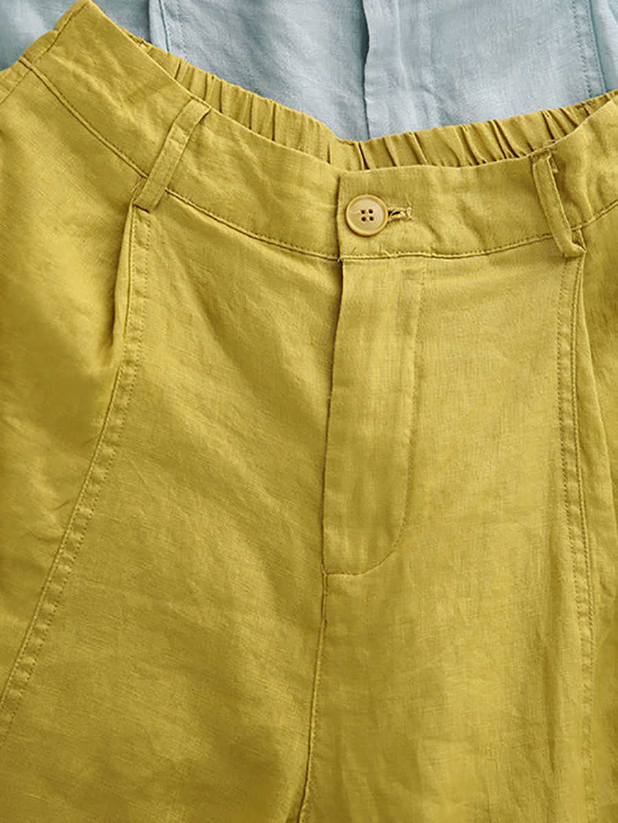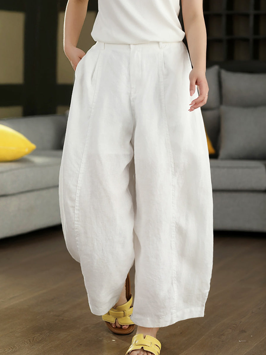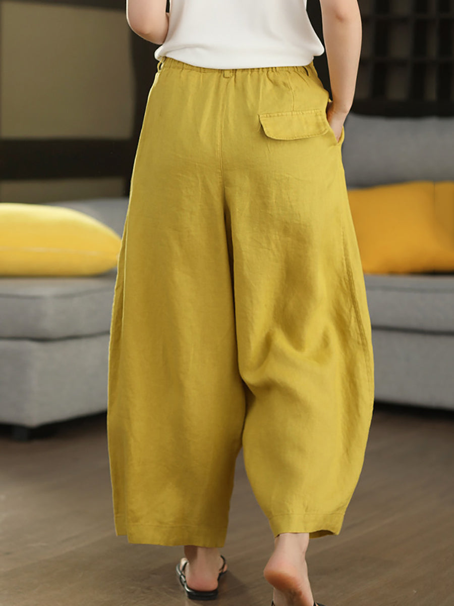 Pantalon harem d'été pour femme, couleur unie, 100 % lin