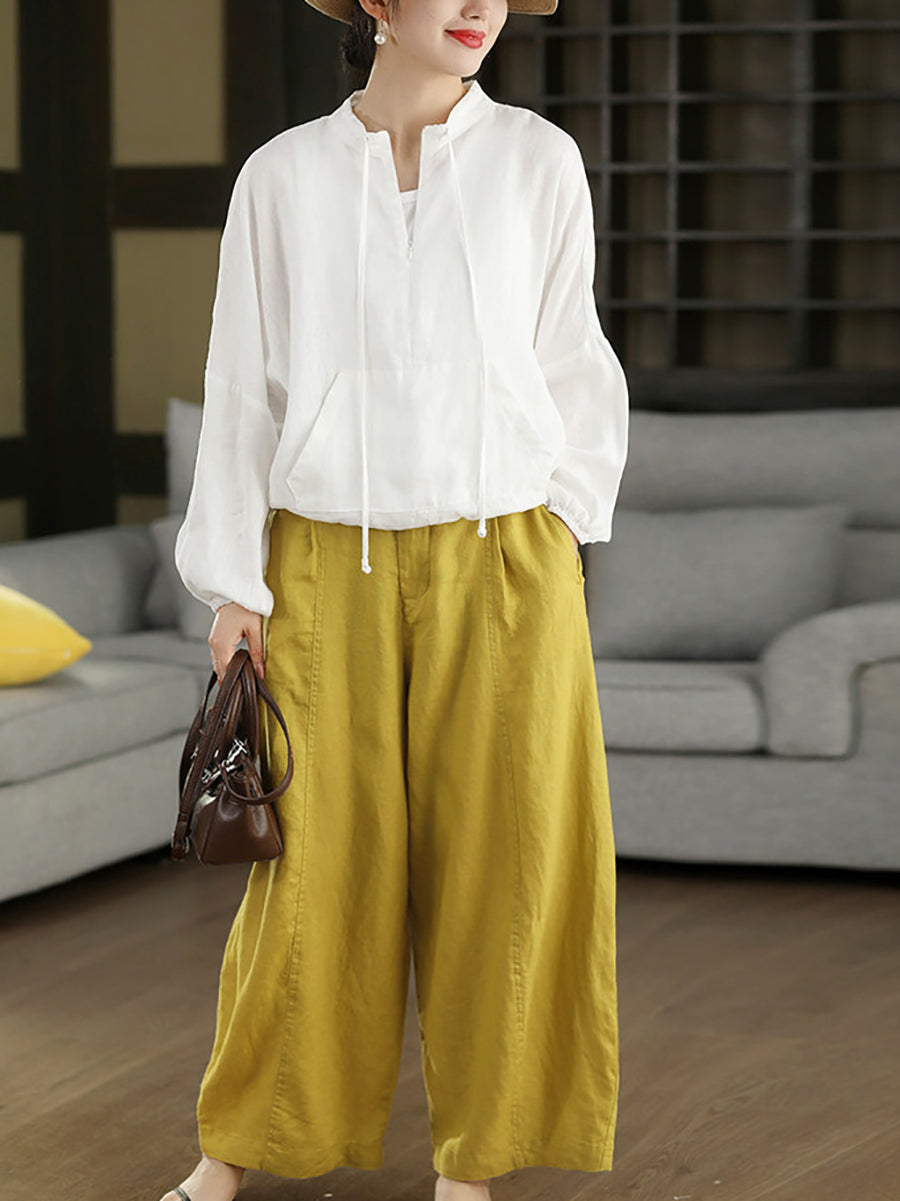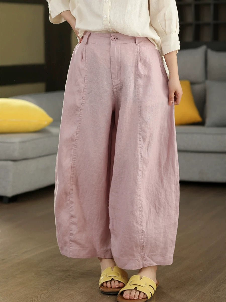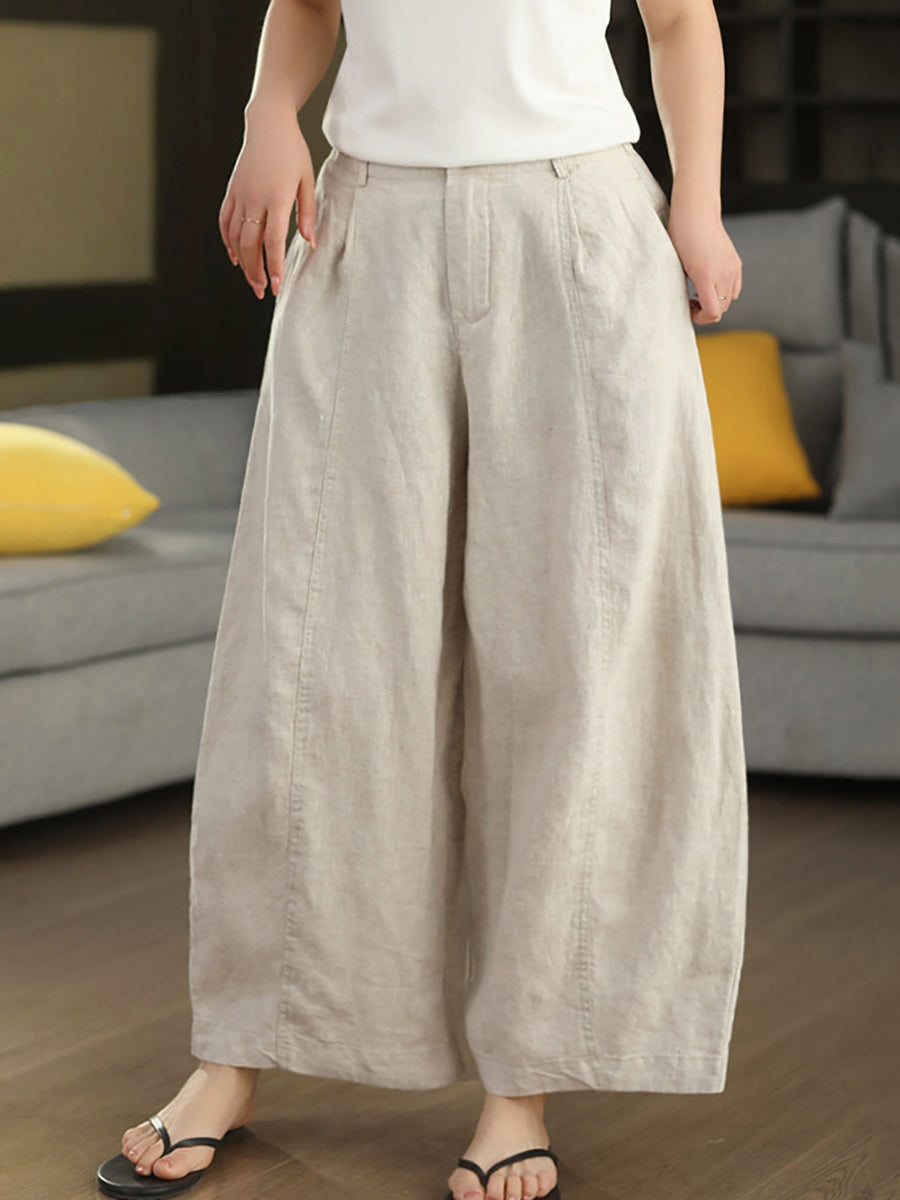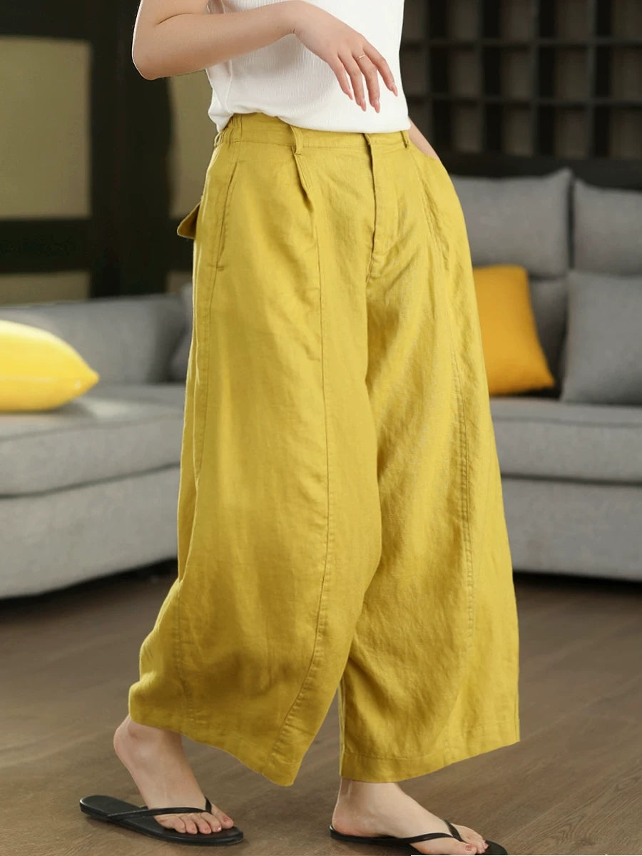 Pantalon harem d'été pour femme, couleur unie, 100 % lin