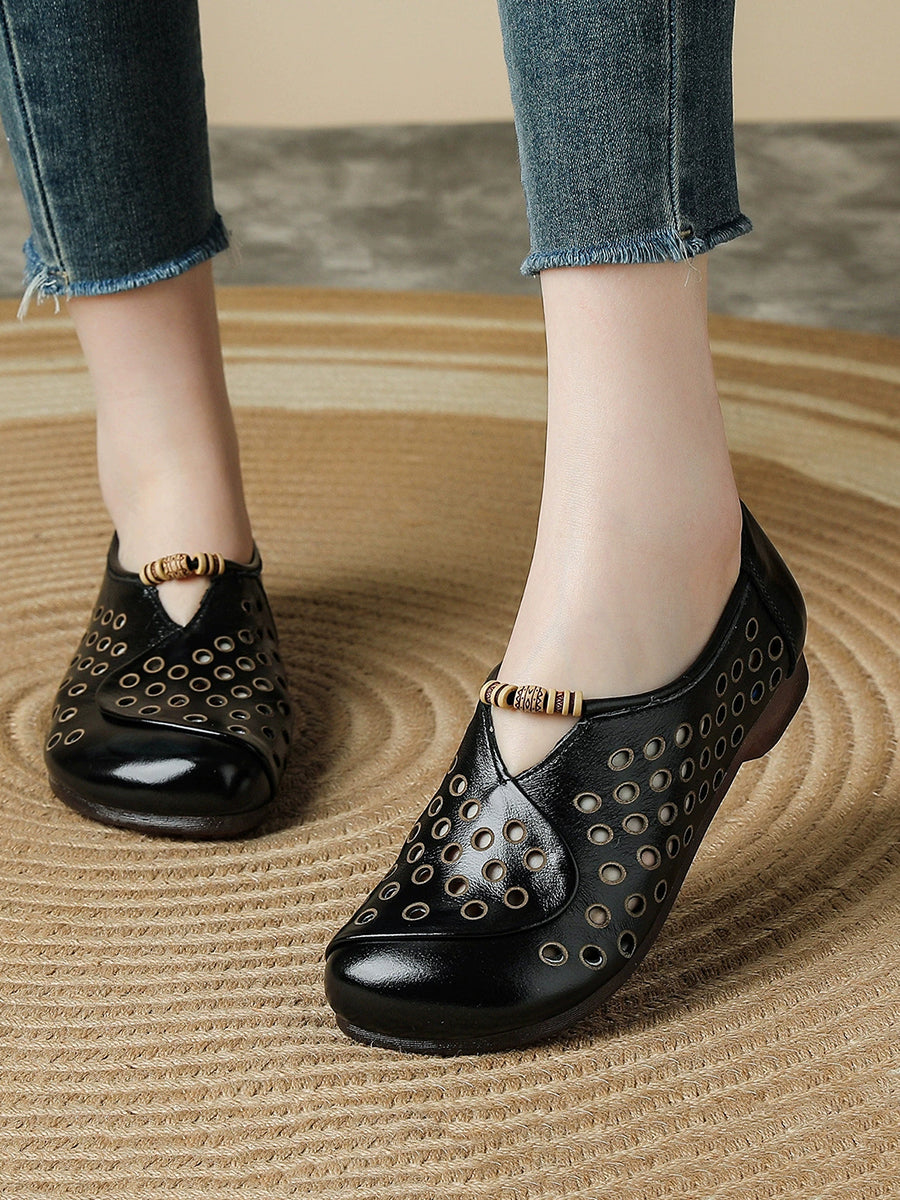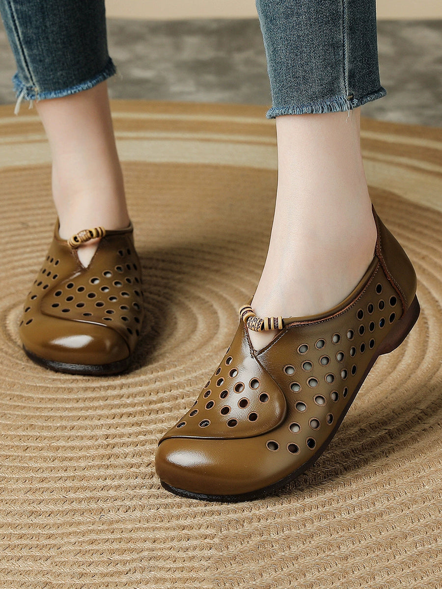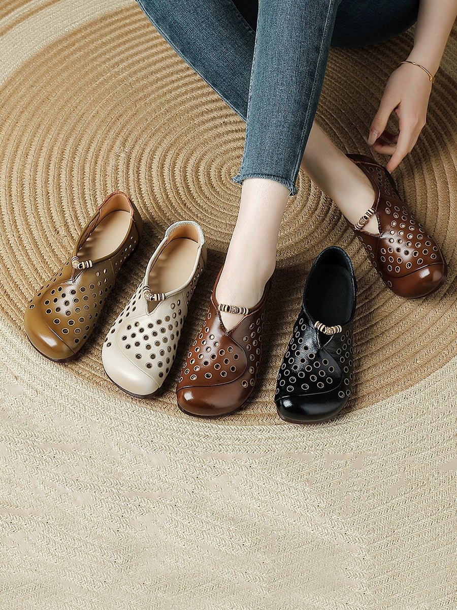 Chaussures d'été rétro pour femmes en cuir véritable perforé
