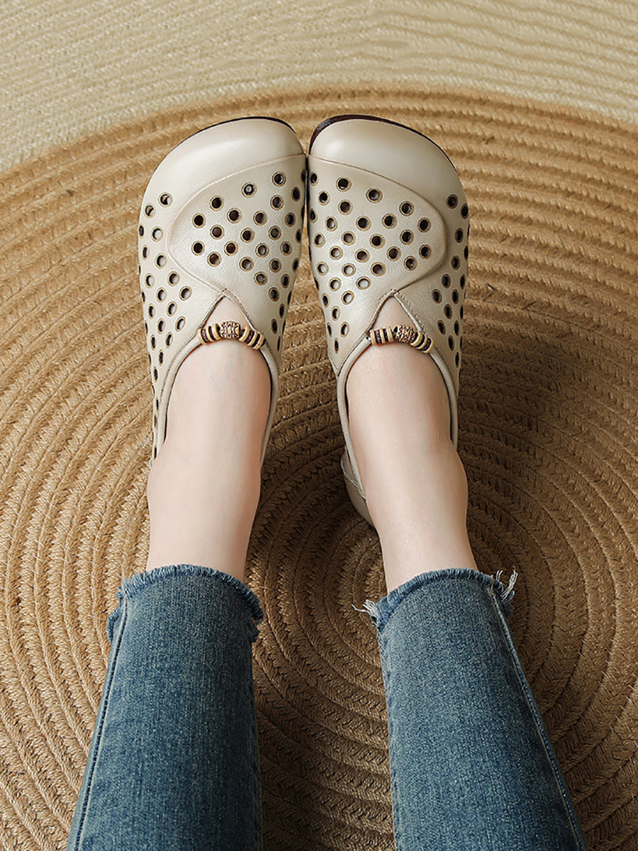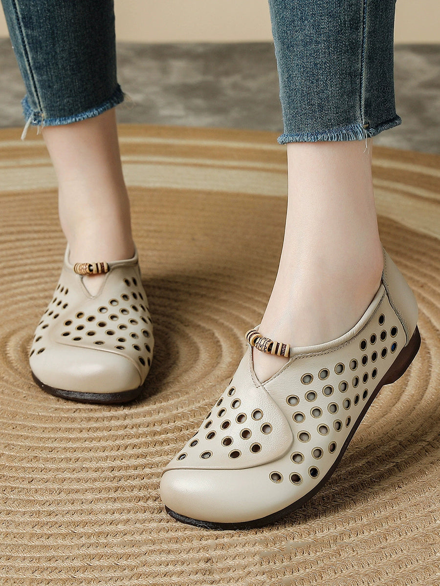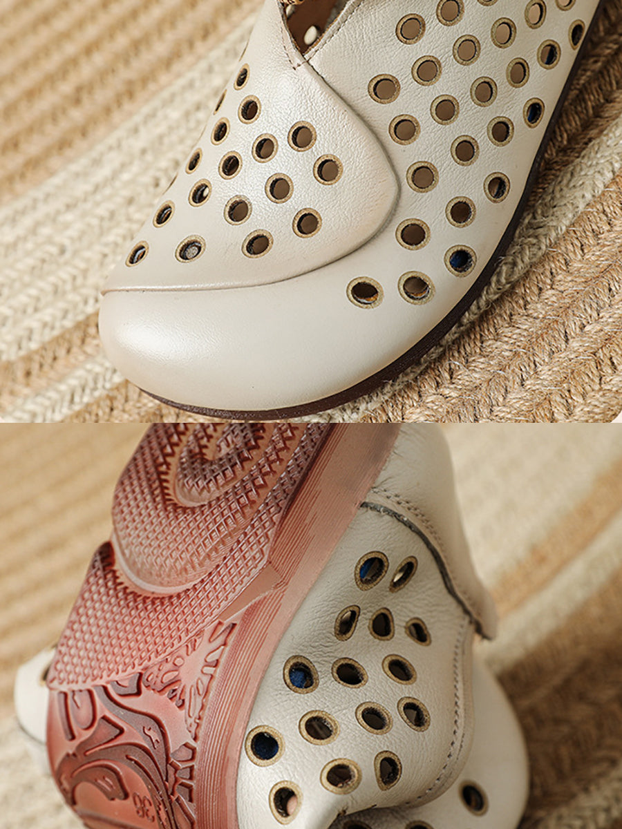 Chaussures d'été rétro pour femmes en cuir véritable perforé