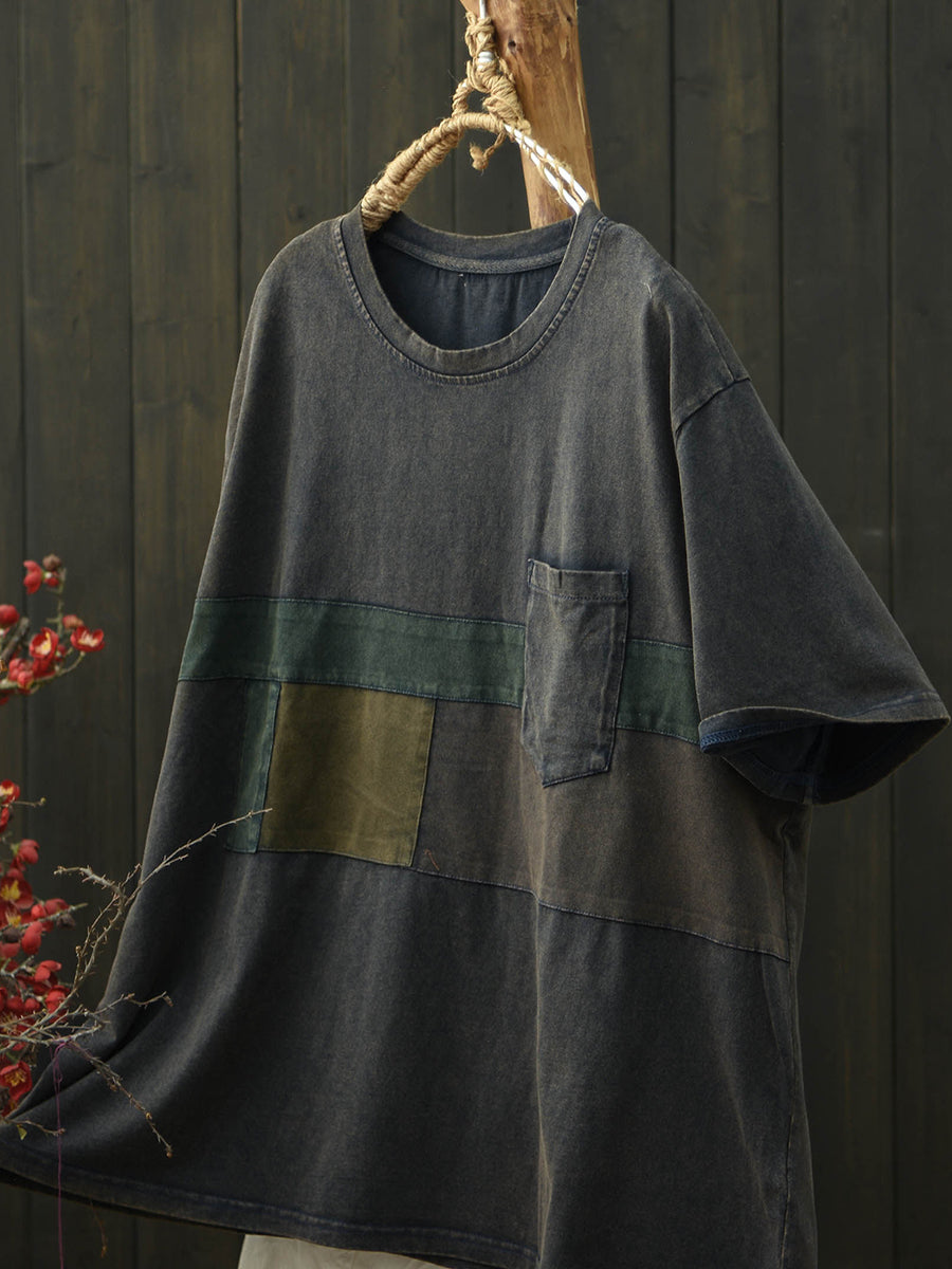 T-shirt d'été rétro patchwork en coton pour femme