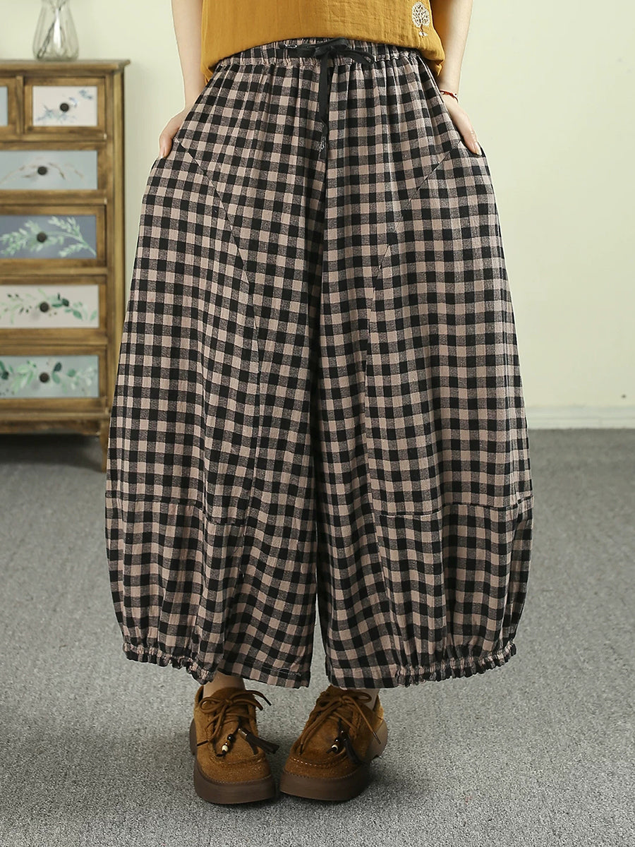 Bloomer d'été rétro à carreaux en coton pour femmes