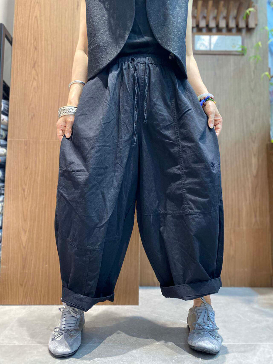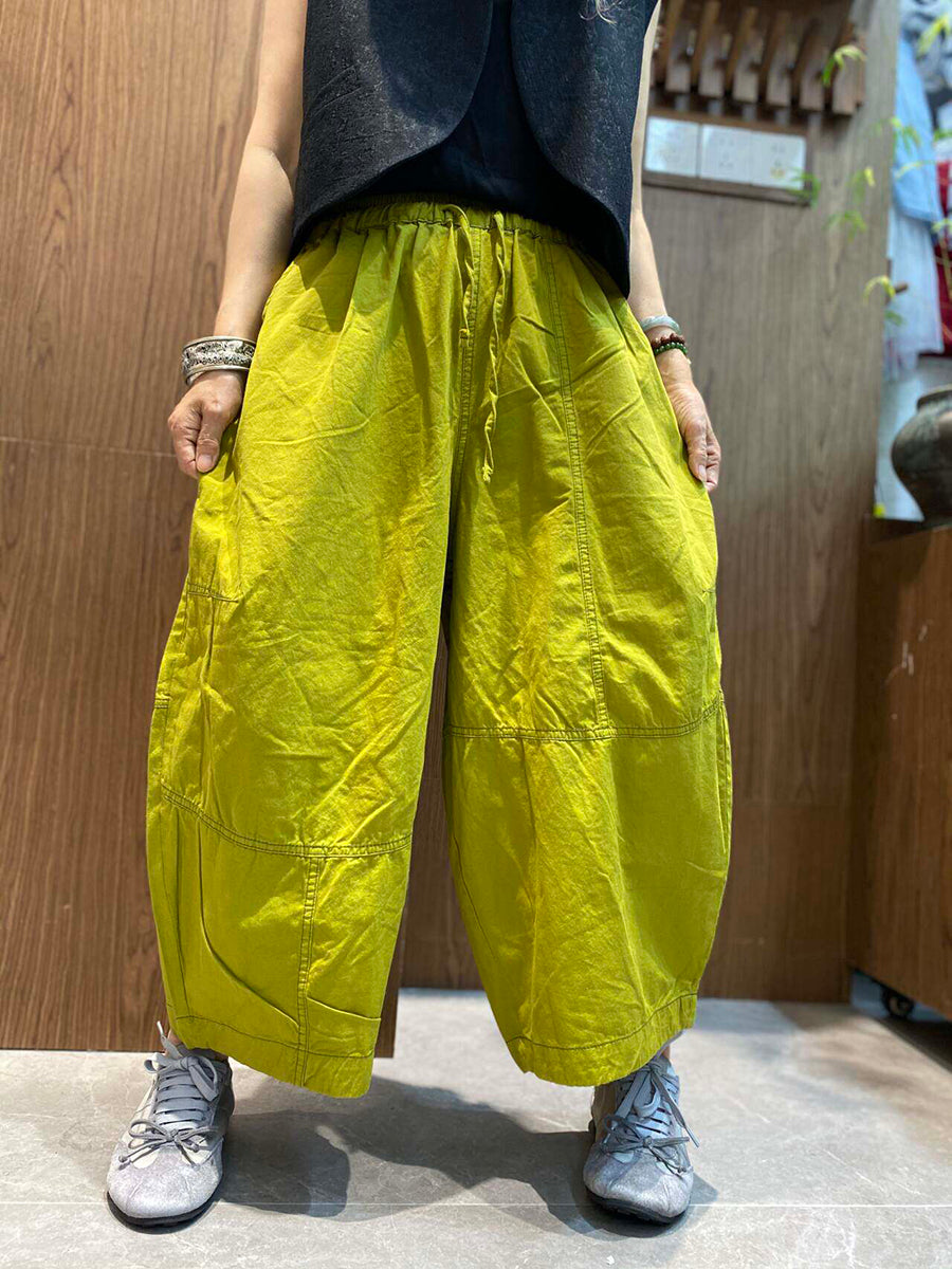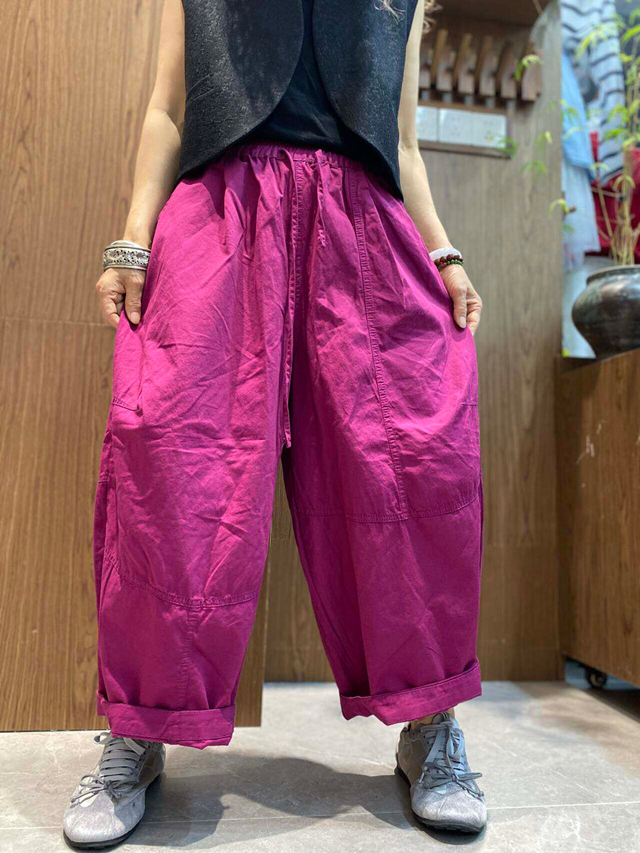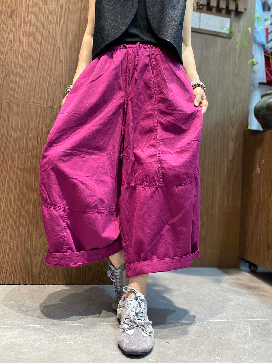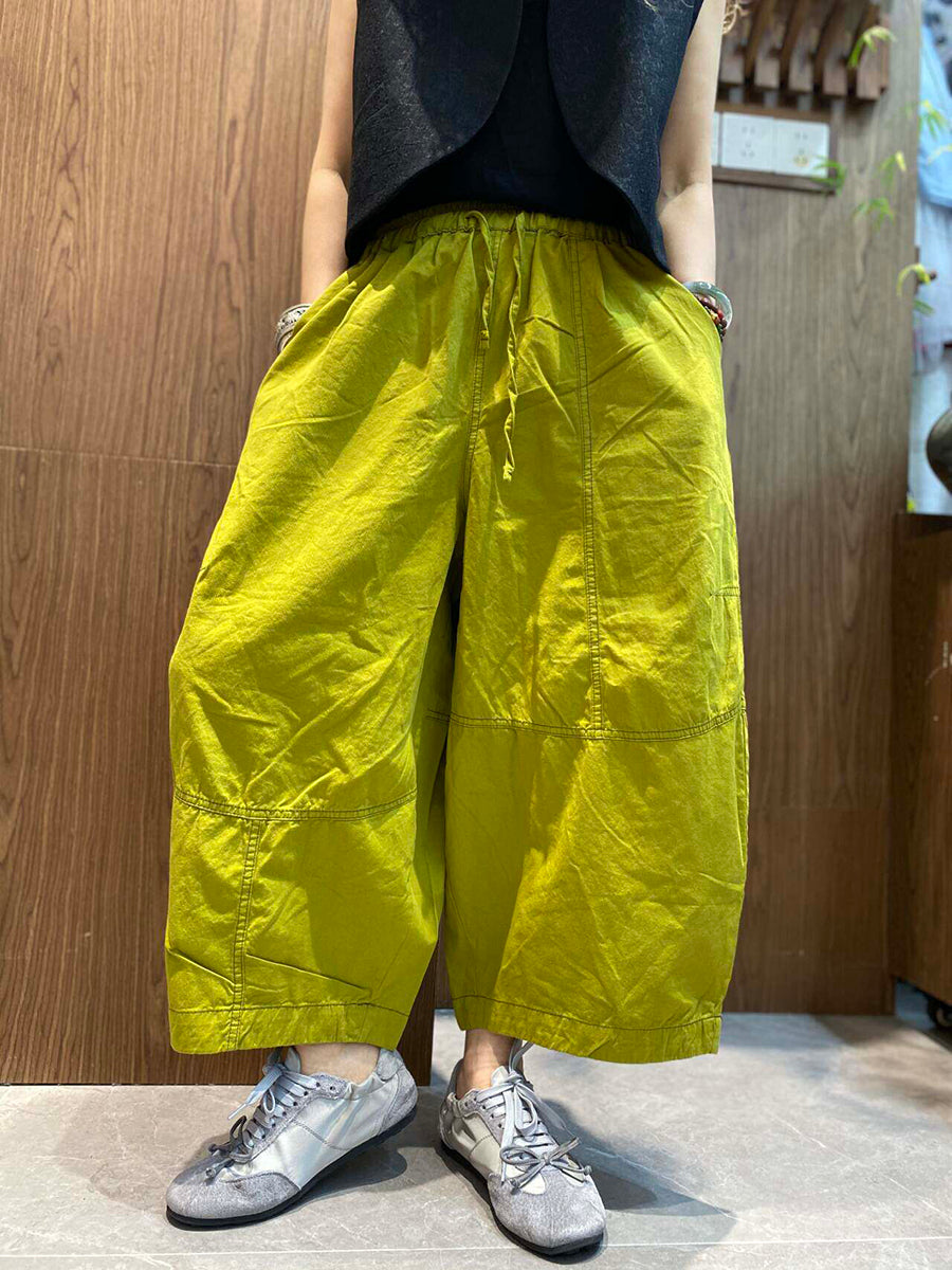 Pantalon d'été rétro femme à jambes larges couleur unie