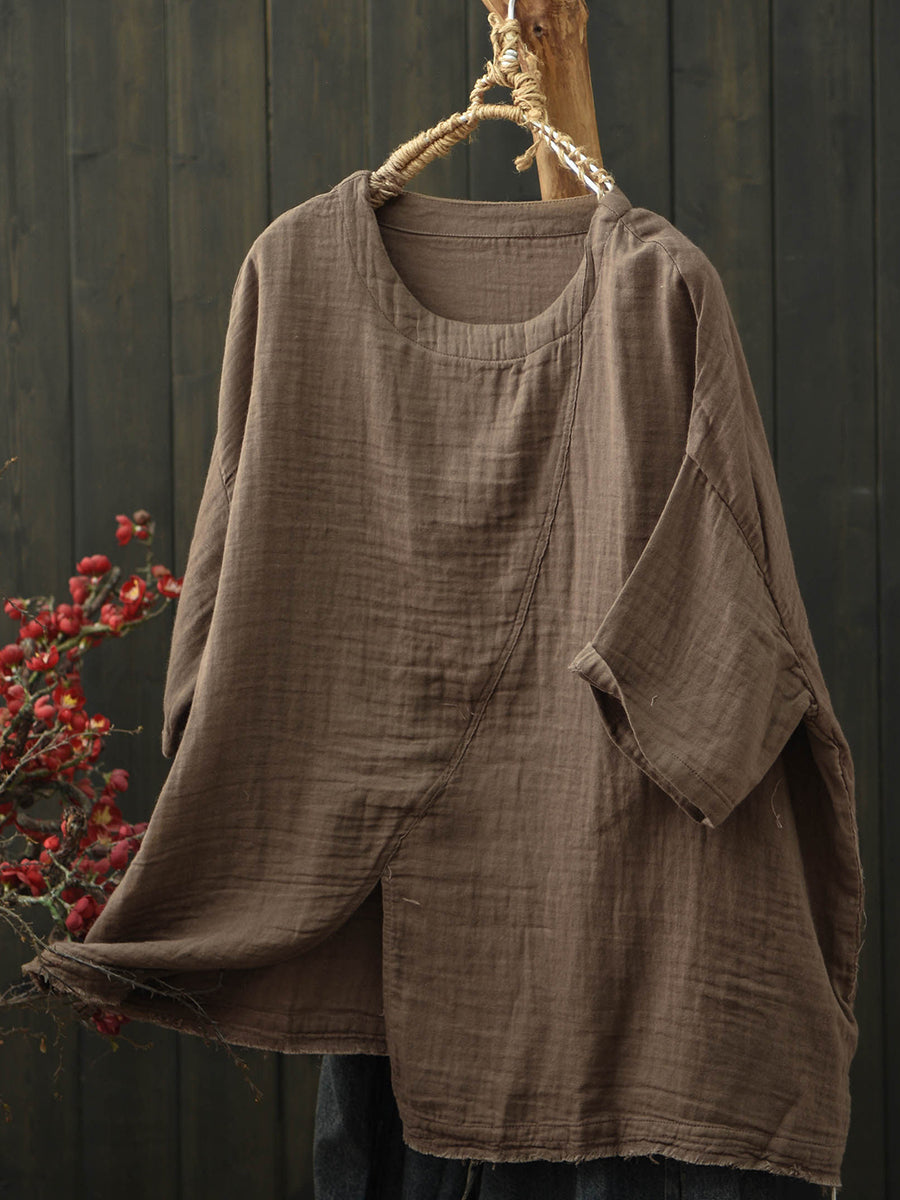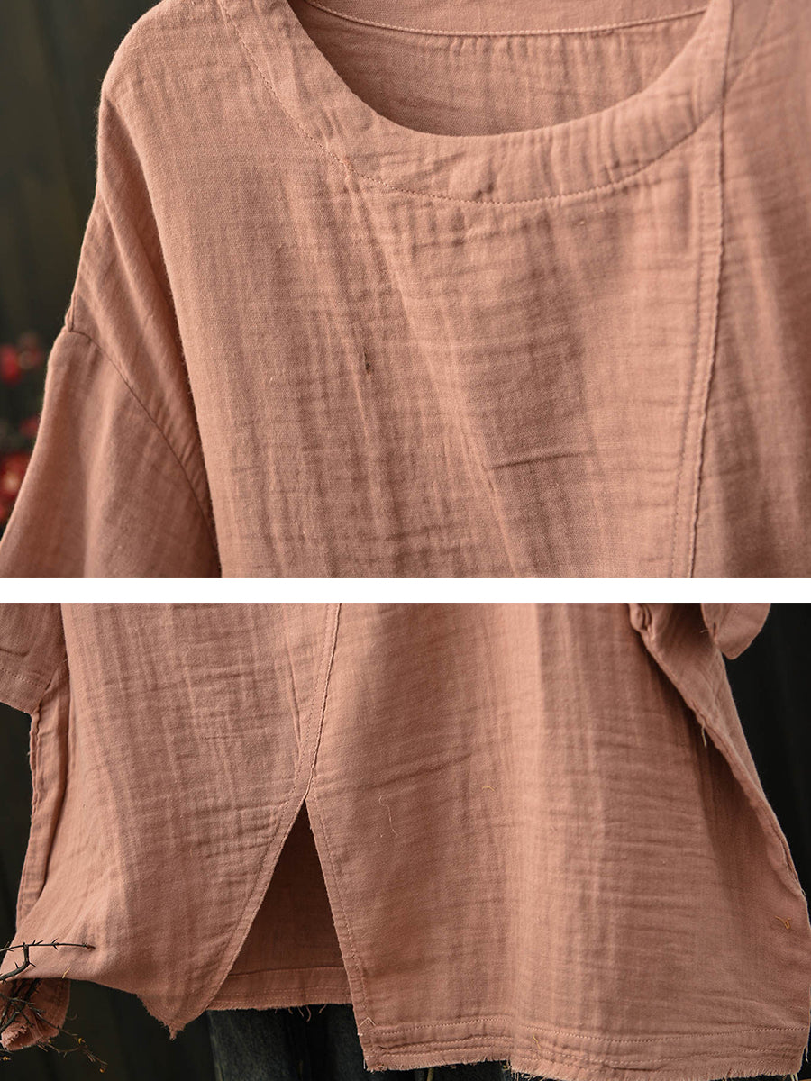 T-shirt d'été rétro en coton à ourlet fendu pour femme