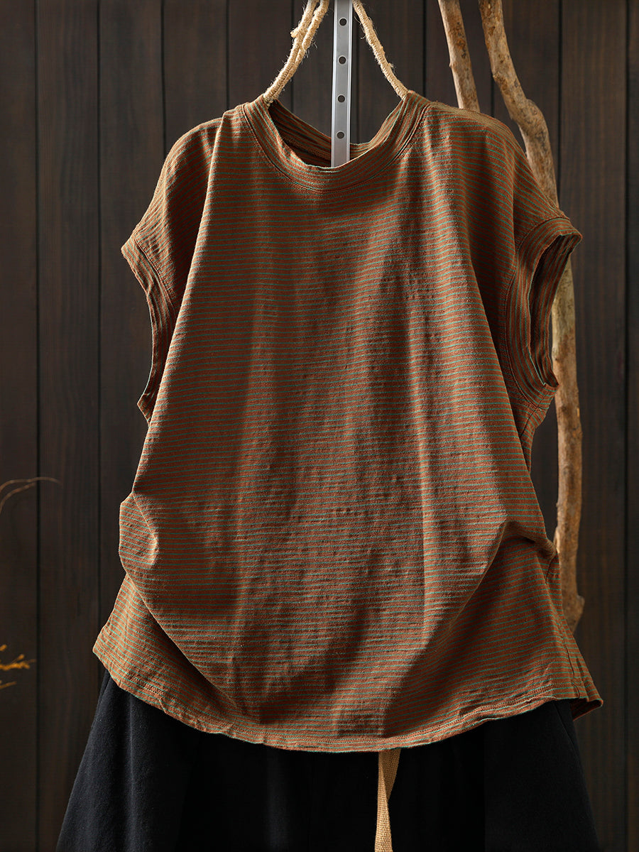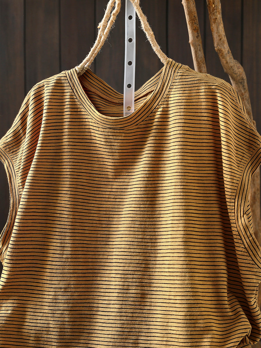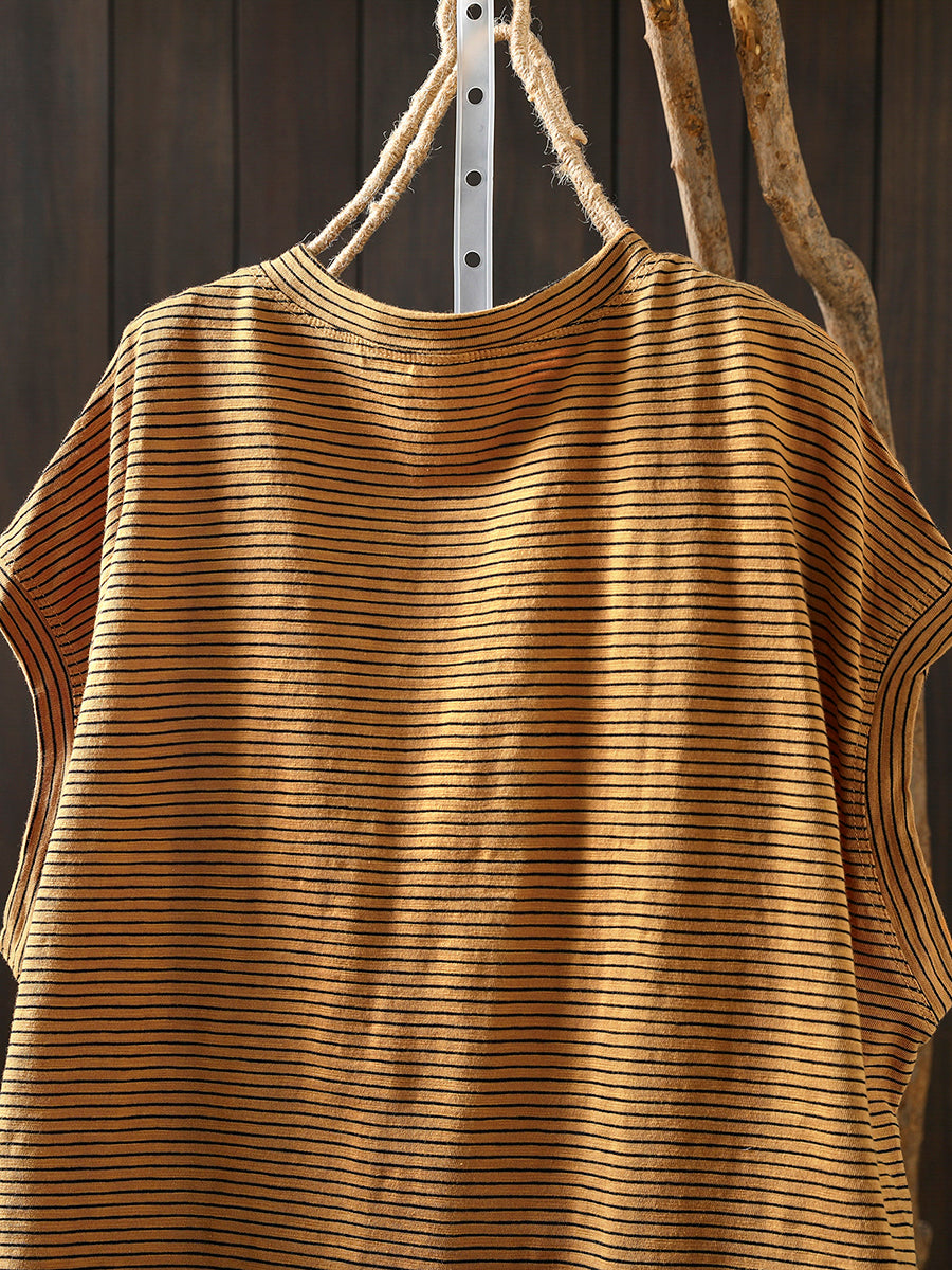 T-shirt d'été à rayures rétro pour femme, 100 % coton
