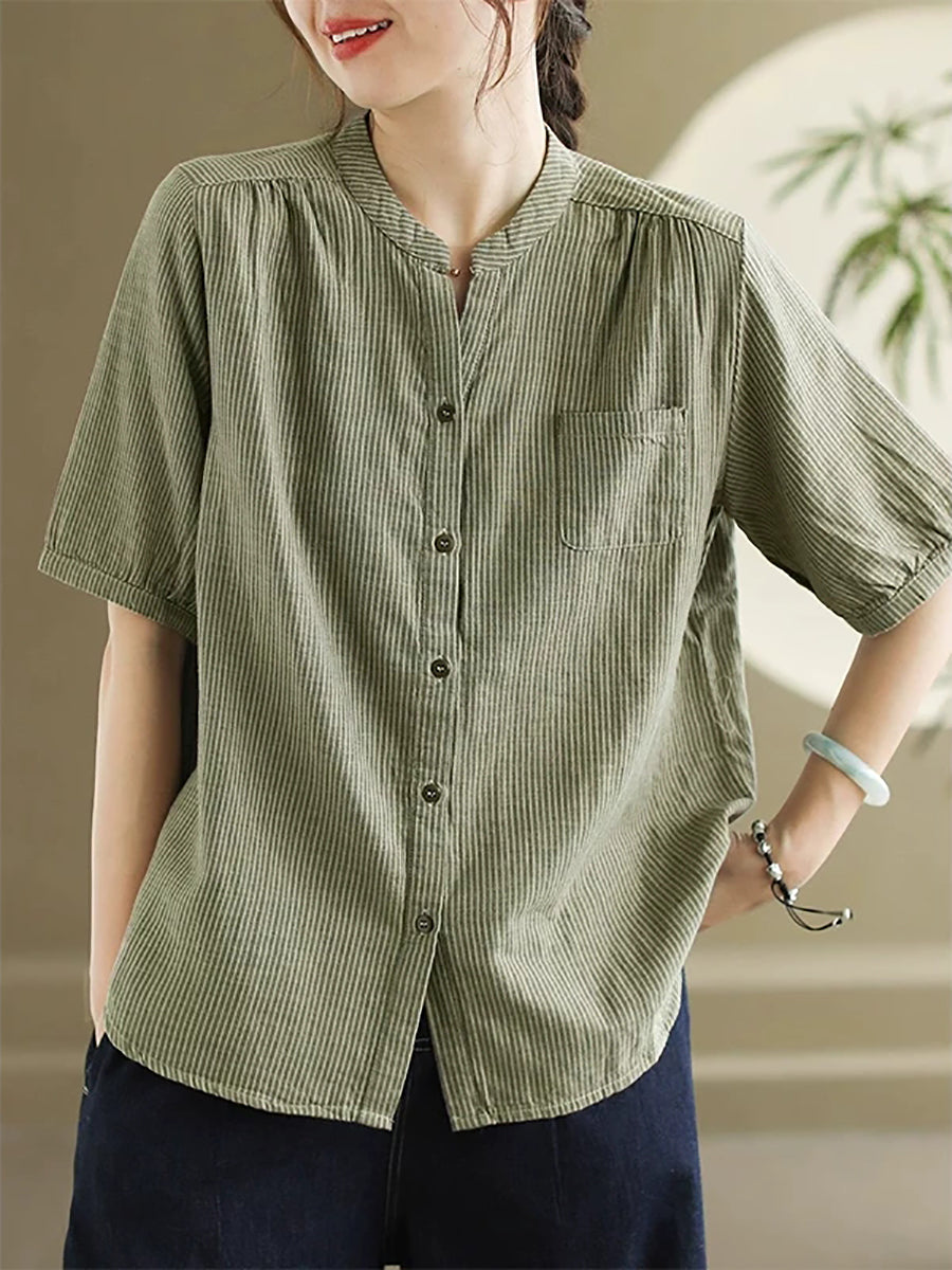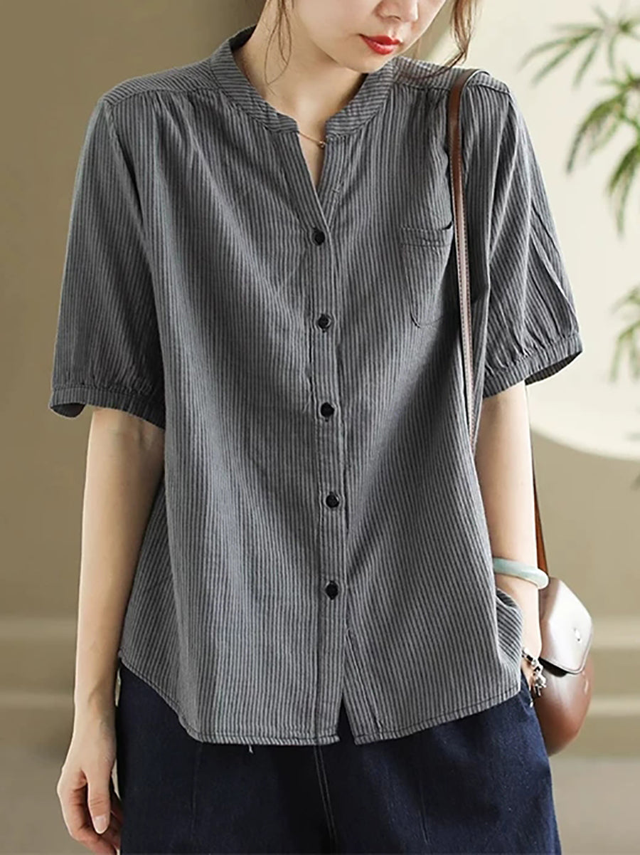 Chemisier d'été rétro à rayures et col en V pour femme, 100 % coton