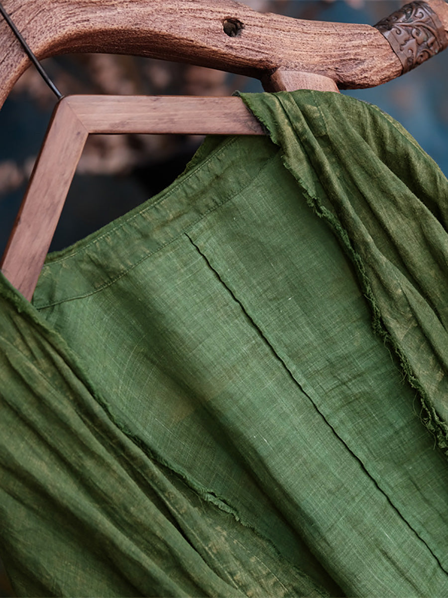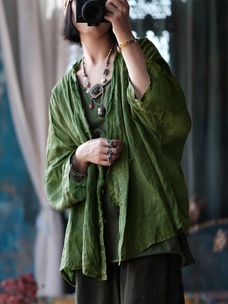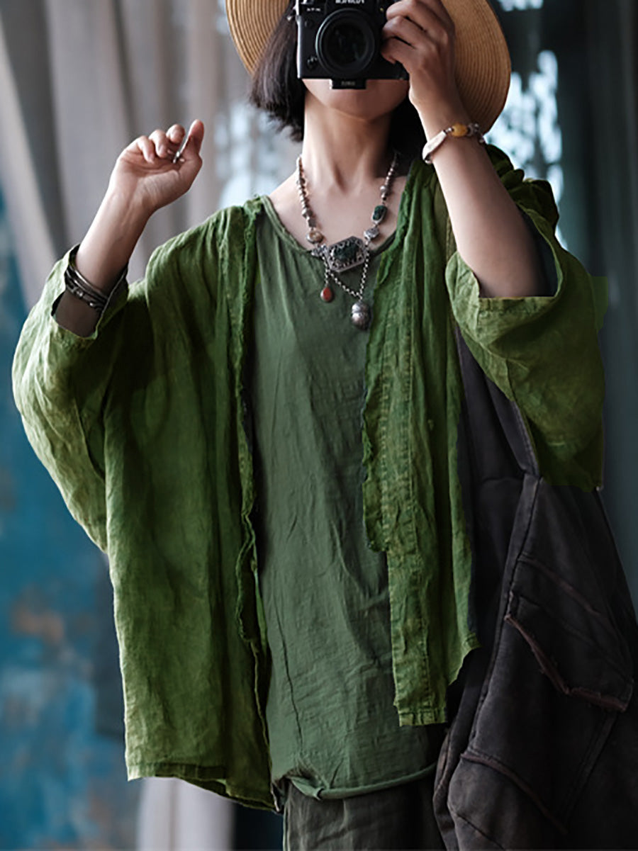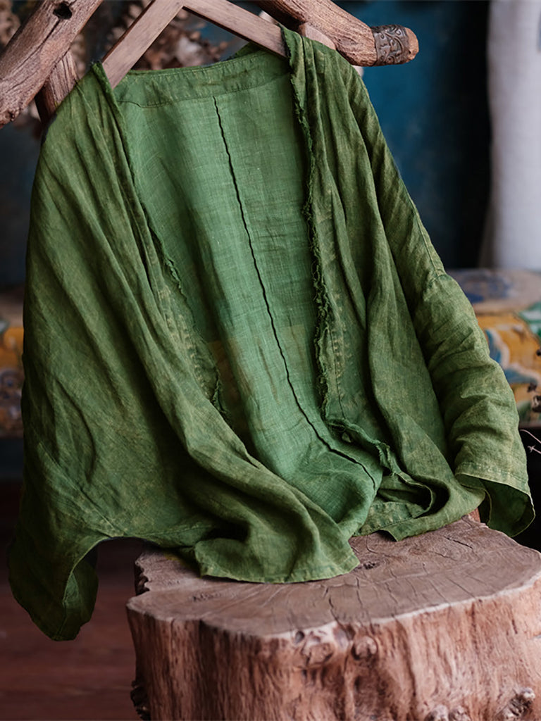 Manteau chemise en ramie à bords bruts pour femme, style rétro, été