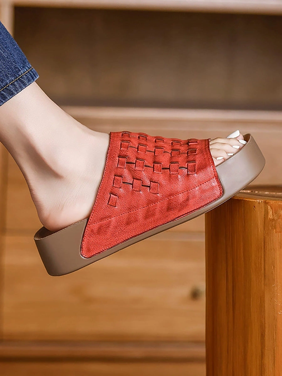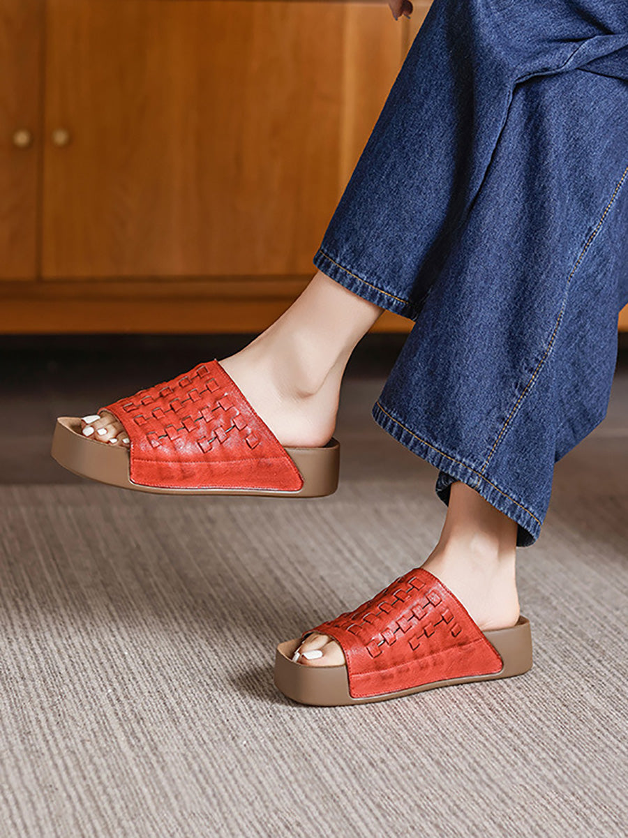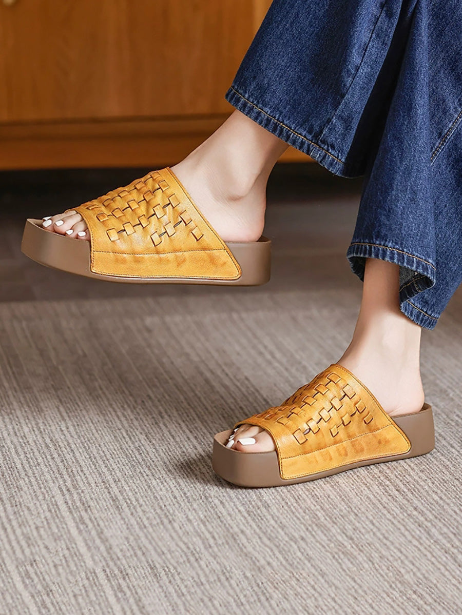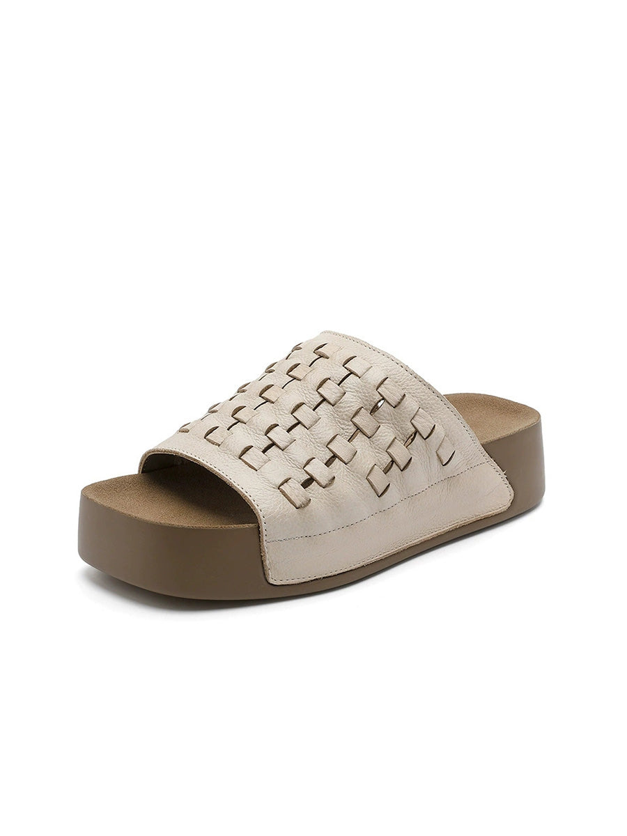 Pantoufles d'été pour femmes en cuir véritable souple tressé