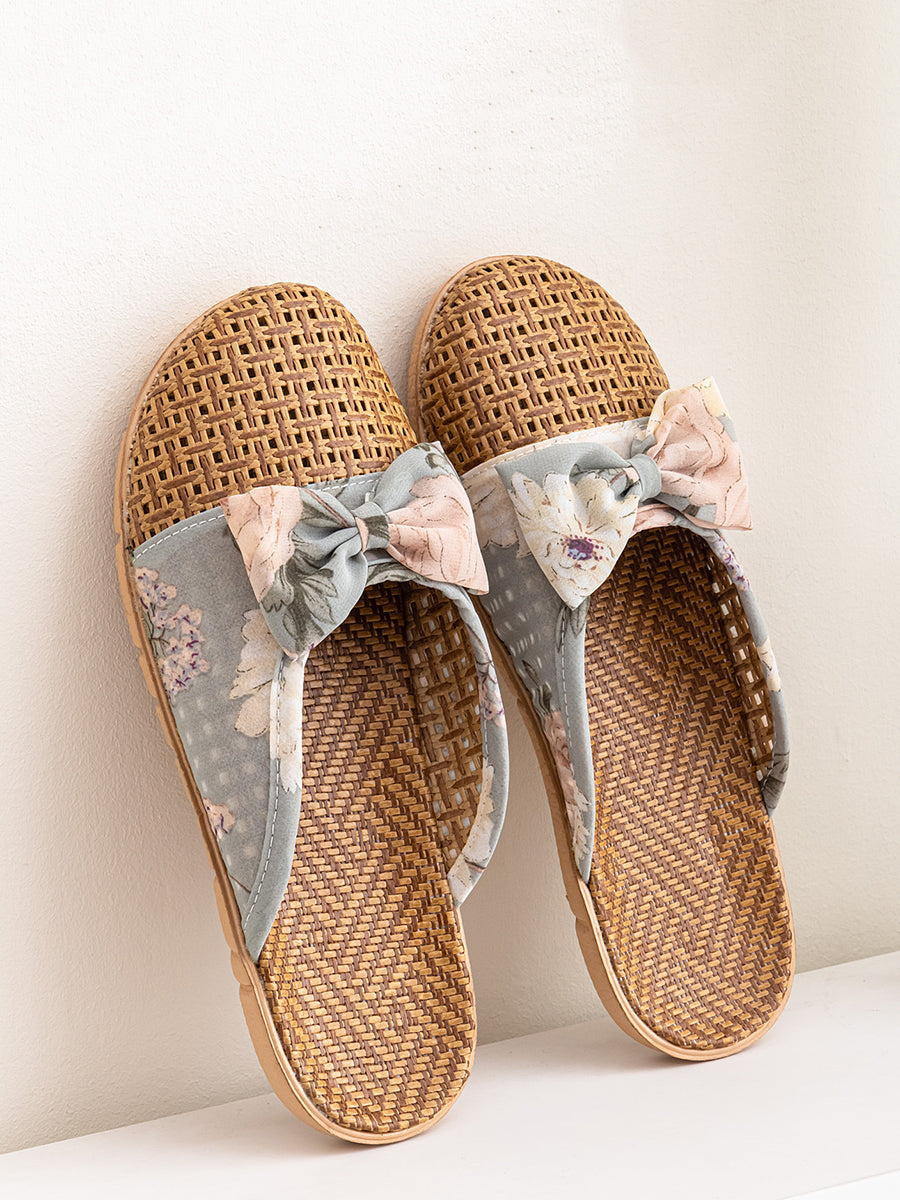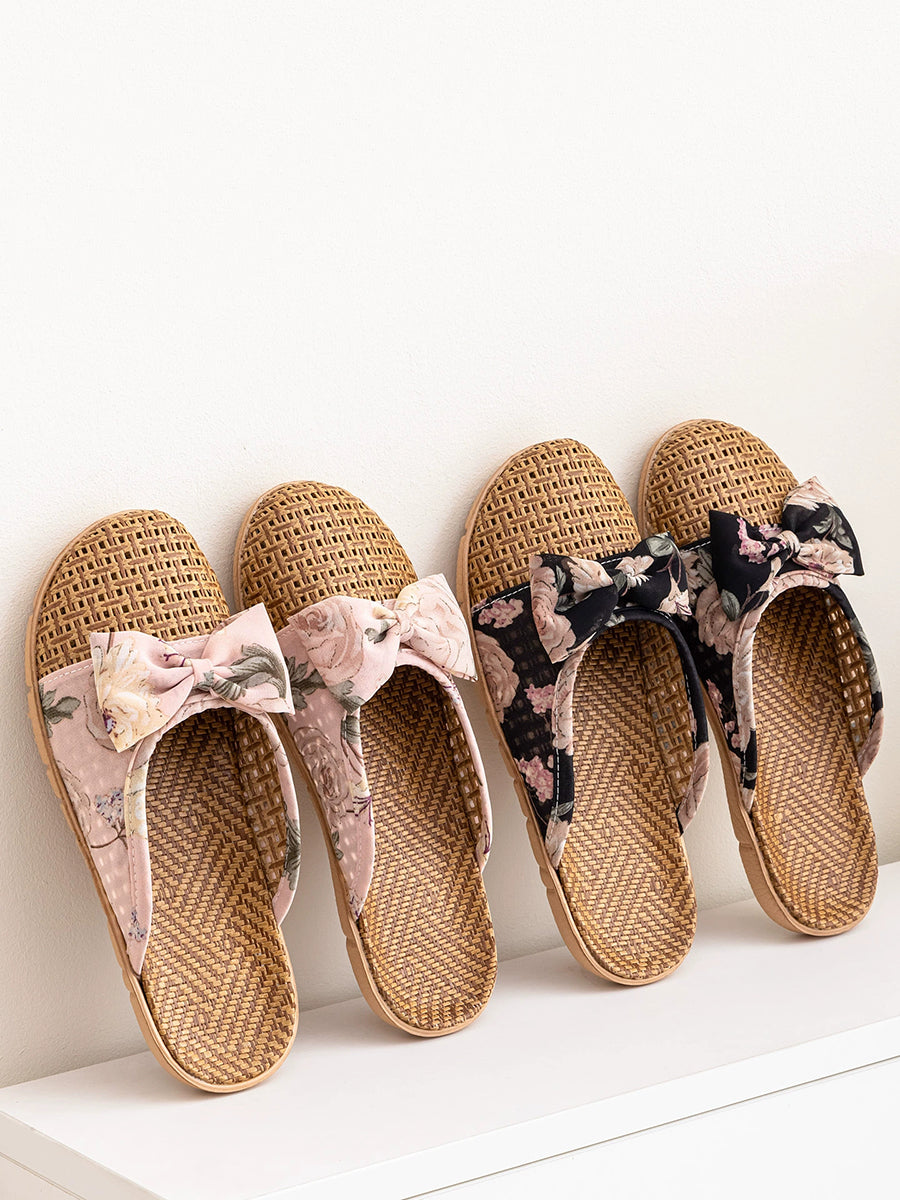 Pantoufles d'été en paille tressée pour femmes