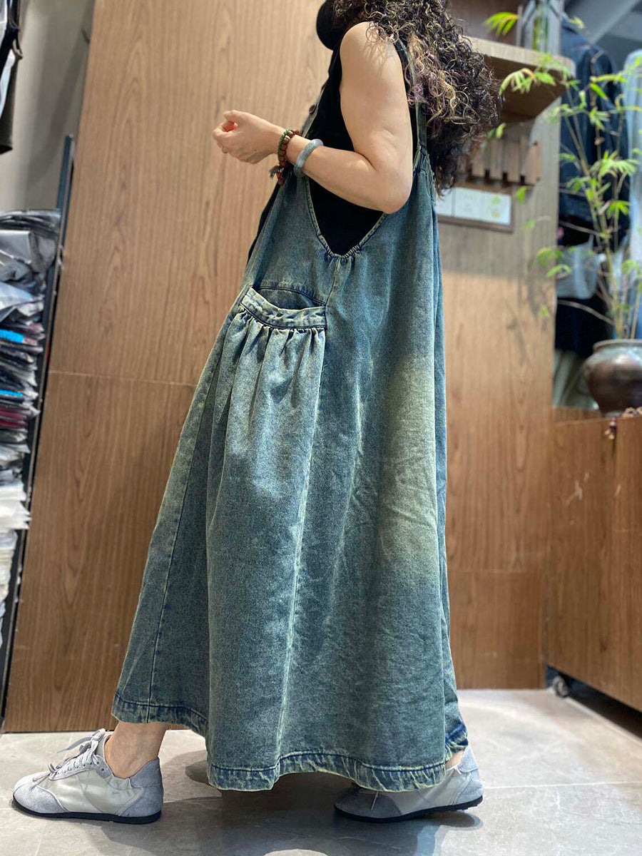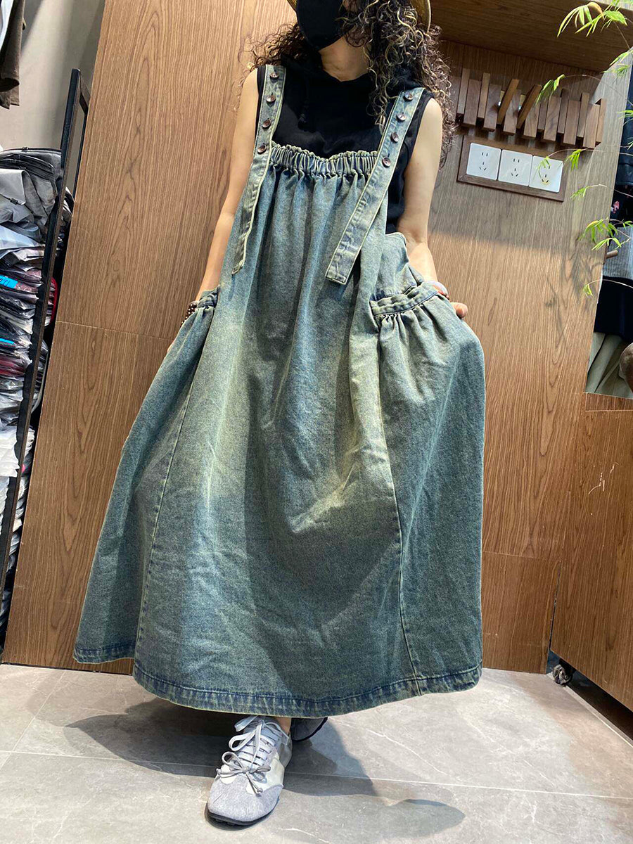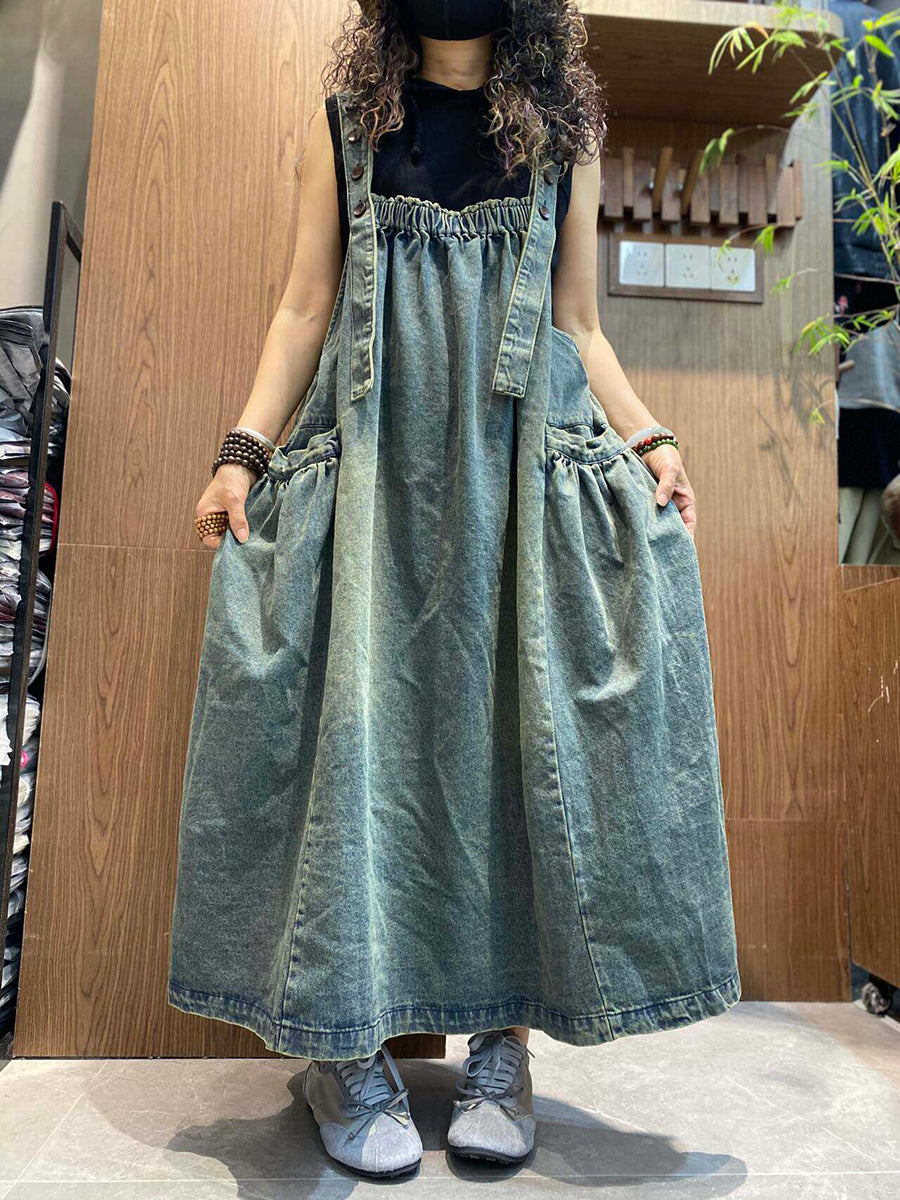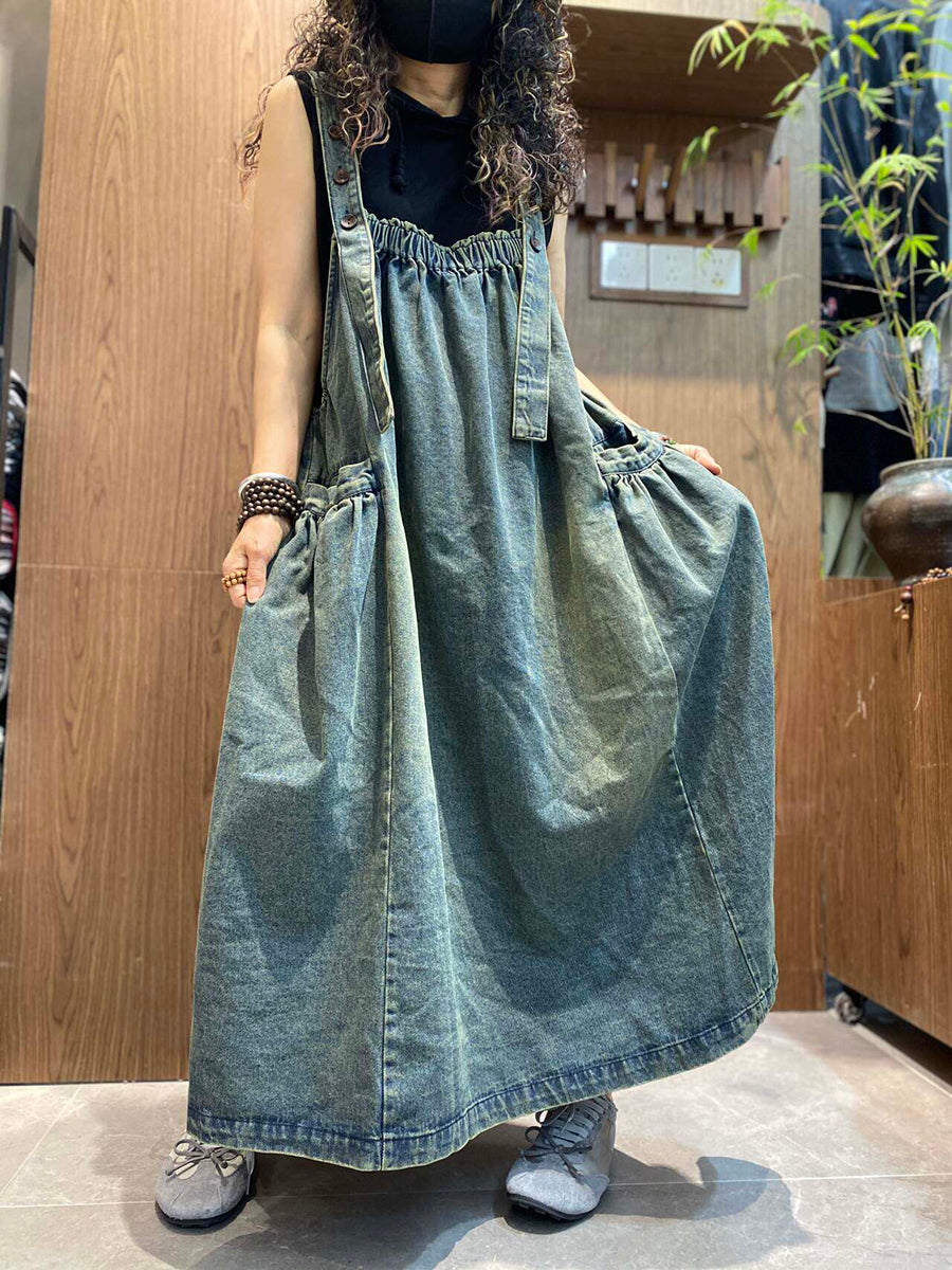 Robe salopette en jean vintage d'été pour femme