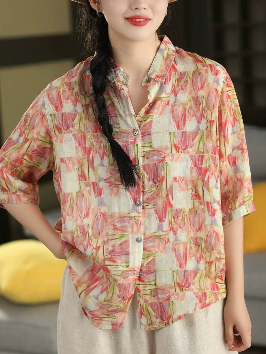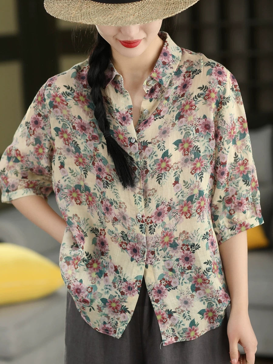 Blouse d'été vintage à fleurs pour femme, 100 % ramie