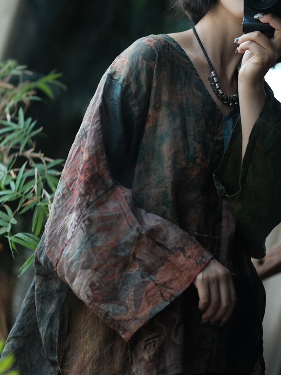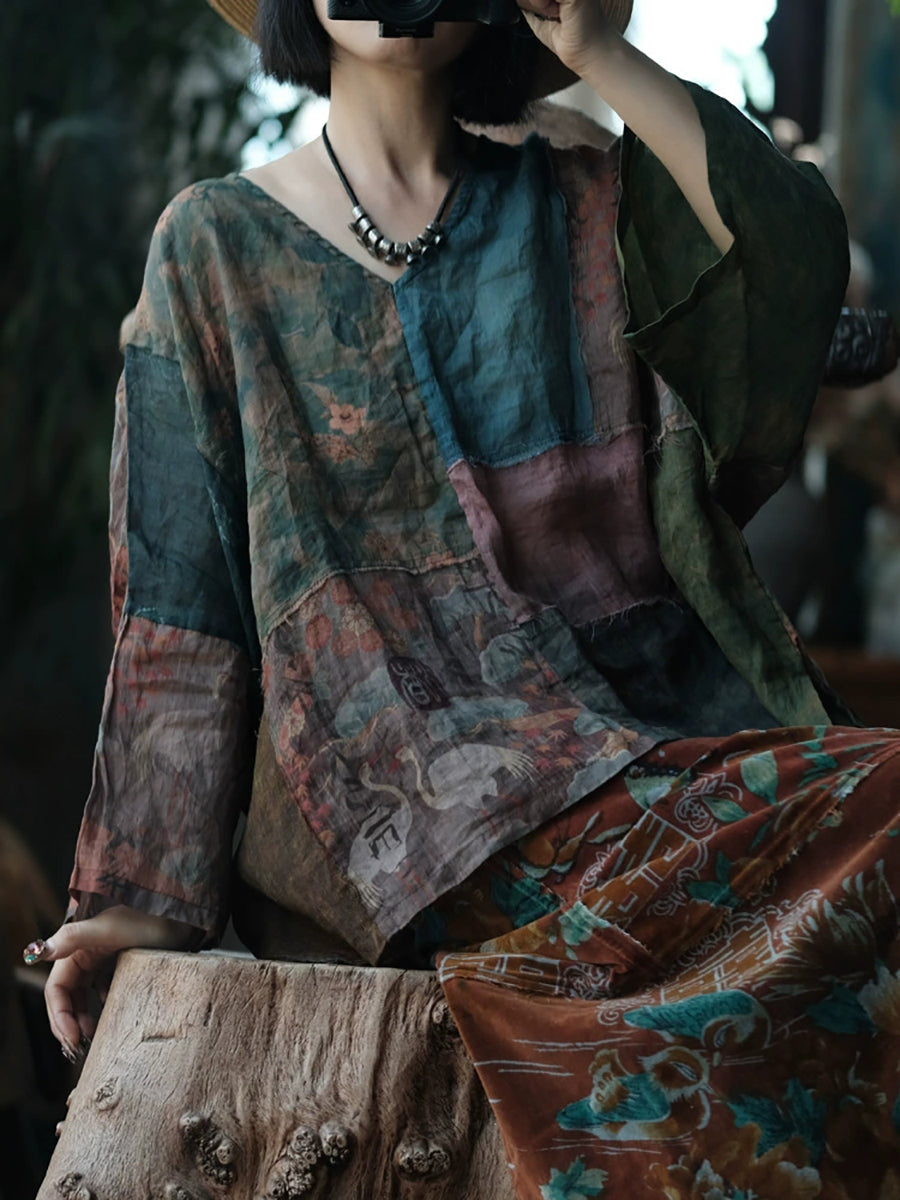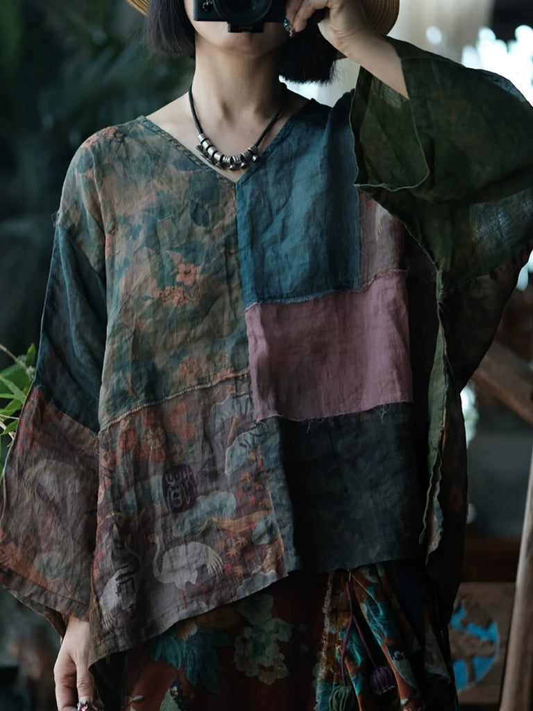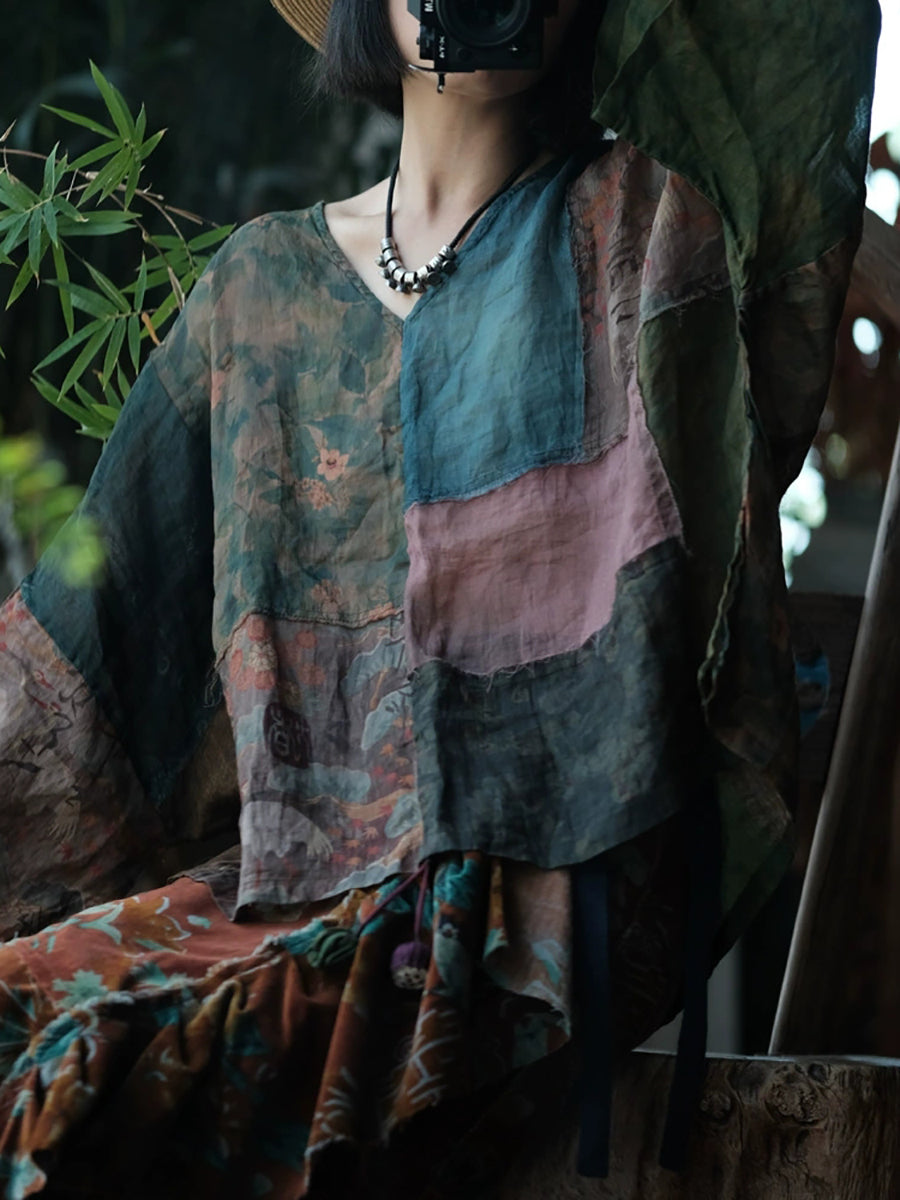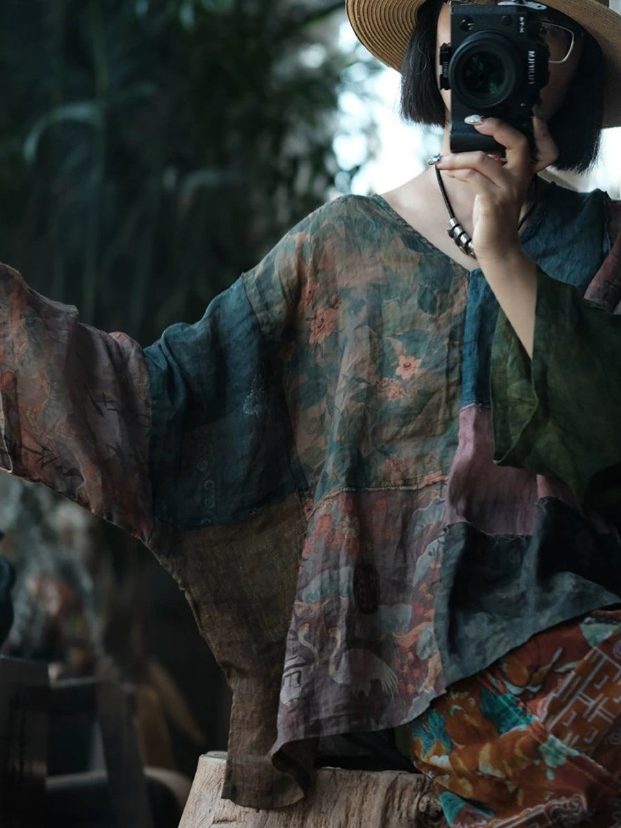 Chemise d'été en ramie à motif floral vintage pour femme