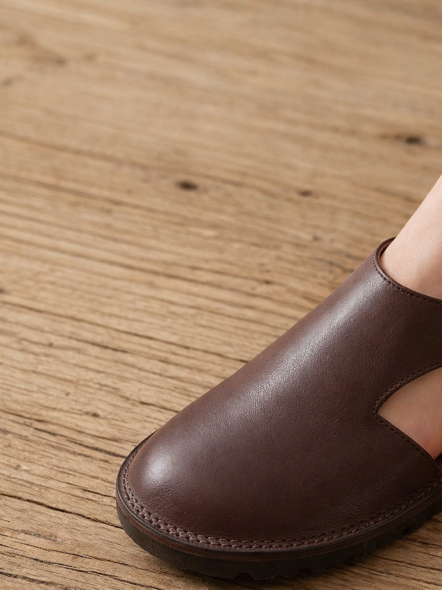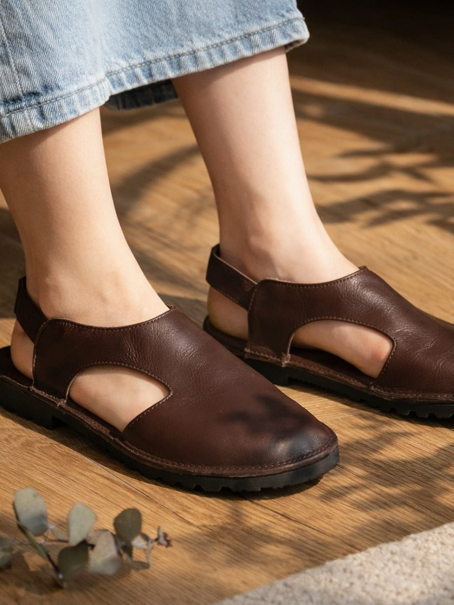 Sandales d'été vintage pour femmes en cuir véritable ajouré