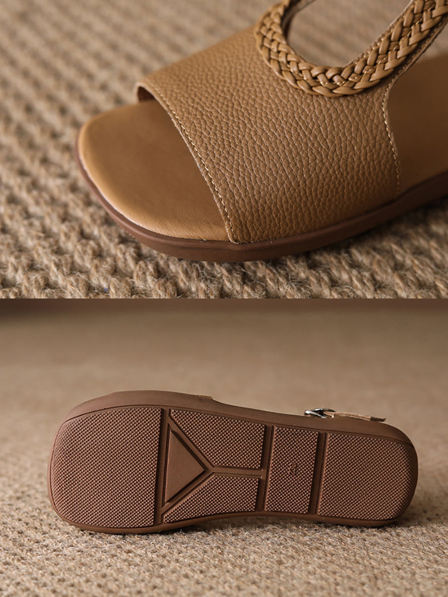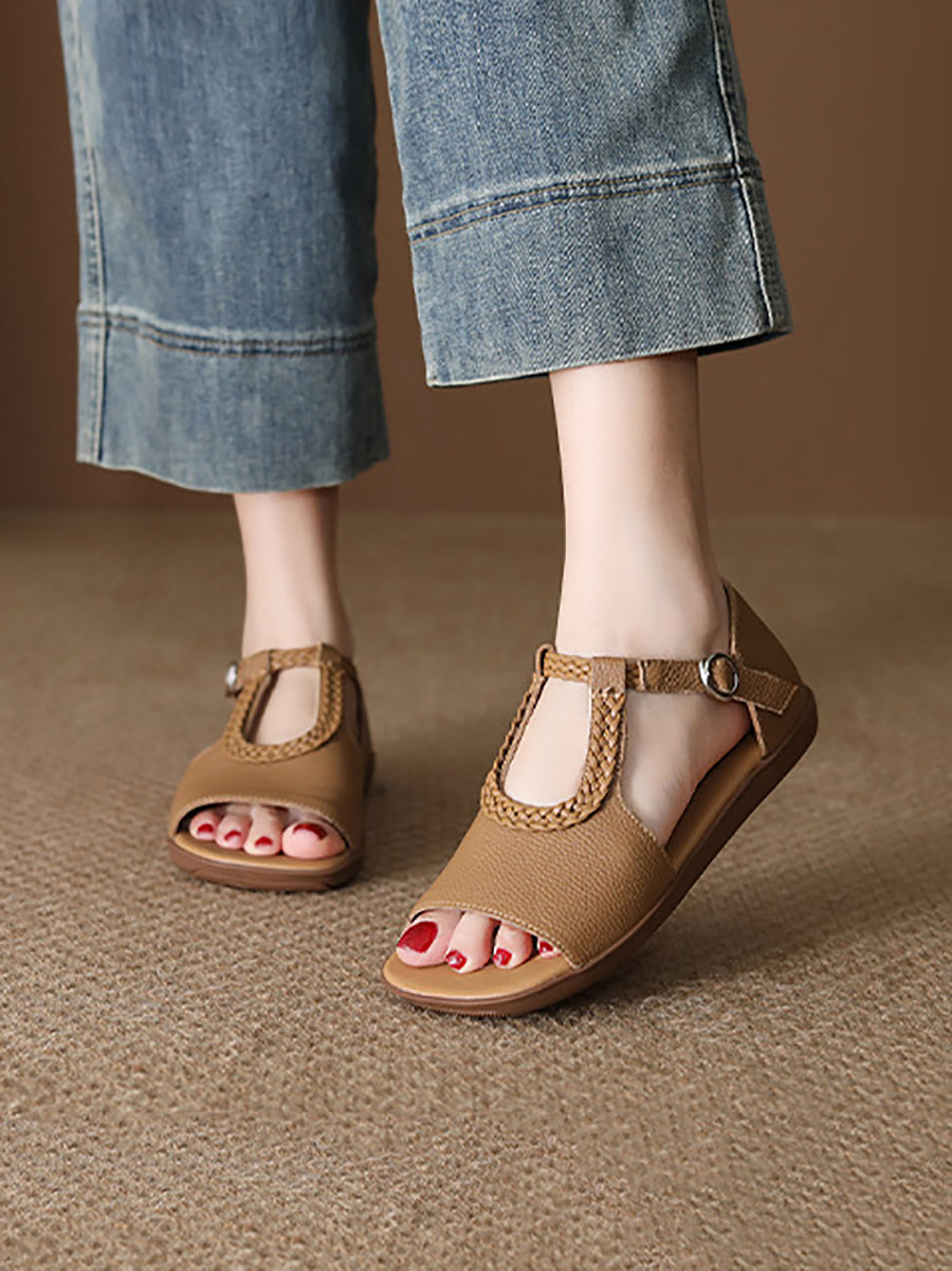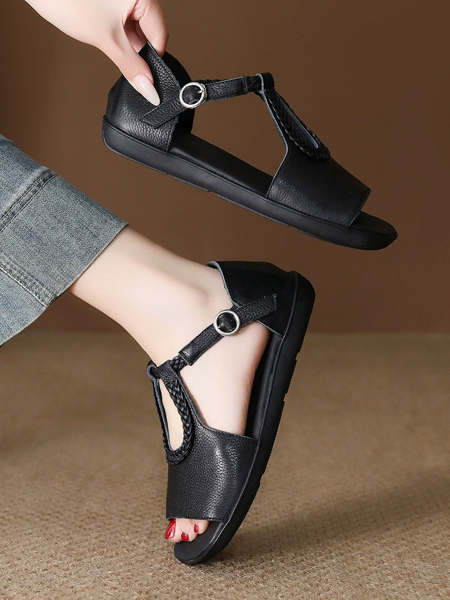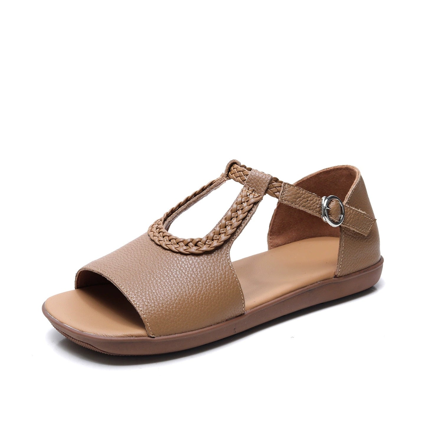 Sandales plates d'été vintage pour femmes en cuir véritable